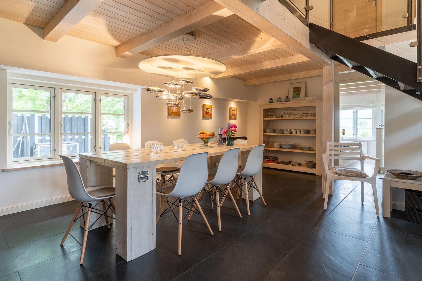 Das großzügige Reetdachhaus wurde nach einer Sanierung zu einem aussergewöhnlichen Ferienhaus umgebaut. Im EG befindet sich der lichtdurchflutete Wohnraum mit Kamin, einer offenen Küche sowie einem stilvollen Essbereich. Ebenfalls im Erdgeschoss befinden sich zwei Schlafzimmer mit jeweils einem Doppelbett. Eine Sauna, ein großes Bad mit ebenerdiger Dusche und Wirlwanne befinden sich im hinteren Teil des Hauses. Im OG befindet sich ein weiteres Schlafzimmer mit zwei Einzelbetten und ein Duschbad.