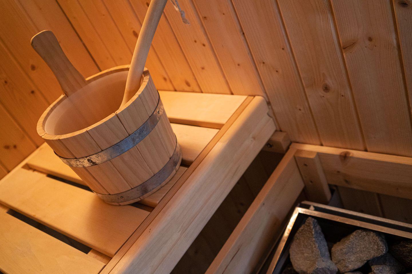 Ein weiteres Highlight des Ferienhauses ist zweifellos die Sauna, die sich im hinteren Teil des Hauses befindet. Hier können Sie in aller Ruhe entspannen und den Alltag hinter sich lassen. Auch das große Badezimmer mit ebenerdiger Dusche und Whirlwanne lädt zum Verweilen ein. Ein kleiner Abstellraum mit Waschmaschine rundet das Angebot ab. Über eine Treppe gelangen Sie in den ersten Stock, wo sich ein weiteres Schlafzimmer mit zwei gemütlichen Einzelbetten sowie ein praktisches Duschbad befinden.