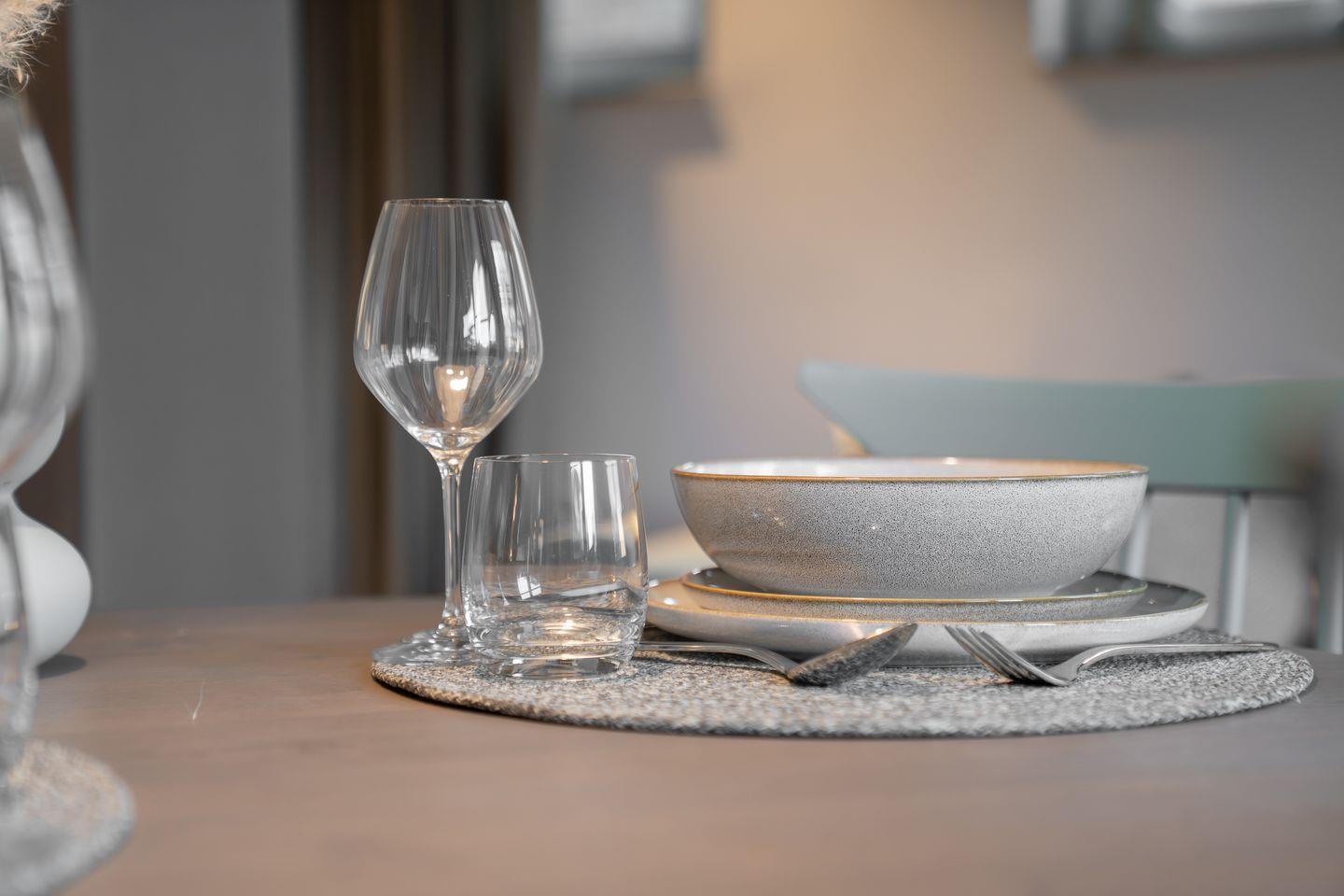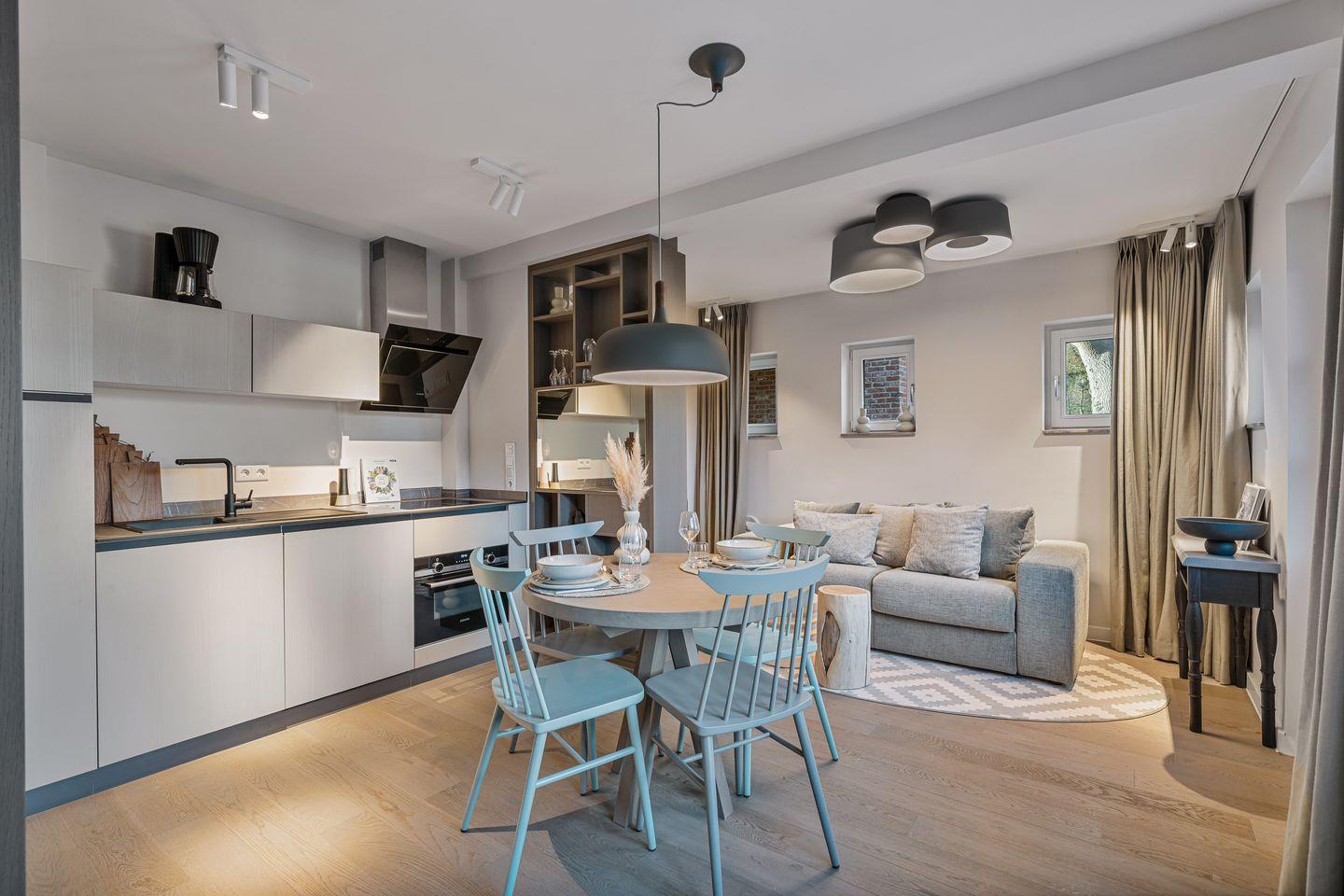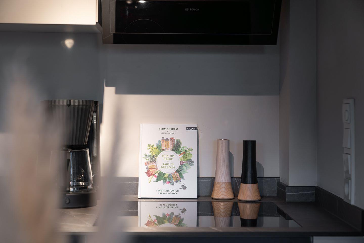 Die offene und exklusive Küche ist komplett ausgestattet und ideal für alle, die gerne selbst kochen. Hier finden Sie alle notwendigen Küchenutensilien sowie Hochwertige E-Geräte wie einen Induktionsherd, einen Backofen, eine Spülmaschine, eine Kaffeemaschine um Ihren Morgen mit einer Tasse frisch gebrühten Kaffee zu beginnen. Der eingerichtet Wohnbereich ist hell und exklusiv gestaltet und verbindet sich harmonisch mit der Küche. Gemütliche Abende können Sie beim Fernsehen verbringen; die Ferienwohnung ist mit zwei TV-Geräten ausgestattet, sodass Sie Ihre Lieblingssendungen in beiden Bereichen genießen können.