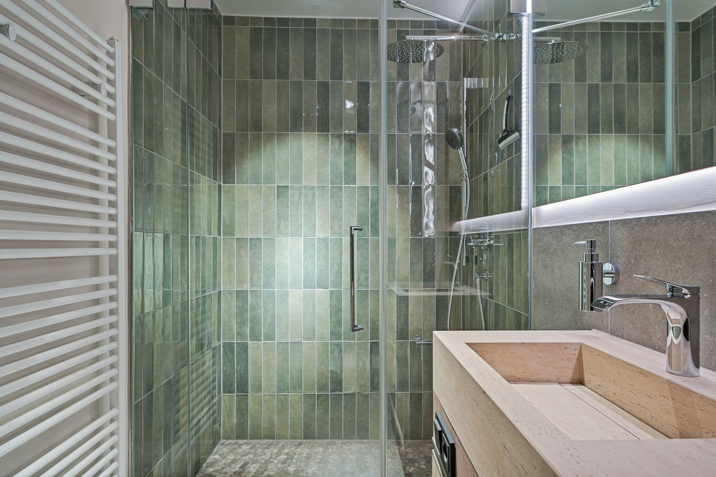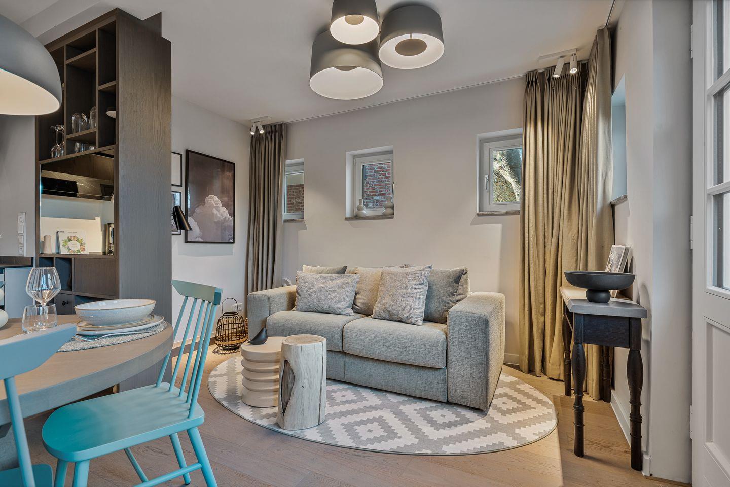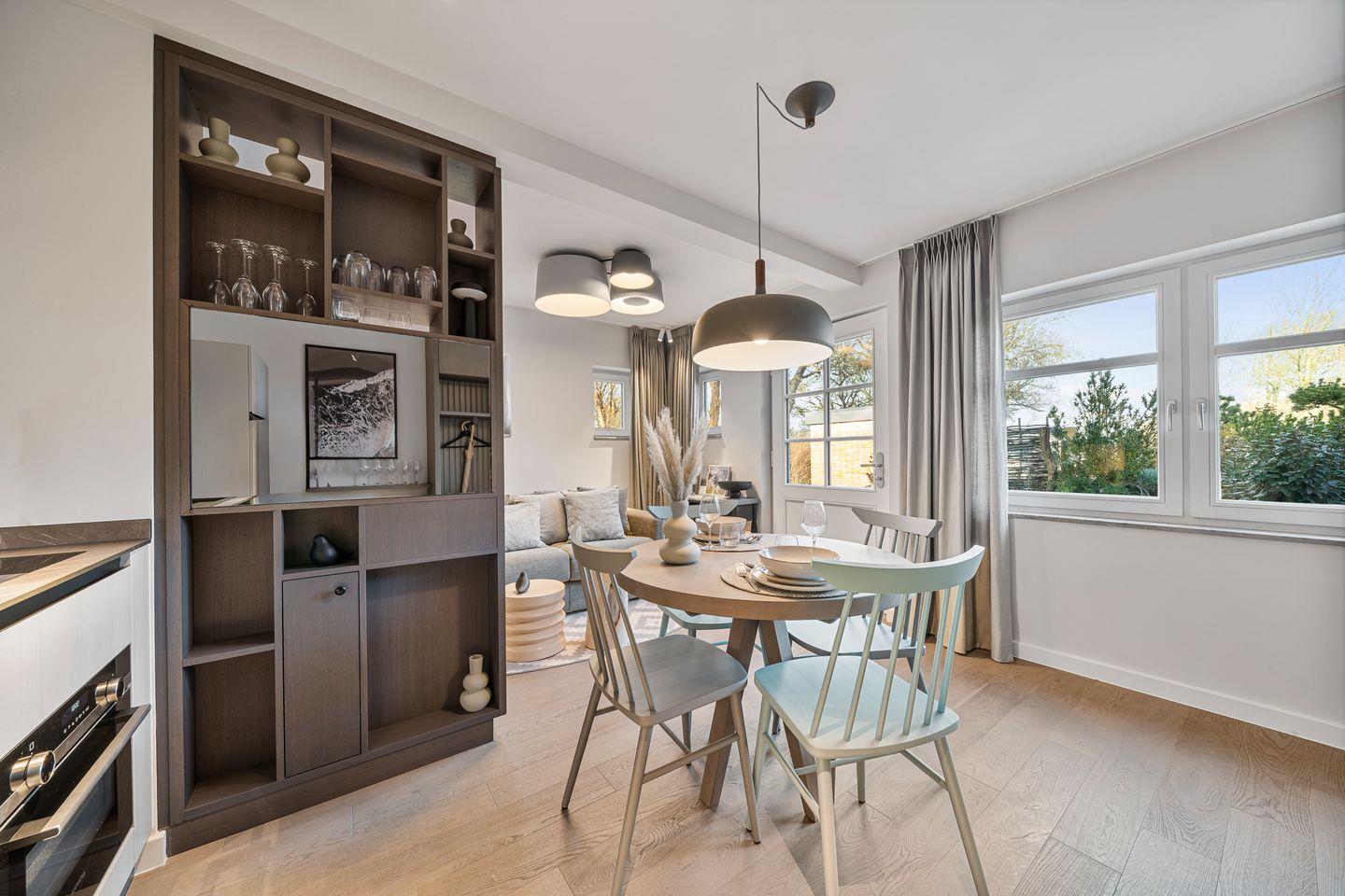 Die offene und exklusive Küche ist komplett ausgestattet und ideal für alle, die gerne selbst kochen. Hier finden Sie alle notwendigen Küchenutensilien sowie Hochwertige E-Geräte wie einen Induktionsherd, einen Backofen, eine Spülmaschine, eine Kaffeemaschine um Ihren Morgen mit einer Tasse frisch gebrühten Kaffee zu beginnen. Der eingerichtet Wohnbereich ist hell und exklusiv gestaltet und verbindet sich harmonisch mit der Küche. Gemütliche Abende können Sie beim Fernsehen verbringen; die Ferienwohnung ist mit zwei TV-Geräten ausgestattet, sodass Sie Ihre Lieblingssendungen in beiden Bereichen genießen können.