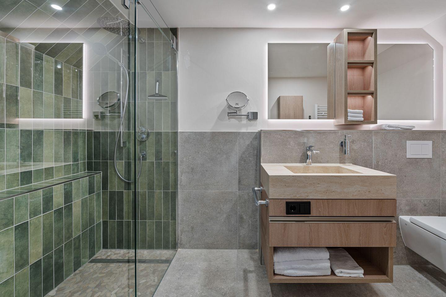 Zwei ruhige Schlafzimmer mit erstklassigen Boxspinrgbetten (eines 1,80 x 2,00 und eines 0,9 x 2,0) bieten Rückzugsmöglichkeiten für erholsame Nächte. Die Fußbodenheizung sorgt in der kalten Jahreszeit für wohlige Wärme, während der Sichtschutz an allen Fenstern für Privatsphäre während Ihres Aufenthalts sorgt. Das hochwertige Badezimmer mit Walk-In Dusche bietet Ihnen zudem sämtliche Annehmlichkeiten, einschließlich eines Haartrockners und eines großen Spiegels.