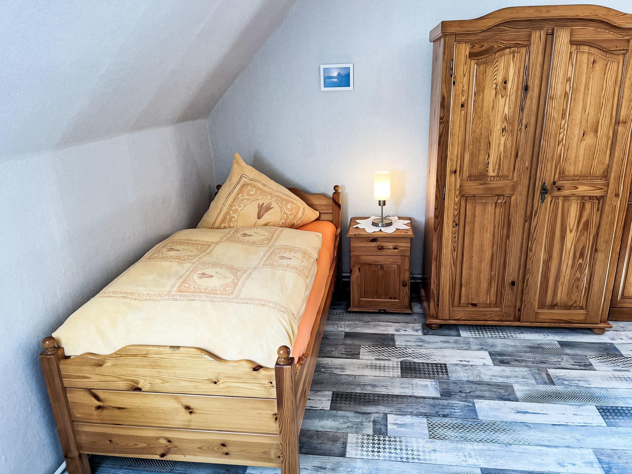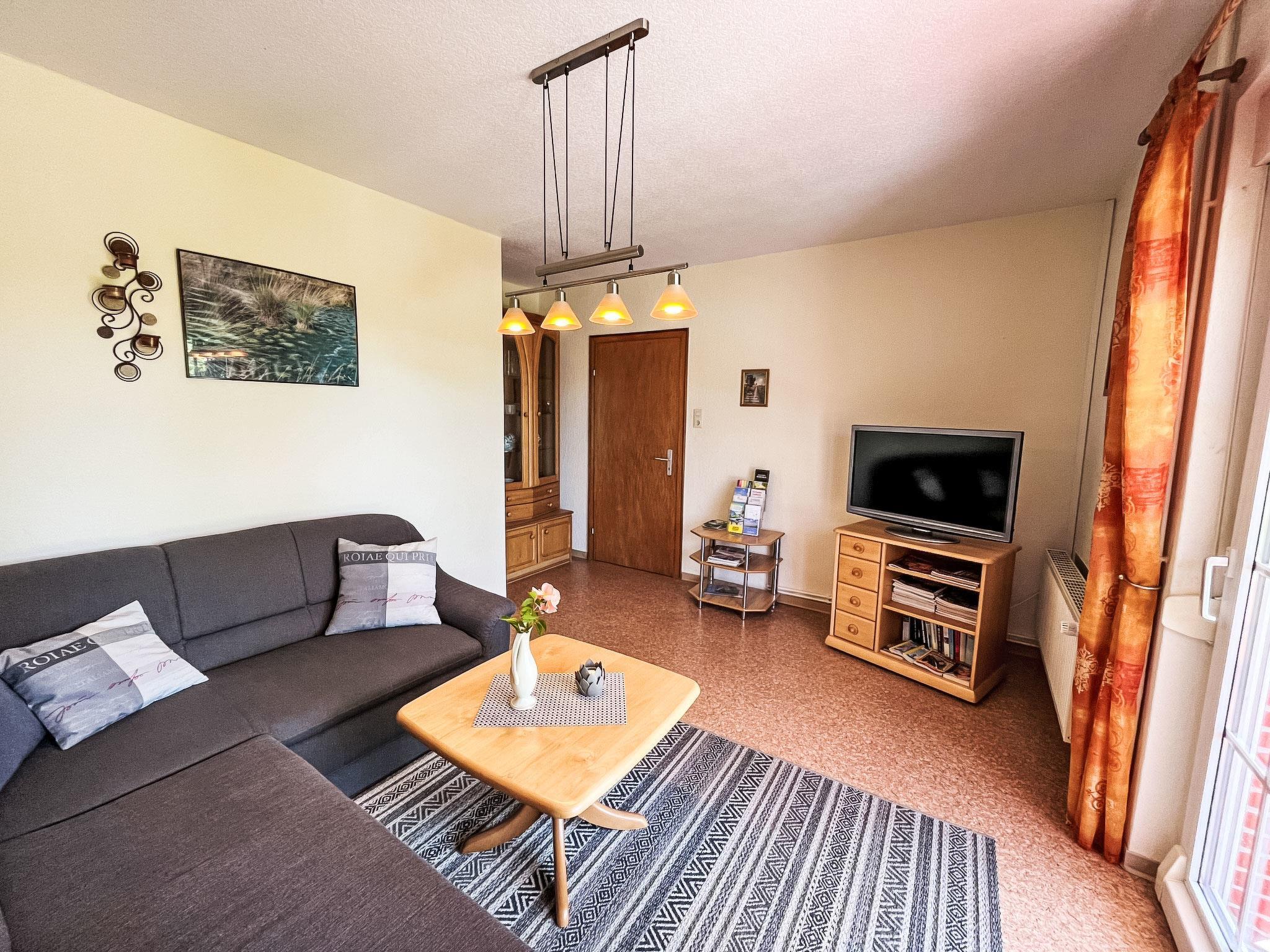 3-Zimmer-Wohnung 70 m2 auf 2 Stockwerken, im Erdgeschoss. Gemütlich eingerichtet: Wohnzimmer mit Sat-TV (Flachbildschirm). Ausgang zur Terrasse. 1 Zimmer mit 2 Betten (90 cm, Länge 200 cm). Grosse Küche (Backofen, Geschirrspüler, 4 Glaskeramikplatten, Toaster, Wasserkocher, Mikrowelle, elektrische Kaffeemaschine) mit Essecke. Dusche/WC. Obergeschoss: 1 Zimmer mit 1 Bett (90 cm, Länge 200 cm), 1 Doppelbett (2 x 90 cm, Länge 200 cm). Sep. WC. Terrassenmöbel. Zur Verfügung: Kinderhochstuhl. Bitte beachten: Nichtraucher-Unterkunft. Rauchmelder.