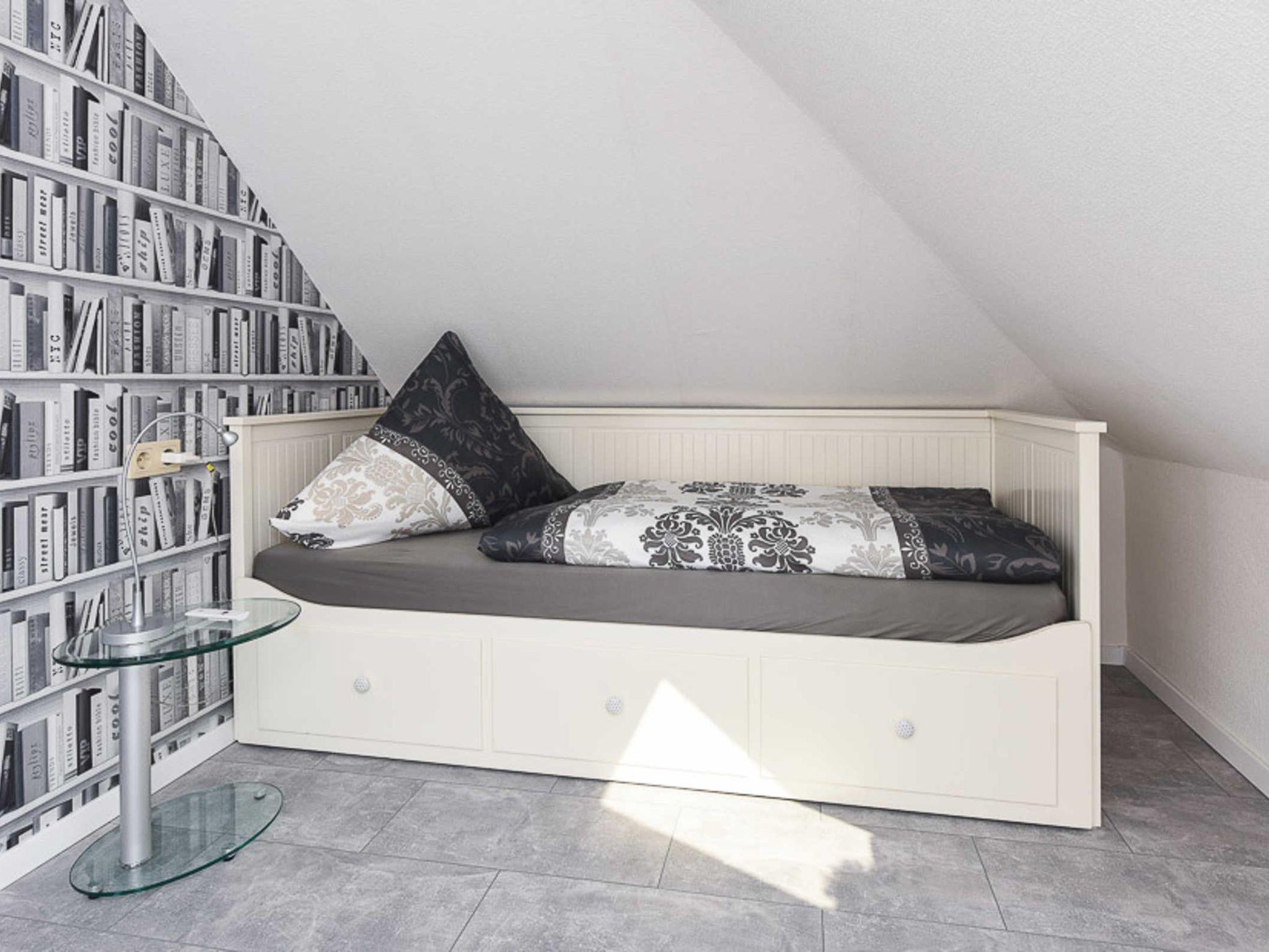 In Schlafzimmer 2 befindet sich ein Bett, das ausgeklappt mit 160 cm breit ist. In Schlafzimmer 3 befindet sich ein Bett, das ausgeklappt mit 140 cm breit ist.