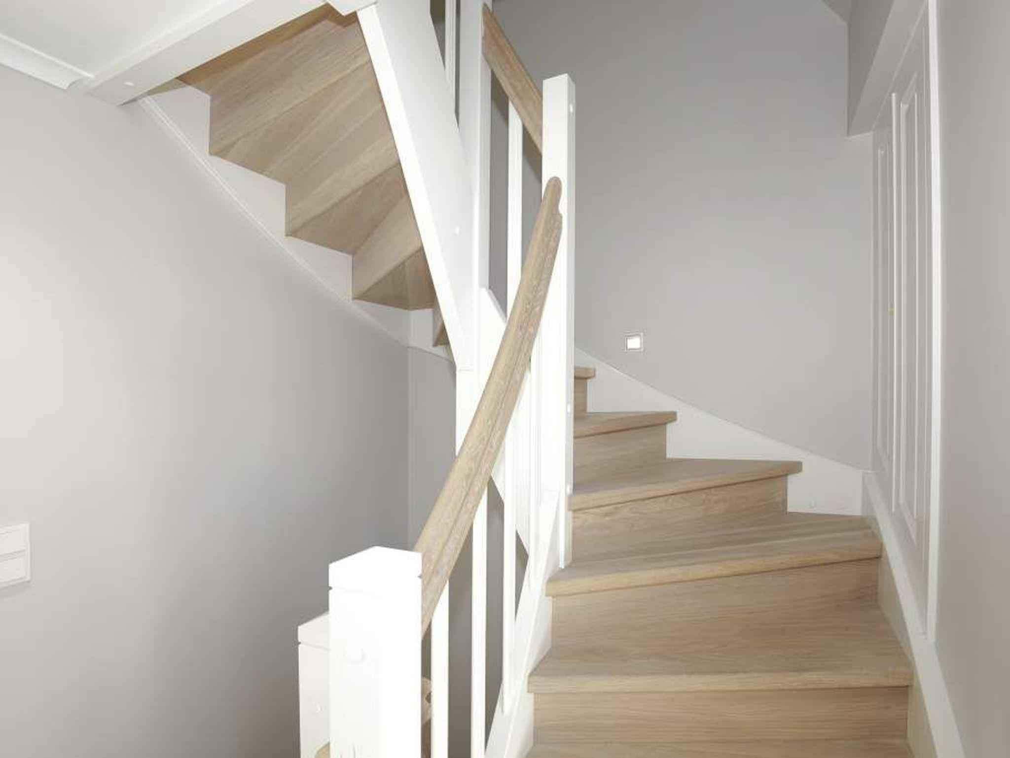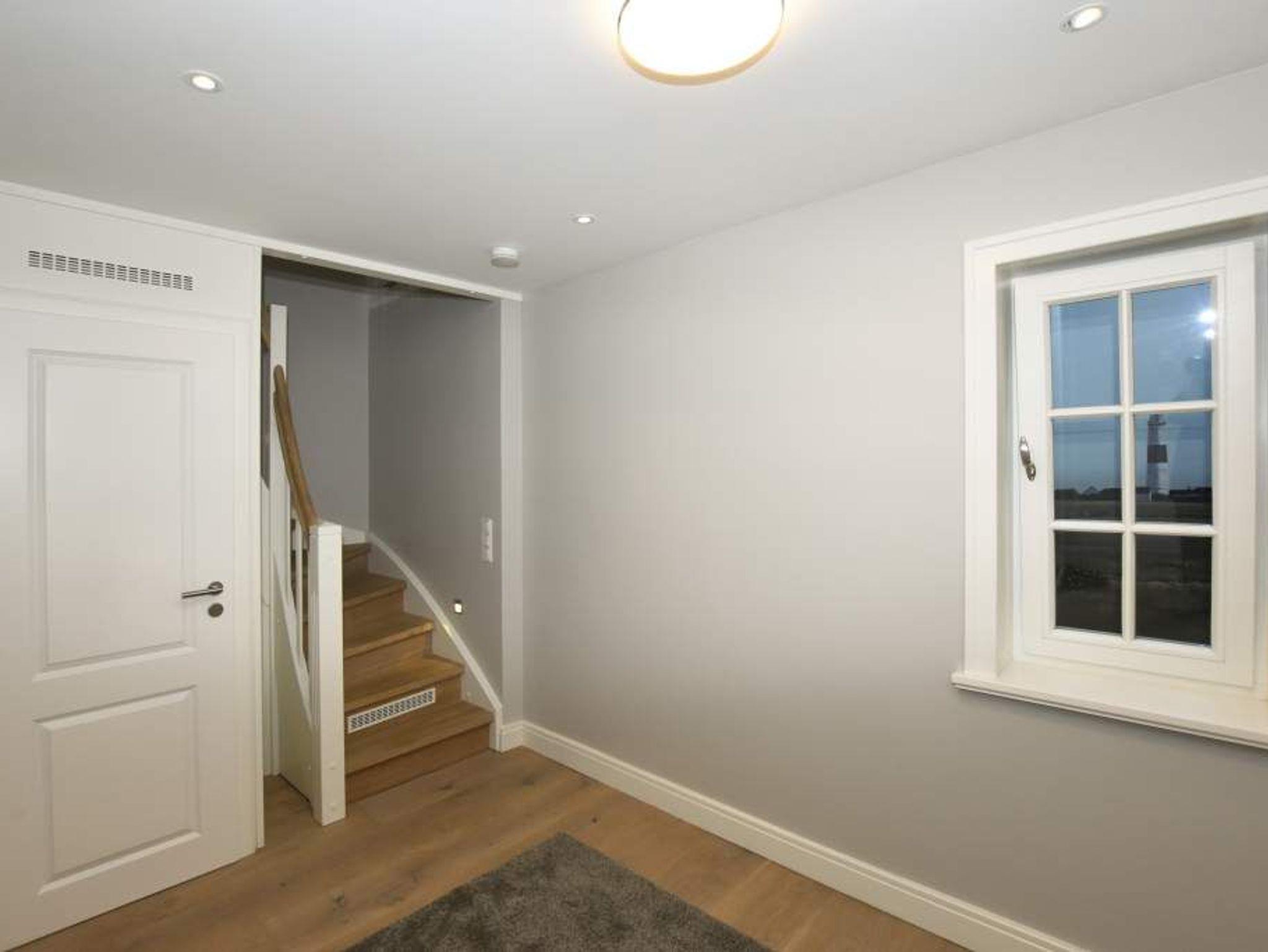 Im Erdgeschoss gelangt man über die Diele in das lichtdurchflutete Wohnzimmer mit Austritt zu Terrasse (mit Strandkorb und Terrassenmöbeln) und Garten.