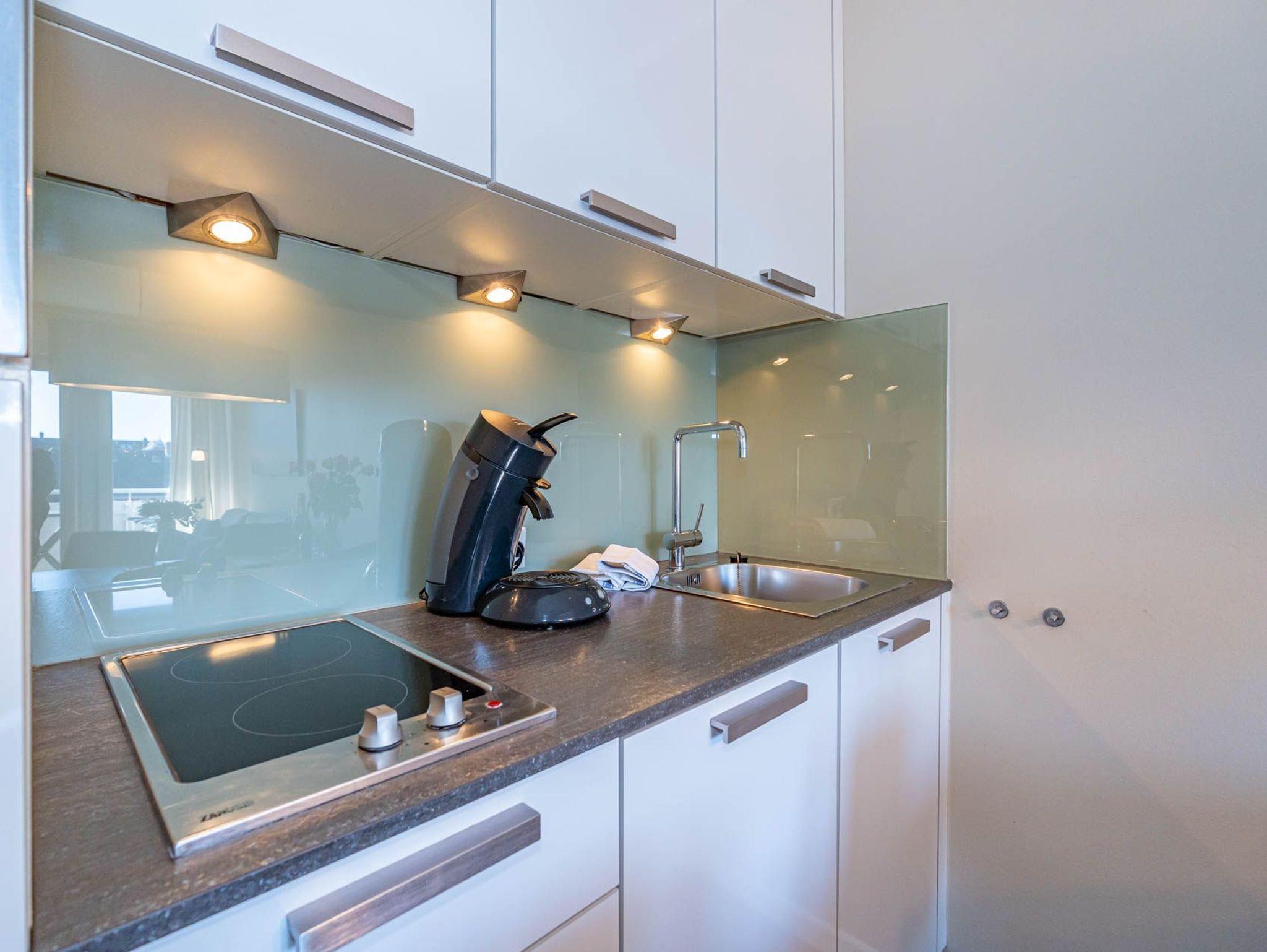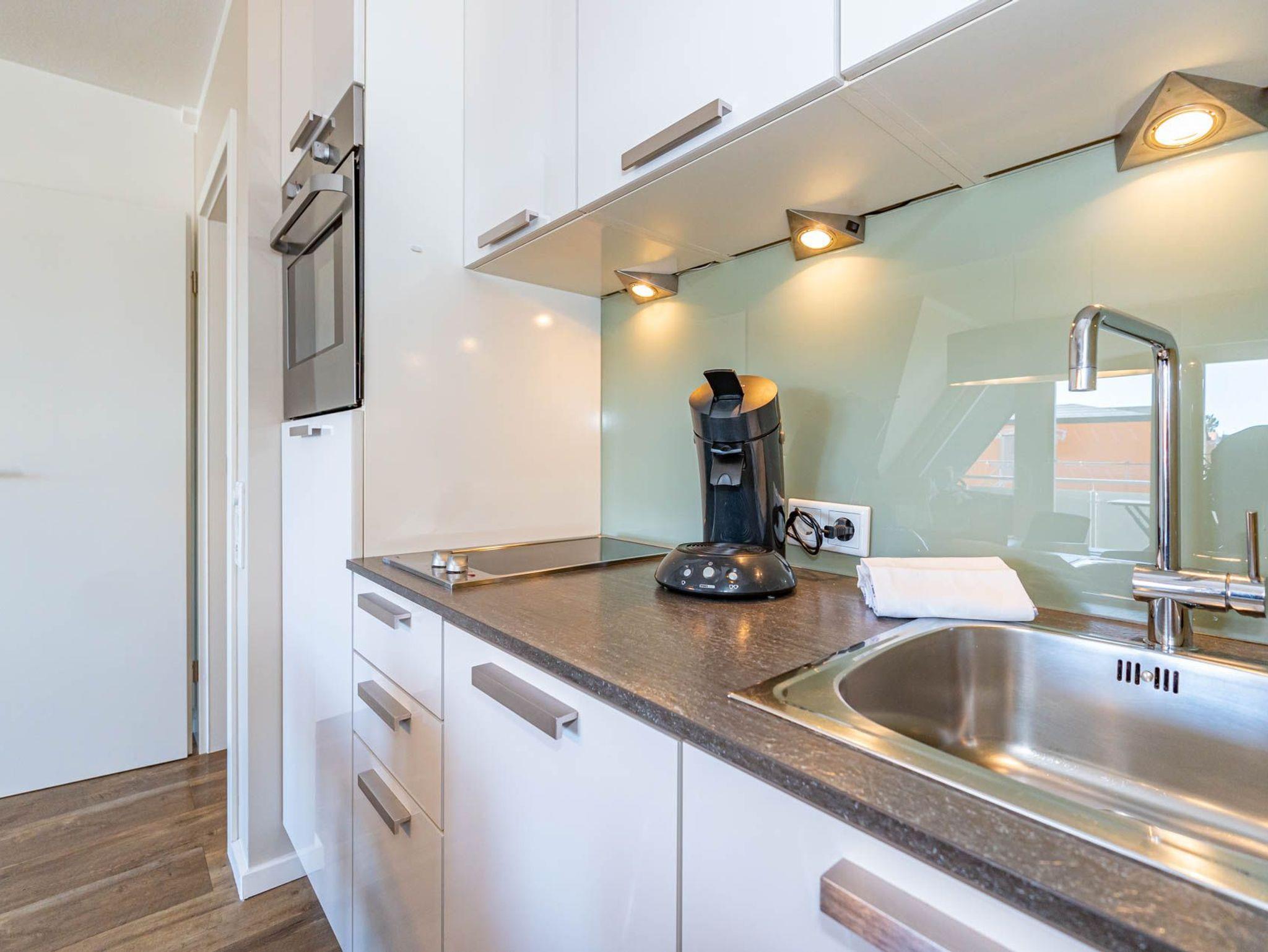 Die Küchenzeile hat einen Geschirrspüler, einen Backofen, ein 2-Platten-Ceranfeld, Nespresso-Maschine und Kühlschrank mit 3-Sterne-Gefrierfach. Kaffeemaschine, Wasserkocher und Toaster gehören zur Grundausstattung.