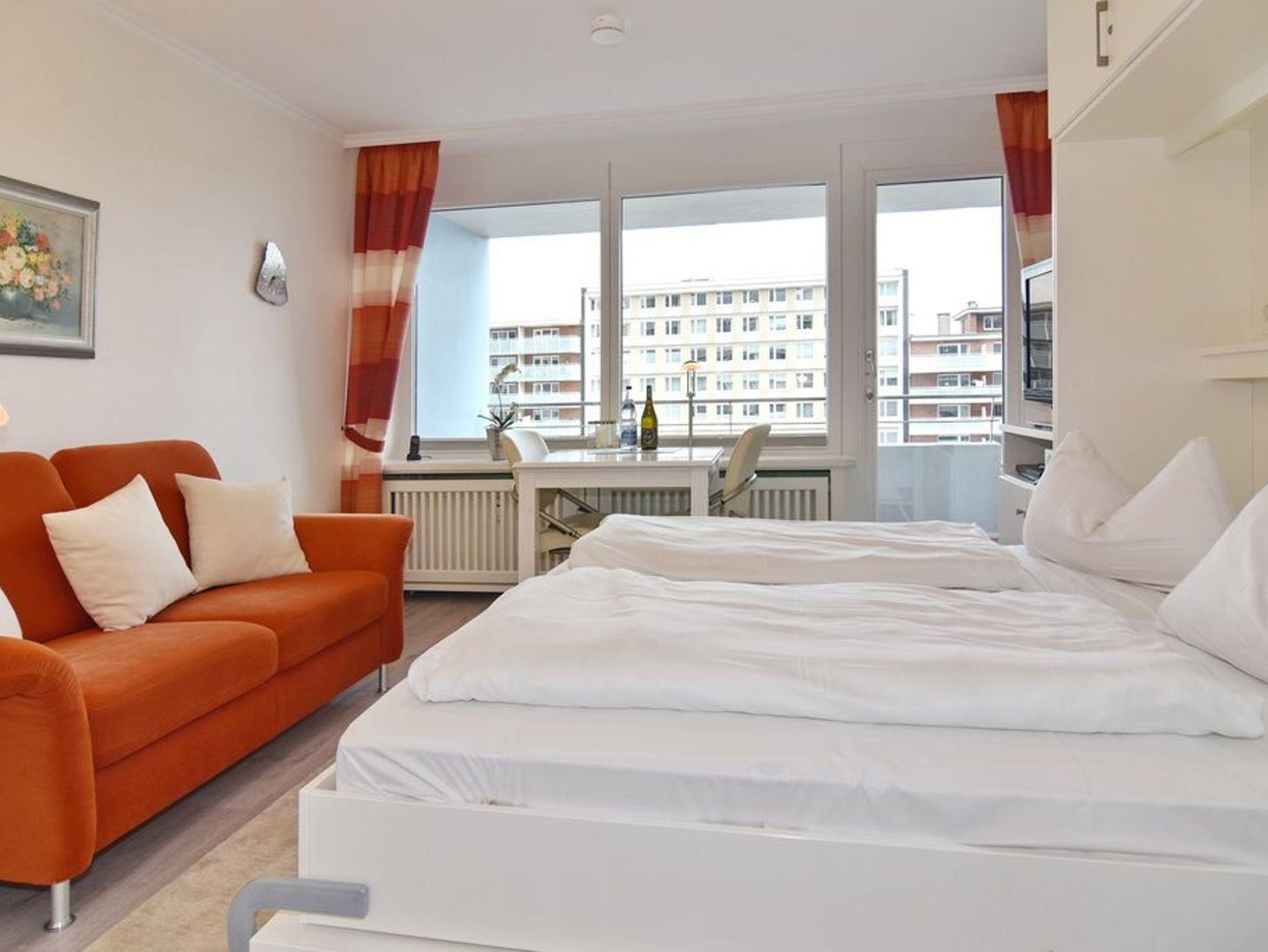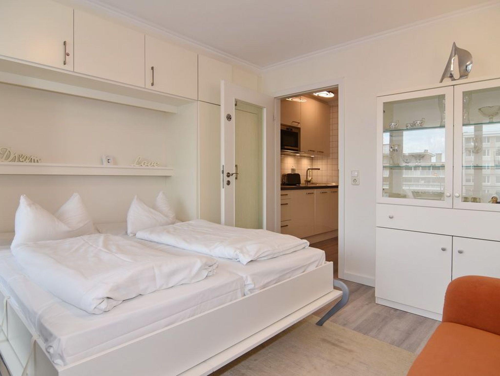 Strandnahe, helle und komfortable 1-Zimmer-Wohnung im 1. OG zur Landseite im Haus Metropol gelegen. Ca. 30 m². Der Wohn-/Schlafraum ist mit einem Doppelschrankbett, einer 2-Sitzer-Couch, dem Essplatz am Fenster sowie Flat-TV, Radio und WLAN (ohne Gewähr) ausgestattet. Der Balkon ist gen Osten ausgerichtet. Die moderne Küche ist mit einer Mikrowelle und einem 2-Platten-Cerankochfeld ausgestattet. Helles Badezimmer mit Duschbad /WC, Kosmetikspiegel und Föhn.