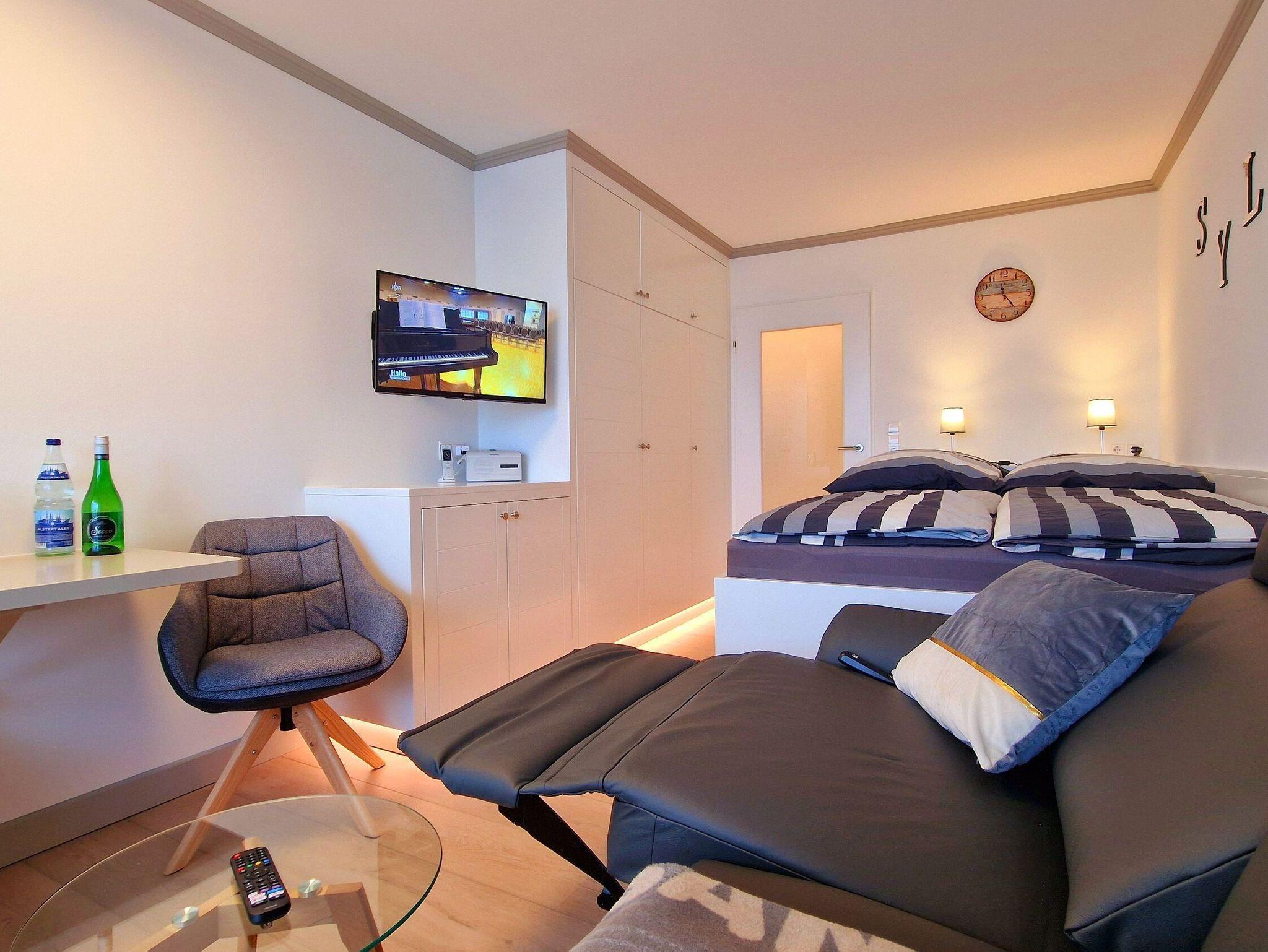 Modernes 1-Zimmer-Apartment mit Meerblick und Balkon im 11. Stock des Haus Metropol in Westerland.