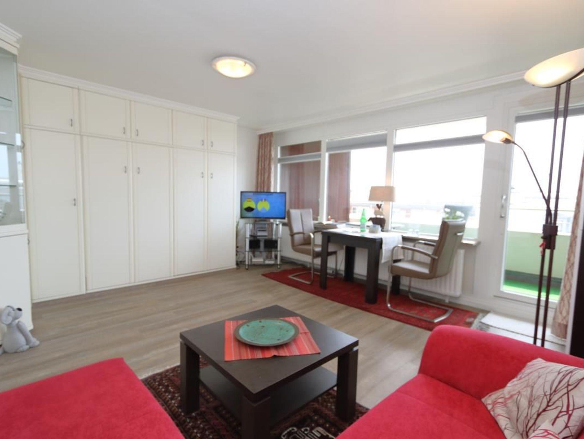 Modernes Appartement mit Balkon direkt am Strand von Westerland auf Sylt, ideal für einen erholsamen Urlaub zu zweit.