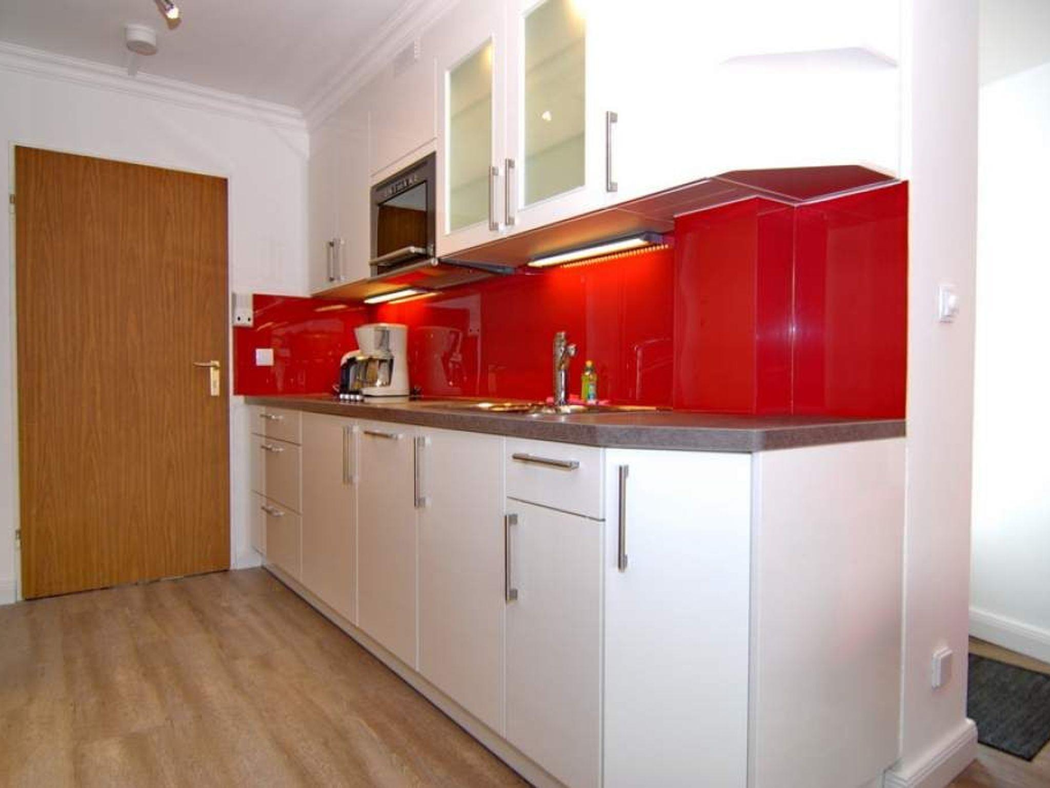 Das großes, moderne 1-Zimmer-Eck-Apartment im 1.OG vom Haus Metropol mit ca. 40 m² überzeugt durch sein großes gefliestes Wohn-/Schlafzimmer mit Doppel-Boxspringbett (160x200), Couchecke und Essplatz direkt am Fenster. Zudem finden Sie im Wohnbereich einen Flat-TV, ein Radio und WLAN (ohne Gewähr). Die zum Wohnzimmer offene Küchenzeile mit Backofen, Geschirrspüler und Cerankochfeld ist voll ausgestattet.[nbsp] Im Flur befindet sich der Zugang zum Duschbad mit WC. Der geschützter Ostbalkon mit Balkonmöbeln bietet die Möglichkeit auch draußen zu sitzen. Tierhaltung nach Anmeldung erlaubt. Bettwäsche und Handtücher sind zur Anreise aufgezogen. Ein PKW-Stellplatz kann kostenpflichtig zugebucht werden.