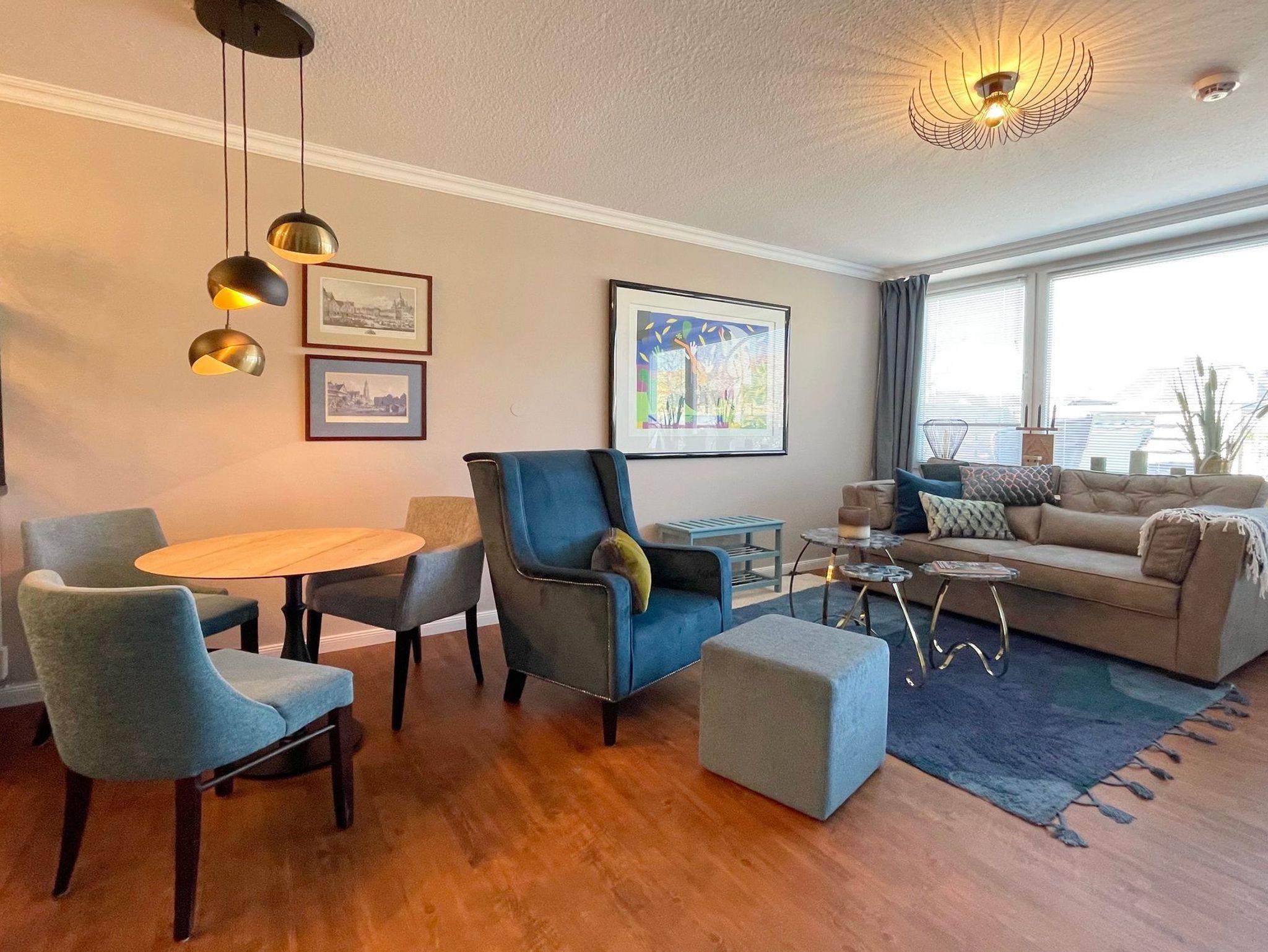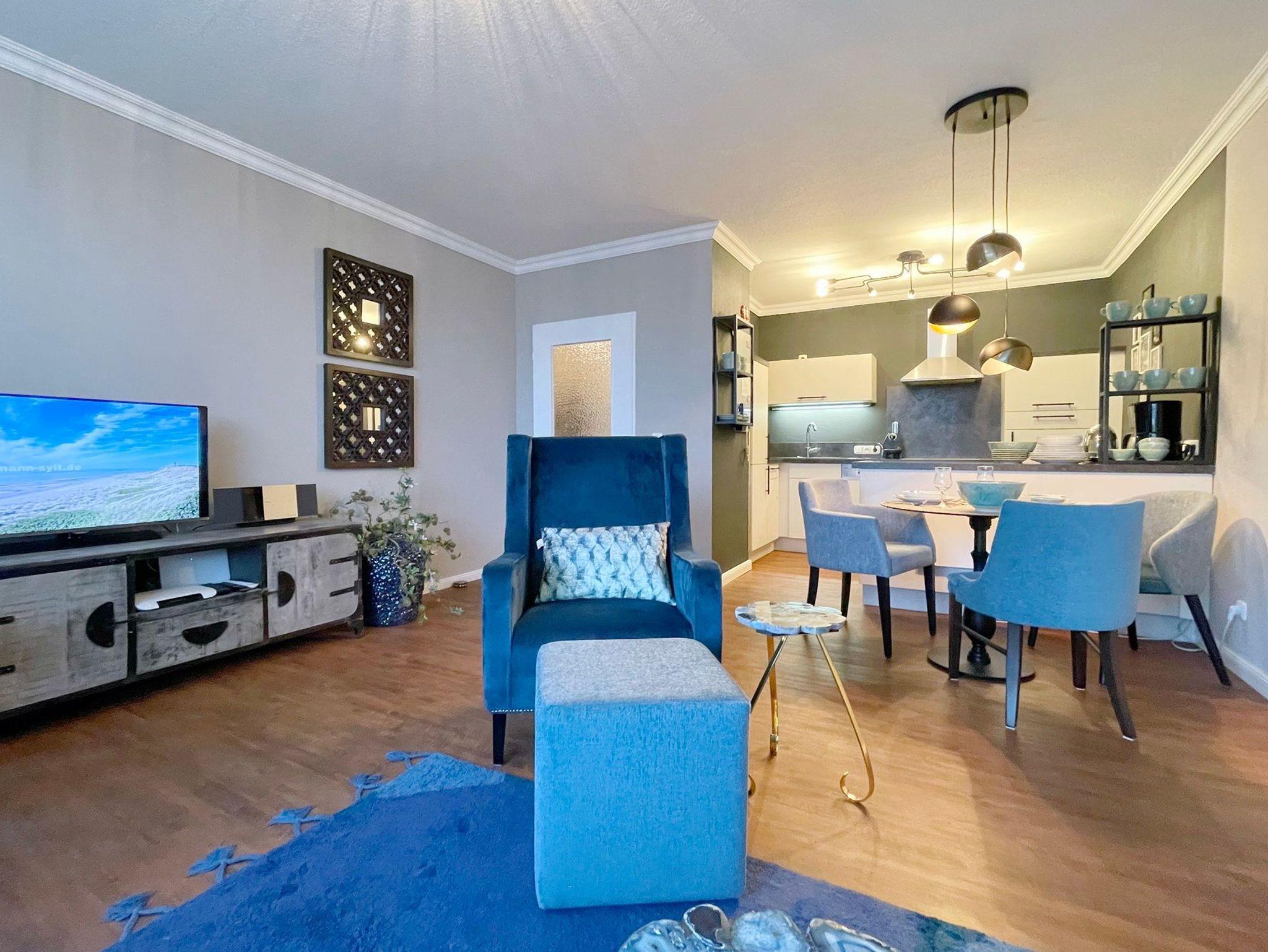 In wunderbar ruhiger Lage Alt-Westerlands befindet sich diese komplett ebenerdige schicke Ferienwohnung für 2 Personen. Modernes Design und die geschmackvolle Möblierung ( alles neu im Dezember 2021 ) zeichnen diese Wohnung aus. Wohnraum mit Couch, Relax-Sessel, W-Lan, Smart-TV mit[nbsp] Magenta-TV und Essbereich. Schlafzimmer mit Doppelbett ( Boxspring 160 x 200 ) , Kleiderschrank und zusätzlichem ( zweitem ) TV. Modernes helles freundliches Duschbad mit WC und Waschbecken.