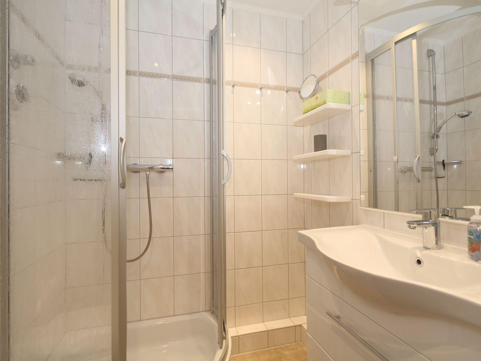 Die Ferienwohnung ist mit viel Liebe zum Detail stil- und geschmackvoll eingerichtet. Im Flur befinden sich zwei Einbauschränke. Von dort aus gelangt man in das neue, moderne Duschbad mit Regendusche und Fön. sowie in das Schlafzimmer und Wohnzimmer mit Zugang zum Balkon.