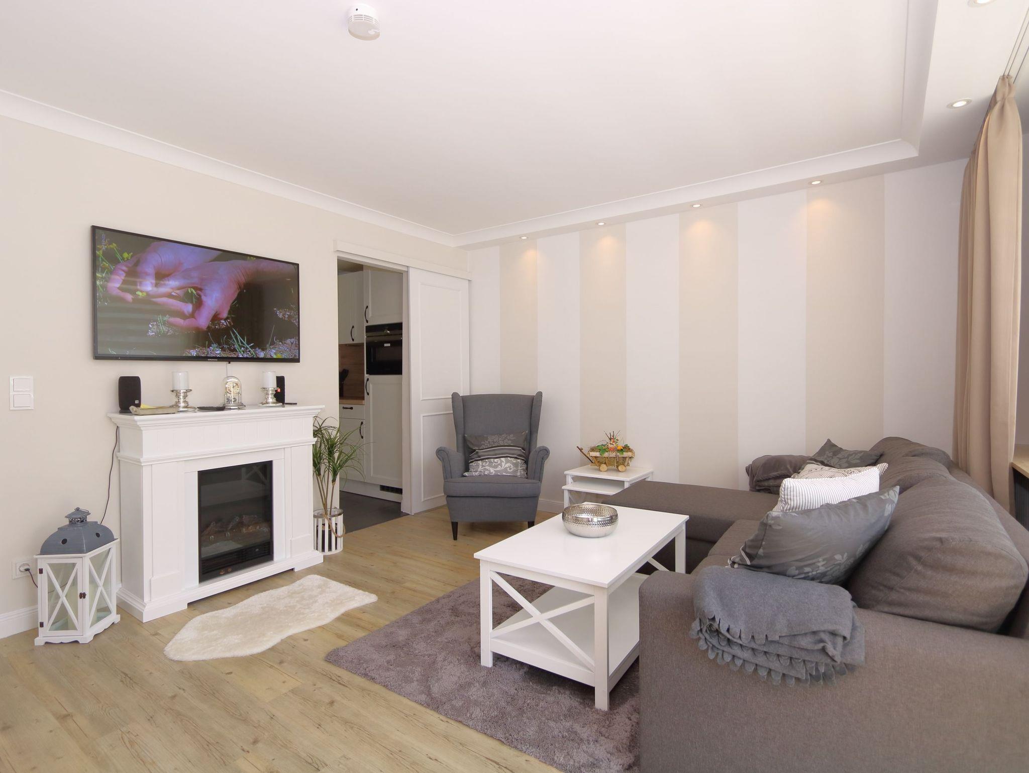 Moderne Ferienwohnung Strandperle 47 in Westerland, 100m vom Strand, mit Balkon, Kamin und WLAN.