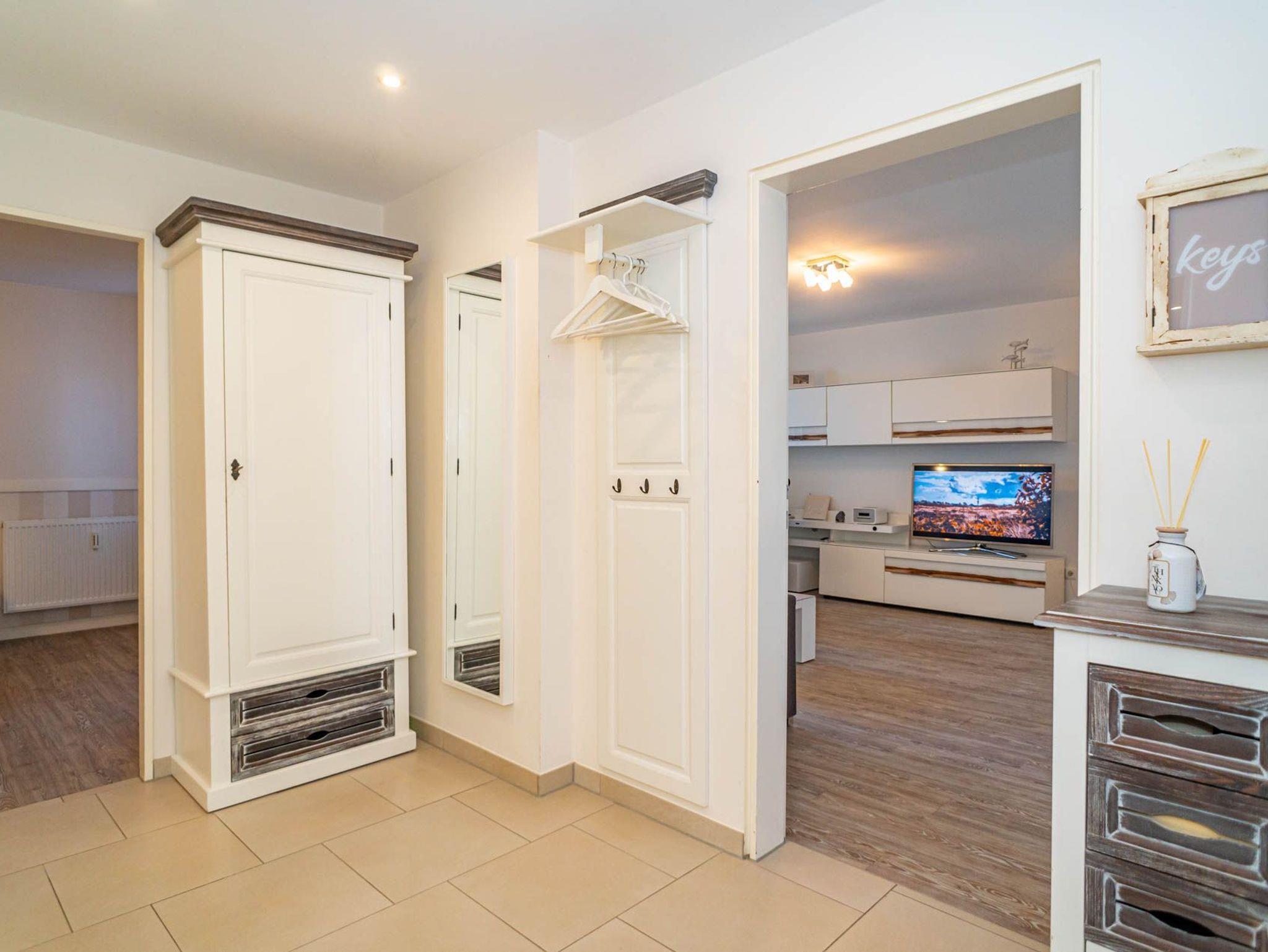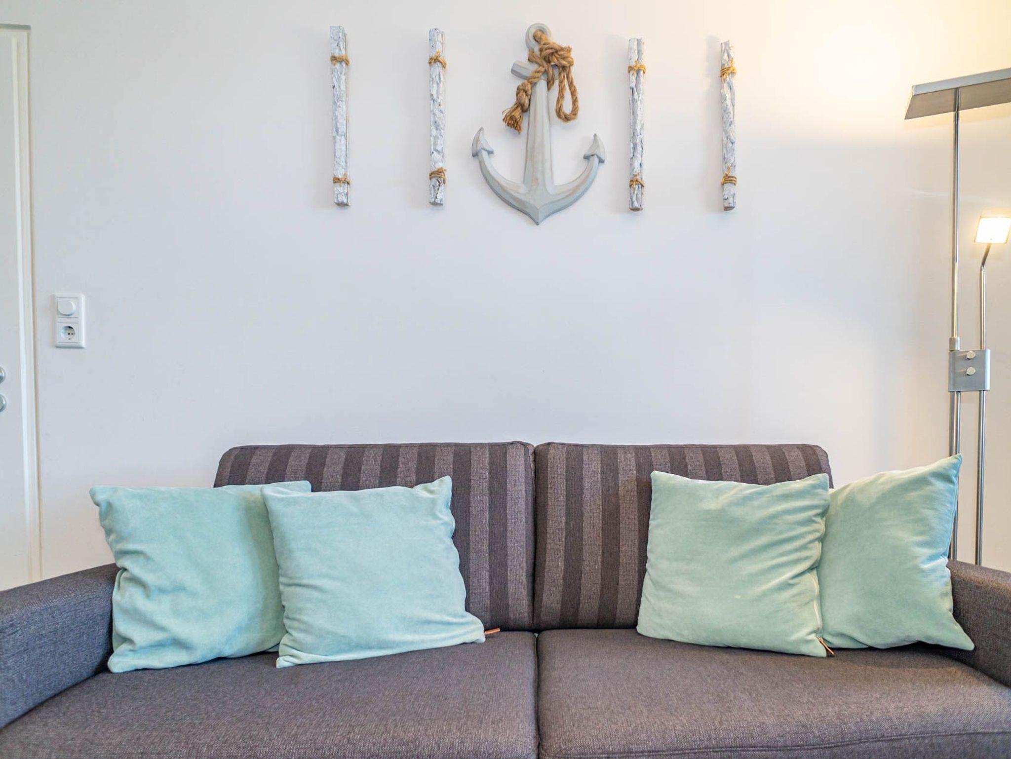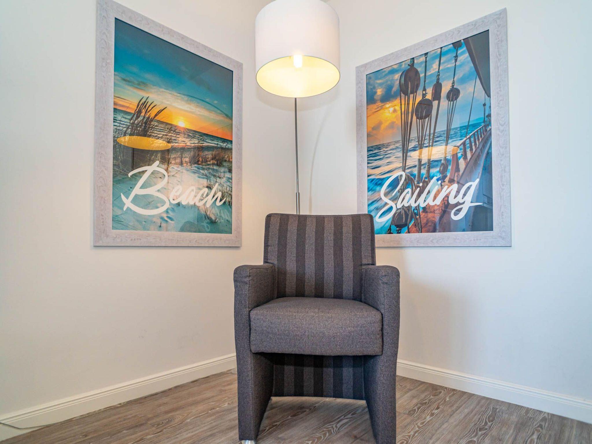 Hochwertig und modern eingerichtete 2-Zimmer-Nichtraucher-Ferienwohnung (ca. 59 qm) in der 2. Etage zur Seeseite mit Westloggia (Nachmittagssonne, mit Balkonmöbeln und Auflagen) für max. 4 Personen.