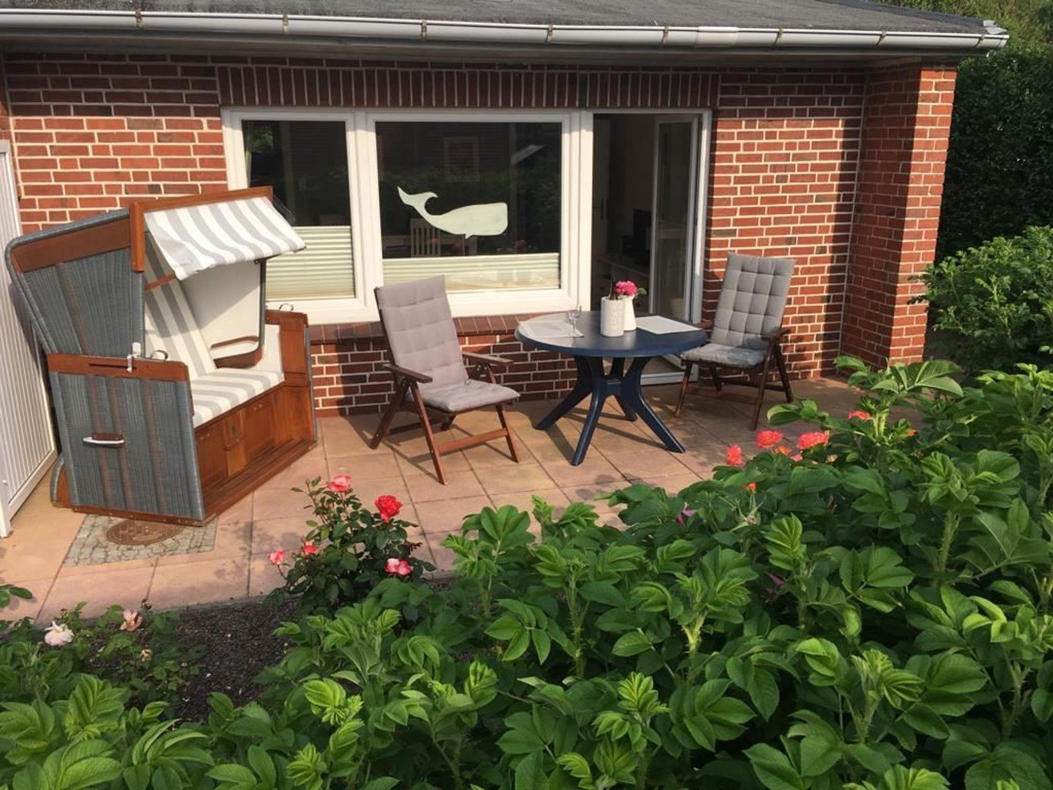 Charmante Ferienwohnung "Lütte Hüs" in Westerland auf Sylt, strandnah und citynah mit Terrasse und Strandkorb.