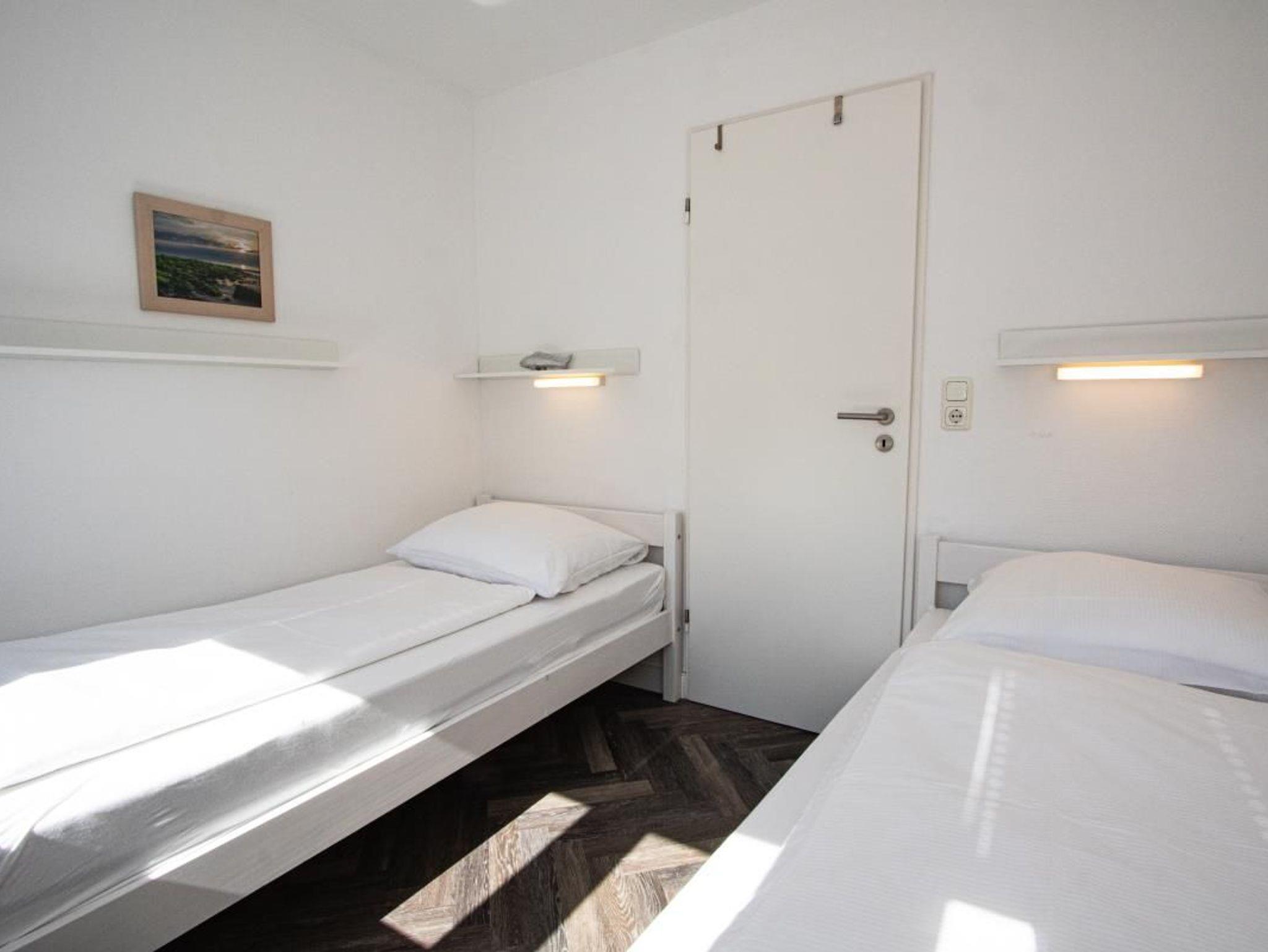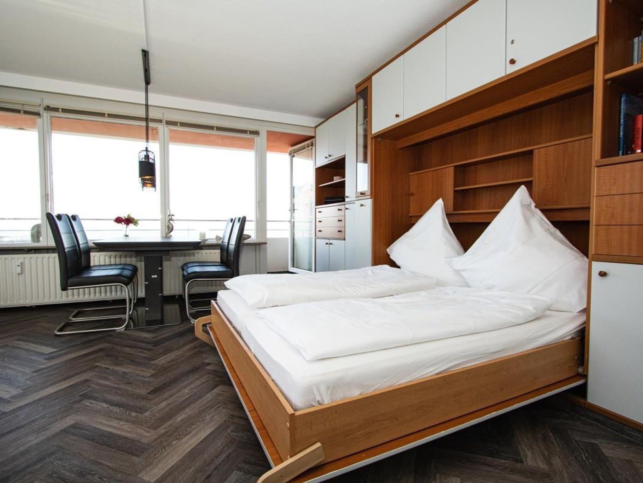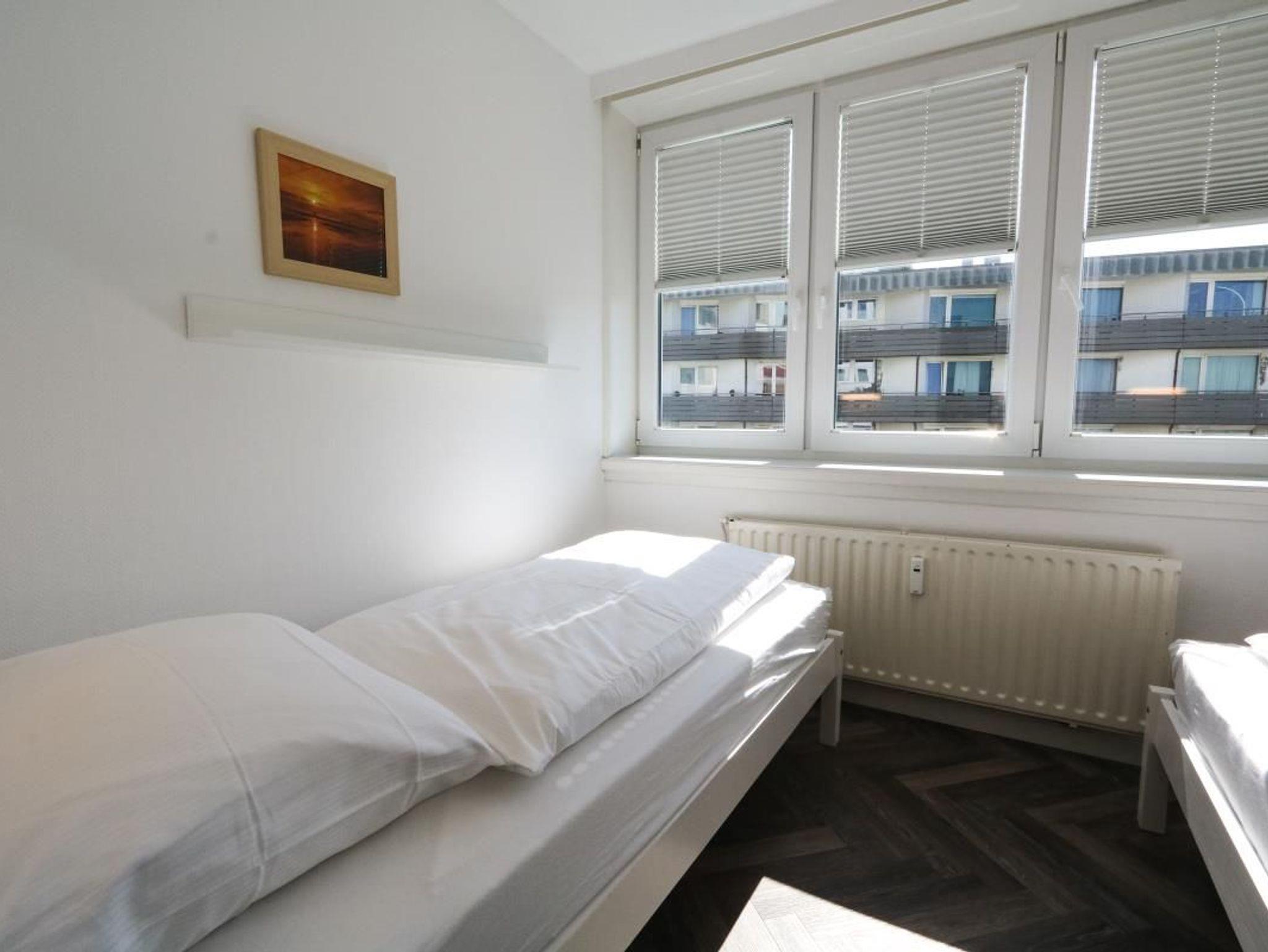Das Appartement hat im Wohnzimmer in einer Schrankwand zwei einzeln ausklappbare Schrankbetten (Liegefläche jeweils 75x200cm). Eine Couchgarnitur und ein Essplatz runden die Einrichtung ab. An das Wohnzimmer schließen sich zwei Balkone an. Vom Westbalkon hat man einen freinen Blick auf das Meer. Der Südbalkon gestattet auch einen Blick auf das Meer und einen interessanten Blick auf die Fußgängerzone Friedrichstaße. In der Diele ist die Küchenzeile mit Geschirrspüler und Mikrowelle untergebracht. Das Schlafzimmer hat zwei getrennt stehende Einzelbetten (90x200). Im Duschbad gibt es ein Fenster.