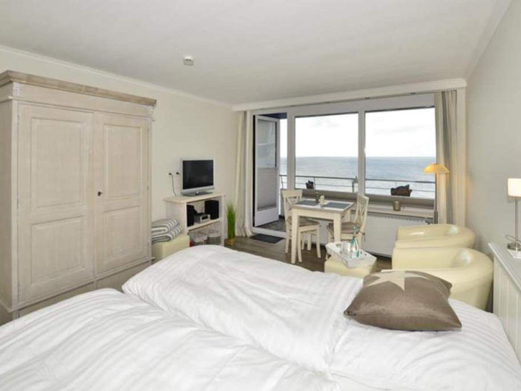 Modernes 1-Zimmer-Appartement mit spektakulärem Meerblick in Westerland, ideal für erholsame Tage am Strand.