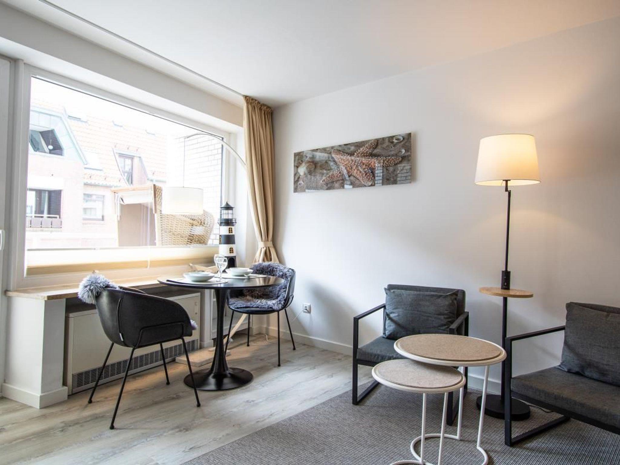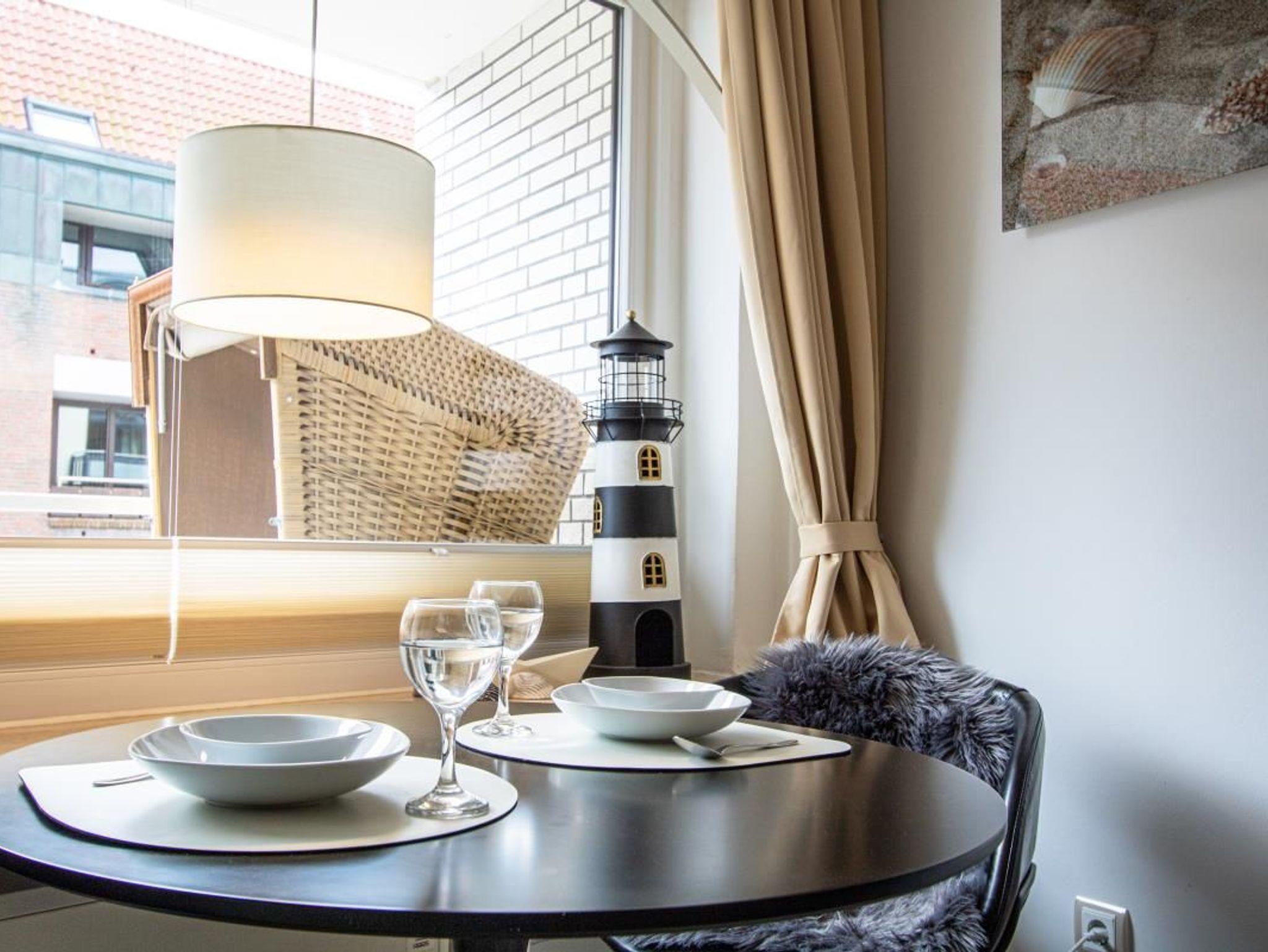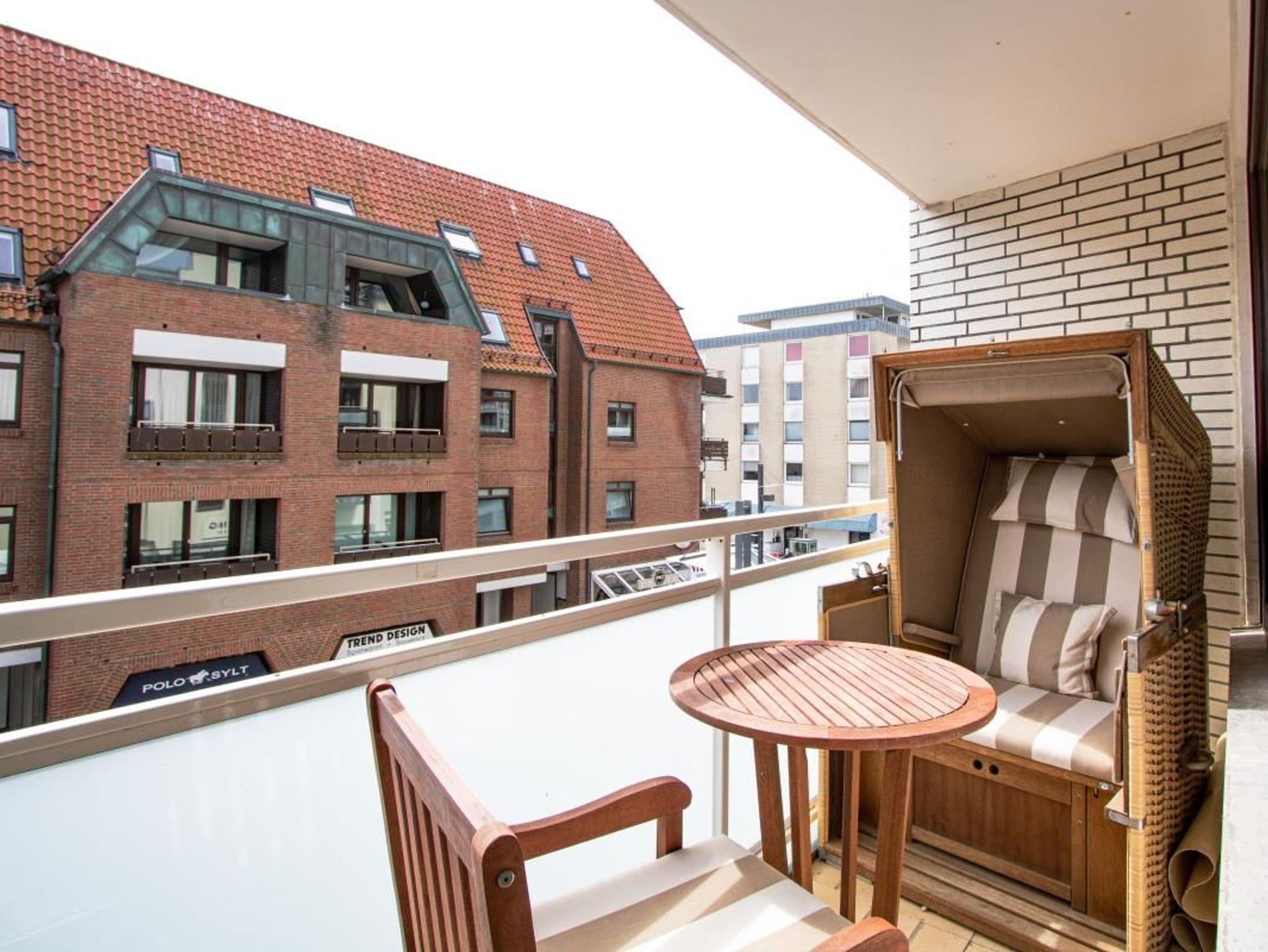 Modernes Apartment Kompass 05 in Westerland, nur 100 m vom Strand mit Balkon und kleinem Meerblick.