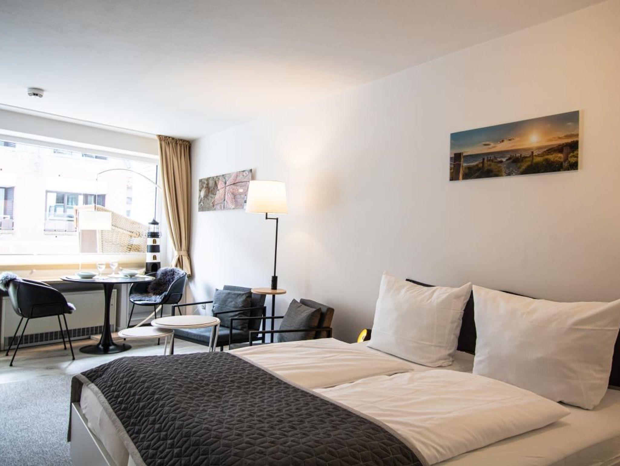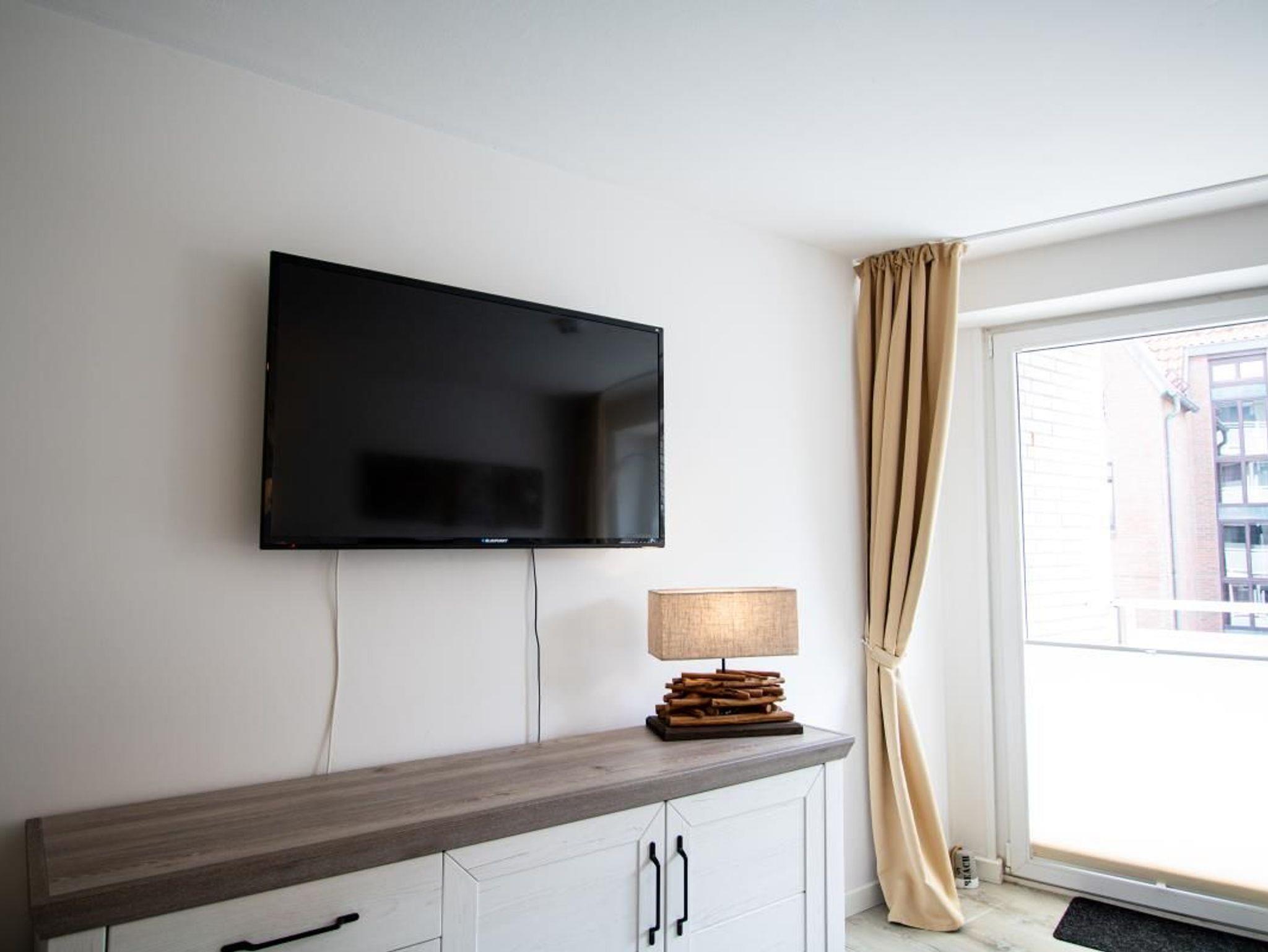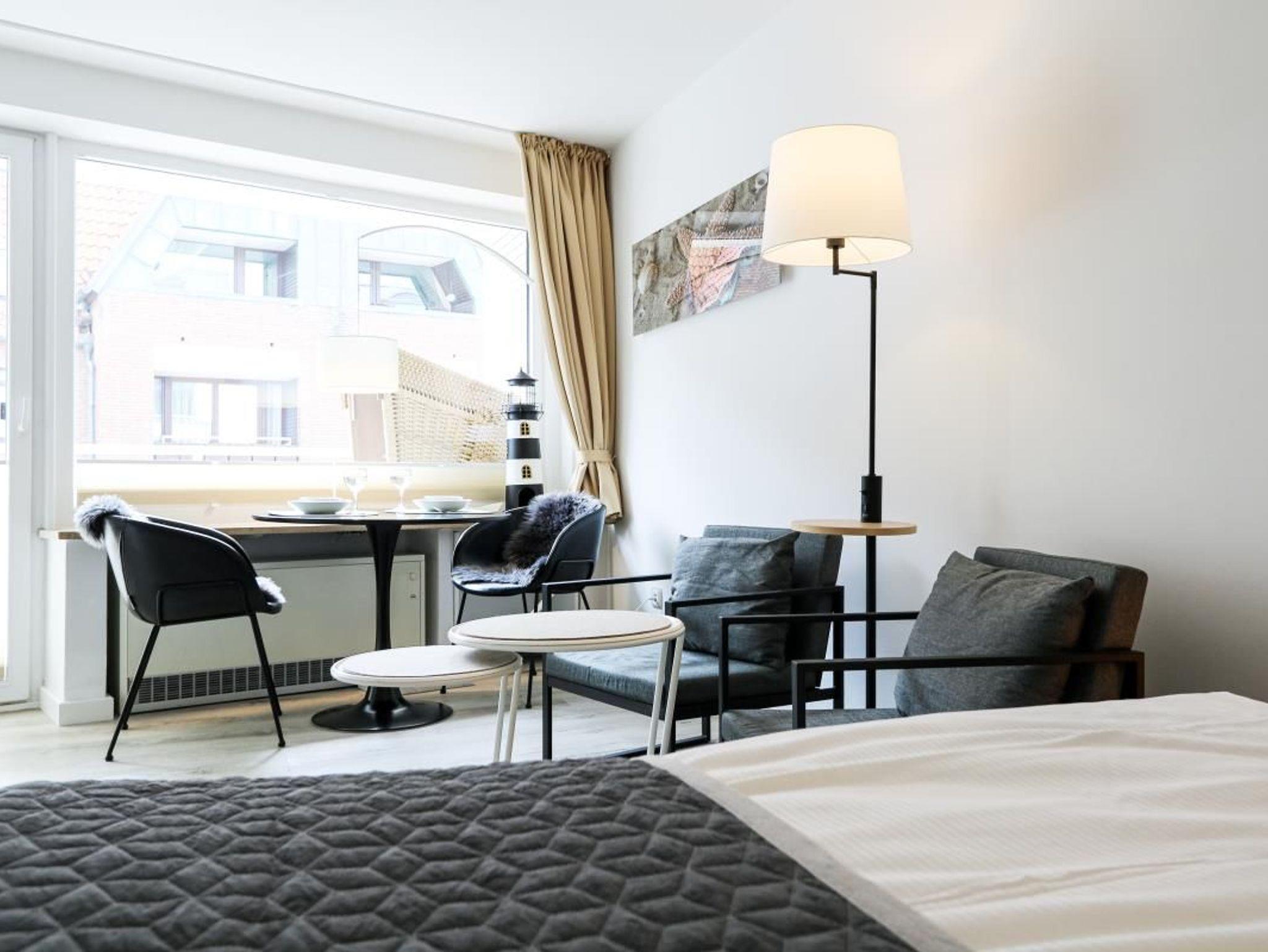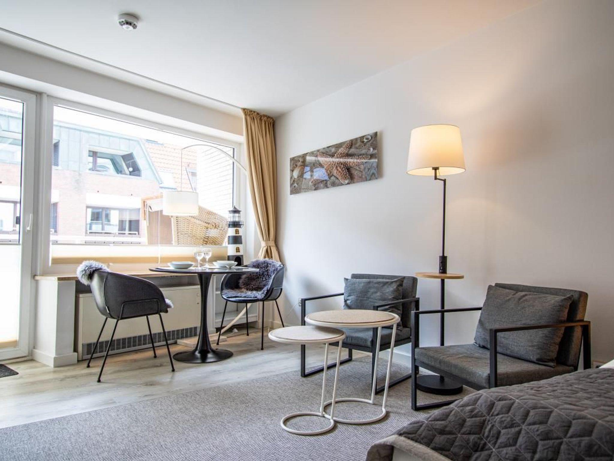 Modernes Apartment Kompass 05 in Westerland, nur 100 m vom Strand mit Balkon und kleinem Meerblick.