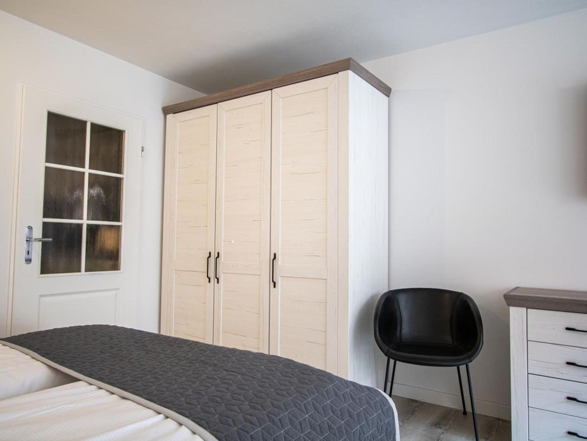 Im Wohnzimmer ist ein bequemes Doppelbett sowie ein Eßplatz am Fenster mit Stühlen und zwei bequemen Sesseln.