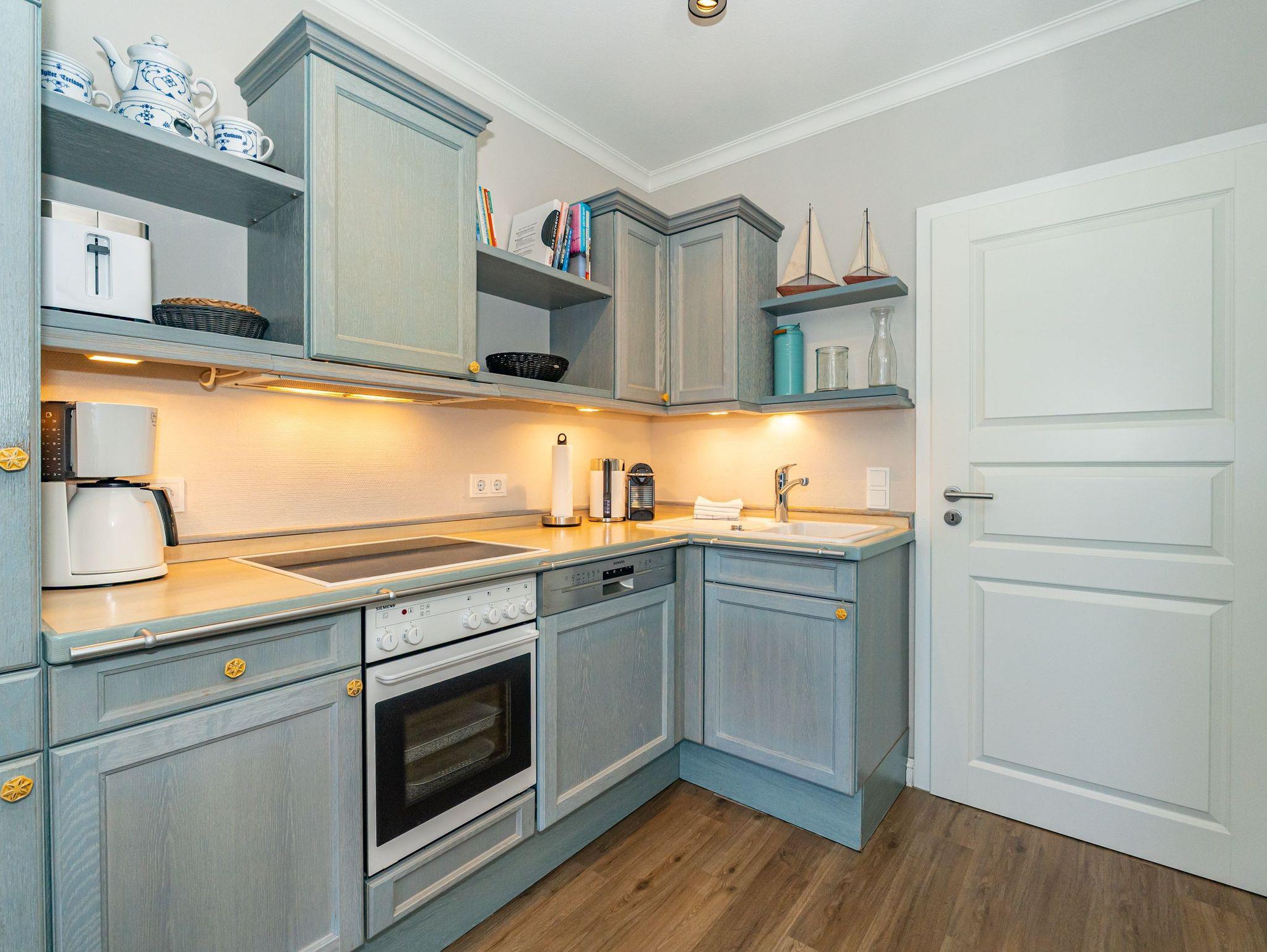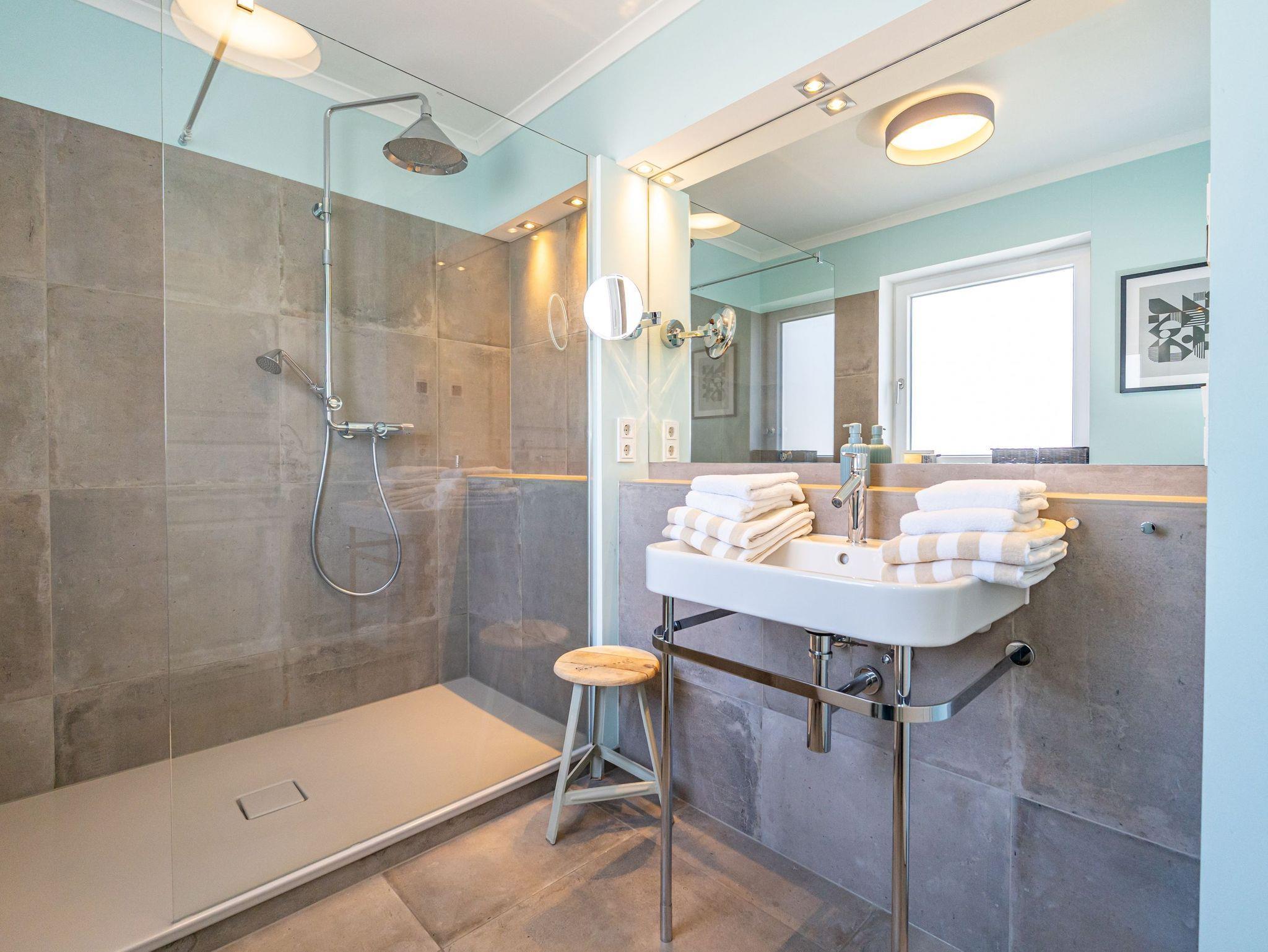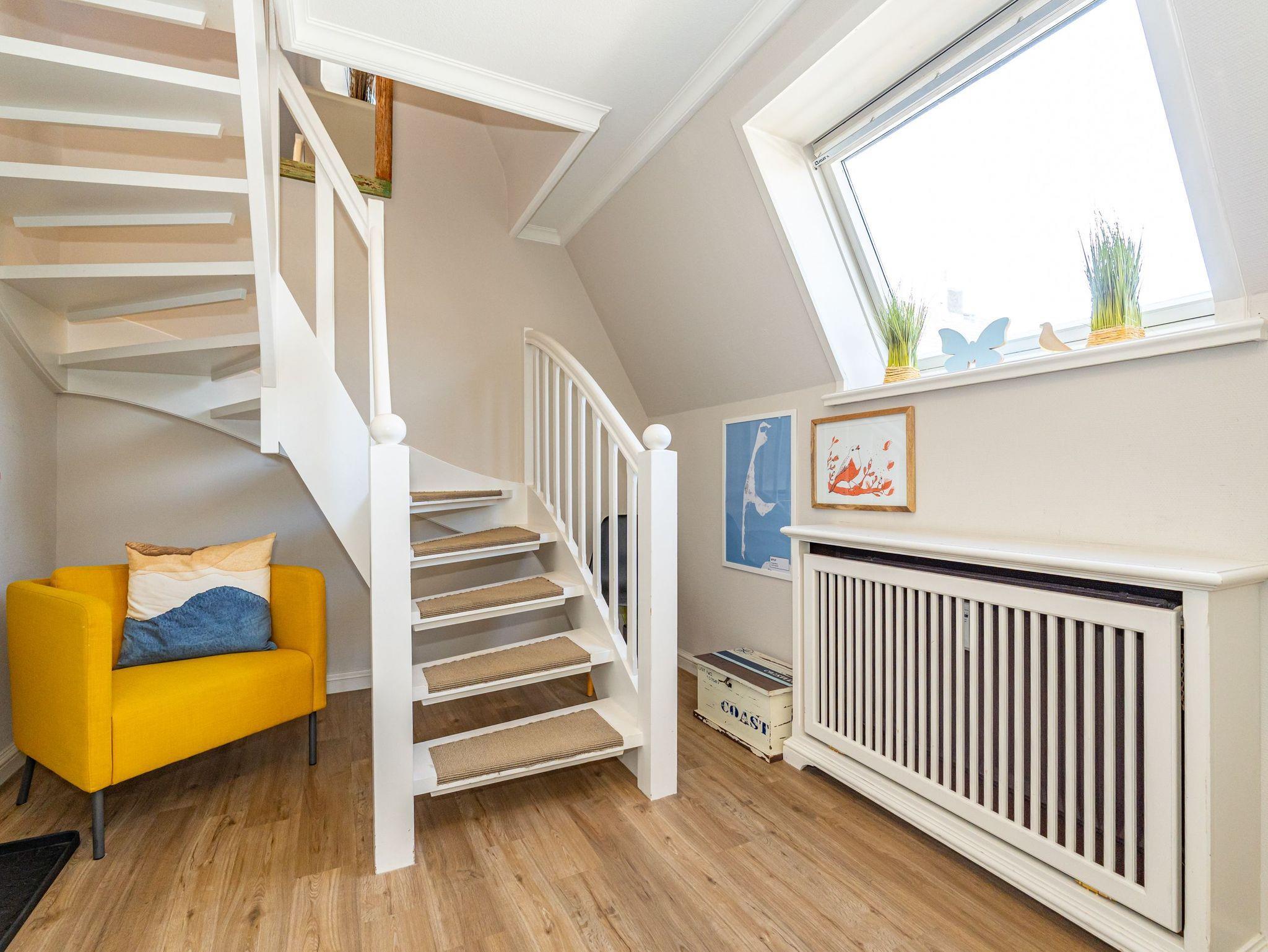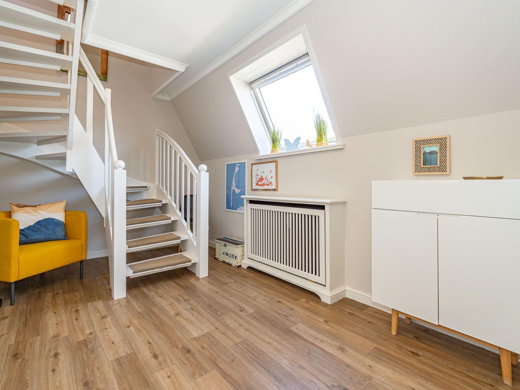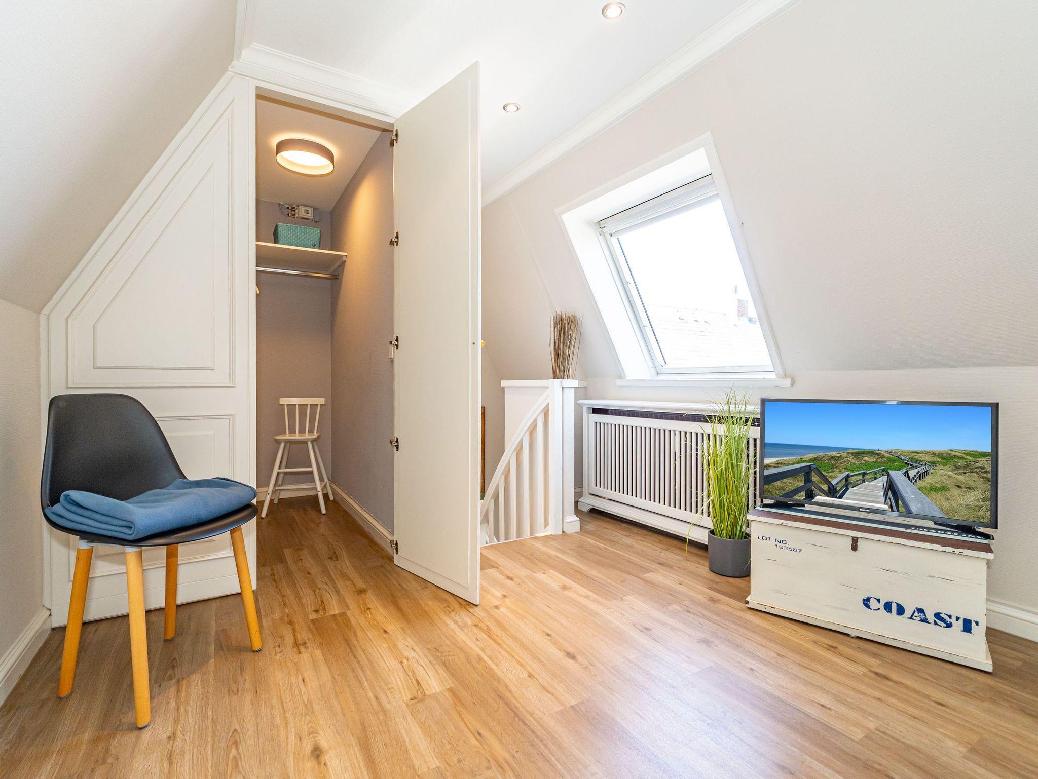 Mit pastelligen Farben und einem modernen Möbelmix bietet diese hochwertig ausgestattete Ferienwohnung Sylter Glück in Westerland auf einer Fläche von 75 m² Platz für maximal 4 Personen. Sie befindet sich in der 2. Etage und verfügt neben dem Wohnzimmer über ein Schlafzimmer sowie ein Badezimmer. Zur Ausstattung gehören ein Ostbalkon mit Balkonmöbeln, Auflagen, sowie ein offener WLAN Hotspot im Haus. Der Wohnbereich vereint eine gemütliche Schlafcouch (Liegefläche 1,40 x 2m), einen Flachbild-TV sowie eine voll ausgestattete offene Einbauküche mit Backofen, Geschirrspüler, Cerankochfeld sowie Nespressomaschine (Kapseln). Kühlschrank, Kaffeemaschine, Toaster und Wasserkocher gehören zur Grundausstattung. Vom Wohnzimmer aus hat man Zutritt auf den geschützten Balkon, der bei schönem Wetter zum sonnenbaden und verweilen einlädt. Für einen guten Start in den Tag sorgt das trendige großzügige Badezimmer, das nicht nur ein optischer Hingucker ist, sondern mit Regendusche, Fön und Handtuchtrockner entsprechende Annehmlichkeiten mit sich bringt.
