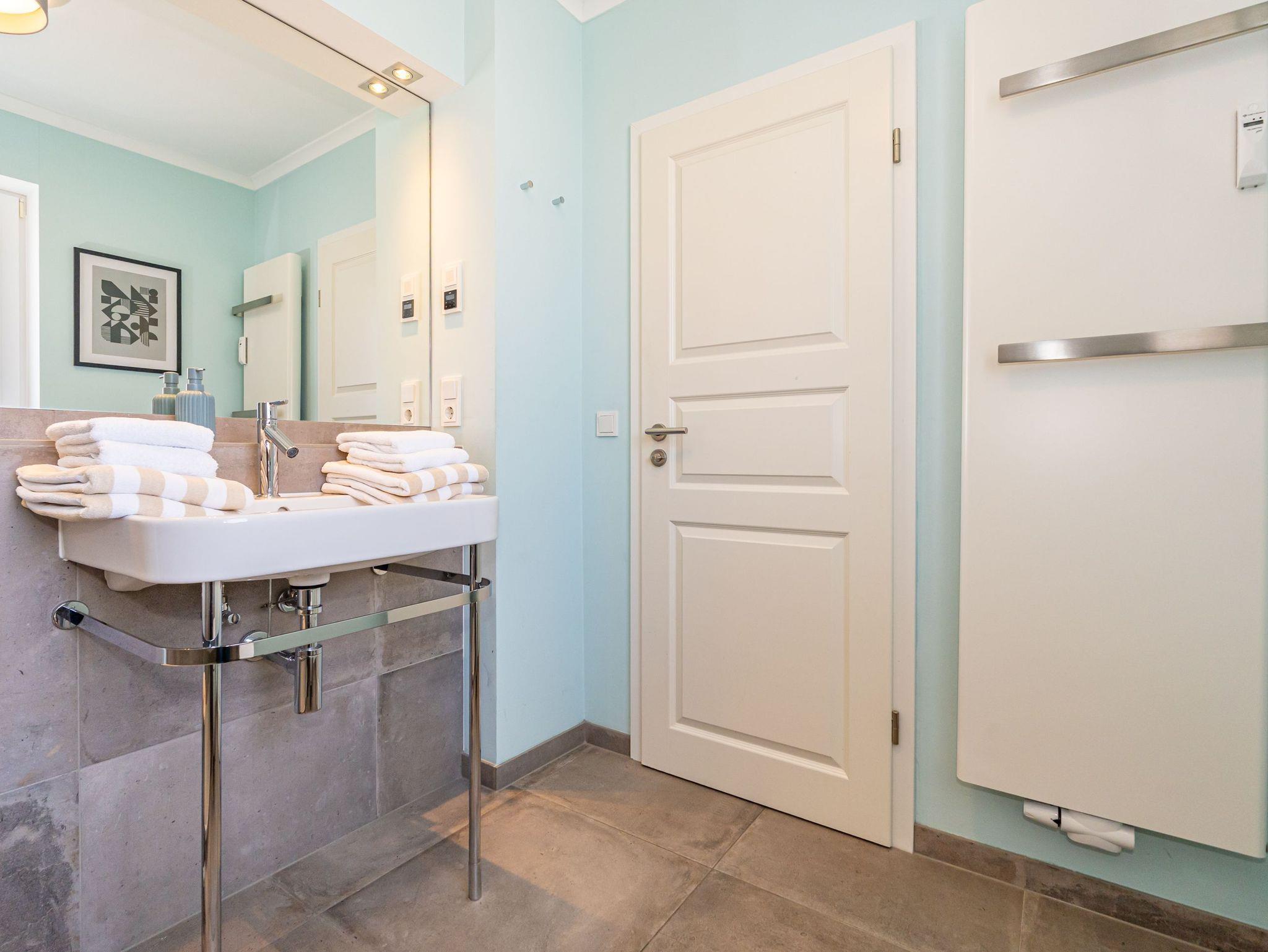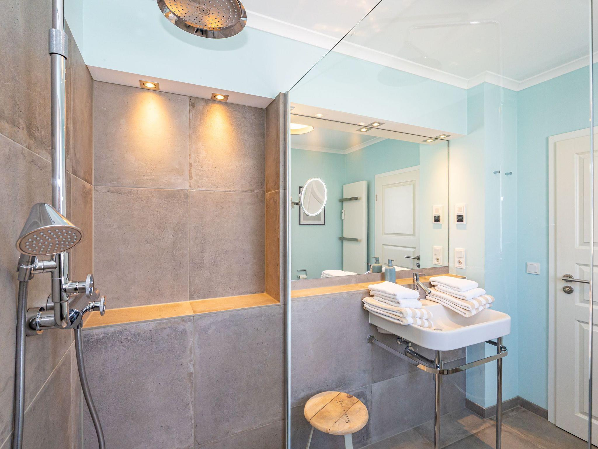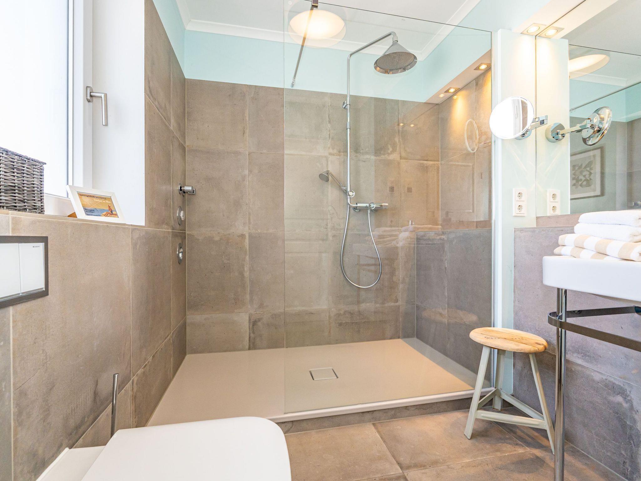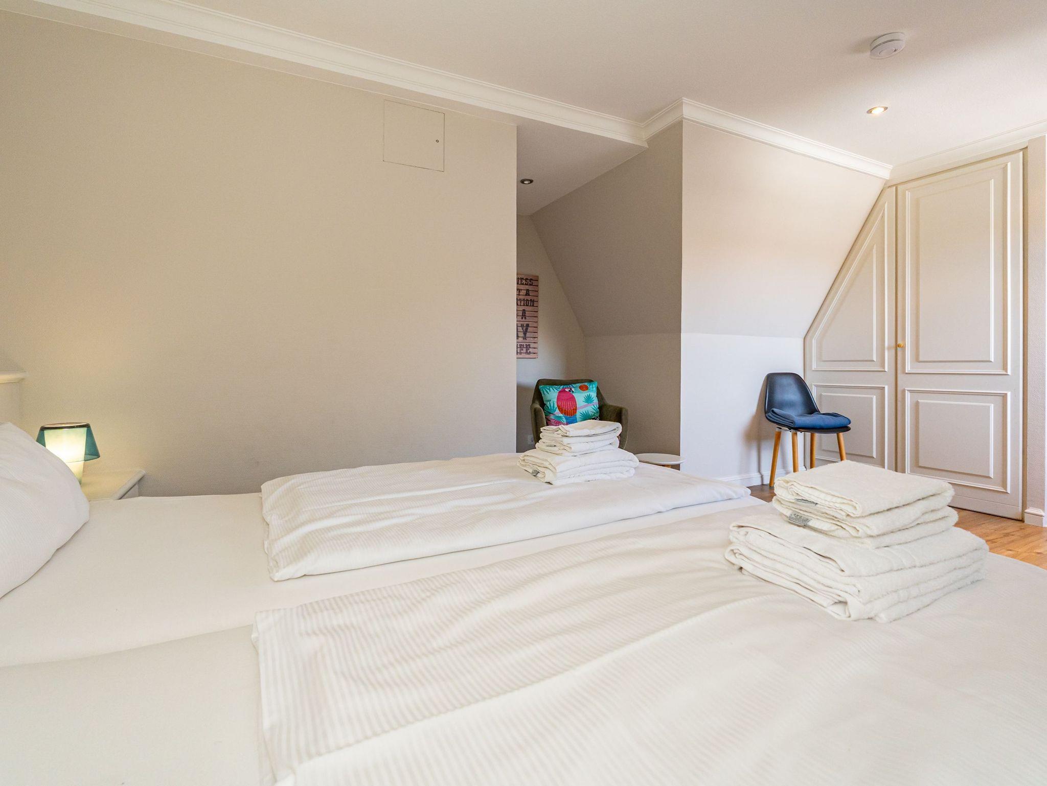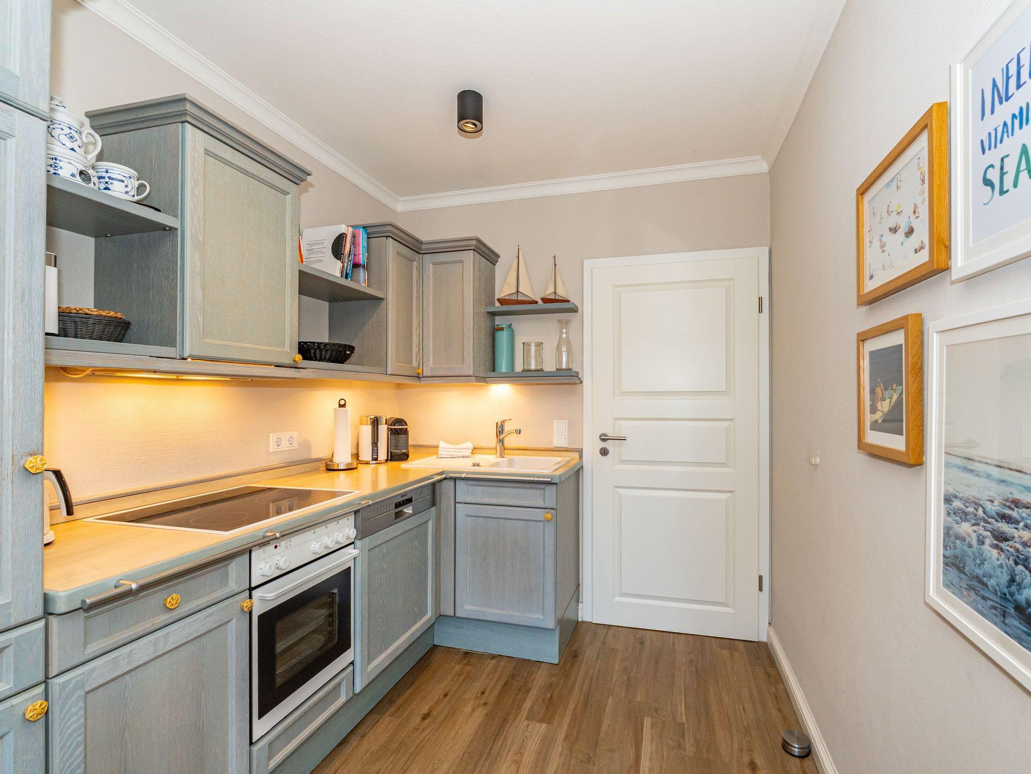 Mit pastelligen Farben und einem modernen Möbelmix bietet diese hochwertig ausgestattete Ferienwohnung Sylter Glück in Westerland auf einer Fläche von 75 m² Platz für maximal 4 Personen. Sie befindet sich in der 2. Etage und verfügt neben dem Wohnzimmer über ein Schlafzimmer sowie ein Badezimmer. Zur Ausstattung gehören ein Ostbalkon mit Balkonmöbeln, Auflagen, sowie ein offener WLAN Hotspot im Haus. Der Wohnbereich vereint eine gemütliche Schlafcouch (Liegefläche 1,40 x 2m), einen Flachbild-TV sowie eine voll ausgestattete offene Einbauküche mit Backofen, Geschirrspüler, Cerankochfeld sowie Nespressomaschine (Kapseln). Kühlschrank, Kaffeemaschine, Toaster und Wasserkocher gehören zur Grundausstattung. Vom Wohnzimmer aus hat man Zutritt auf den geschützten Balkon, der bei schönem Wetter zum sonnenbaden und verweilen einlädt. Für einen guten Start in den Tag sorgt das trendige großzügige Badezimmer, das nicht nur ein optischer Hingucker ist, sondern mit Regendusche, Fön und Handtuchtrockner entsprechende Annehmlichkeiten mit sich bringt.