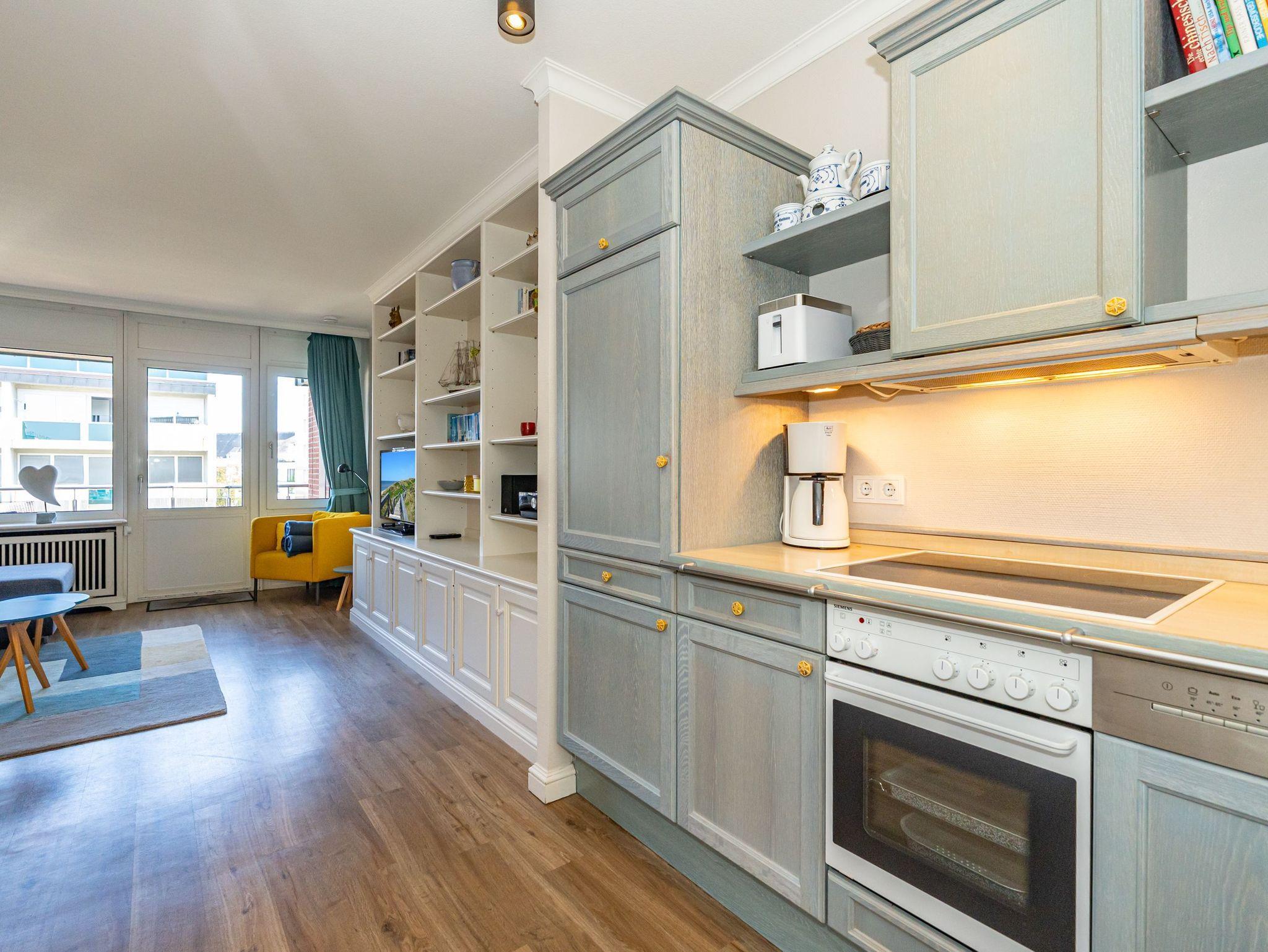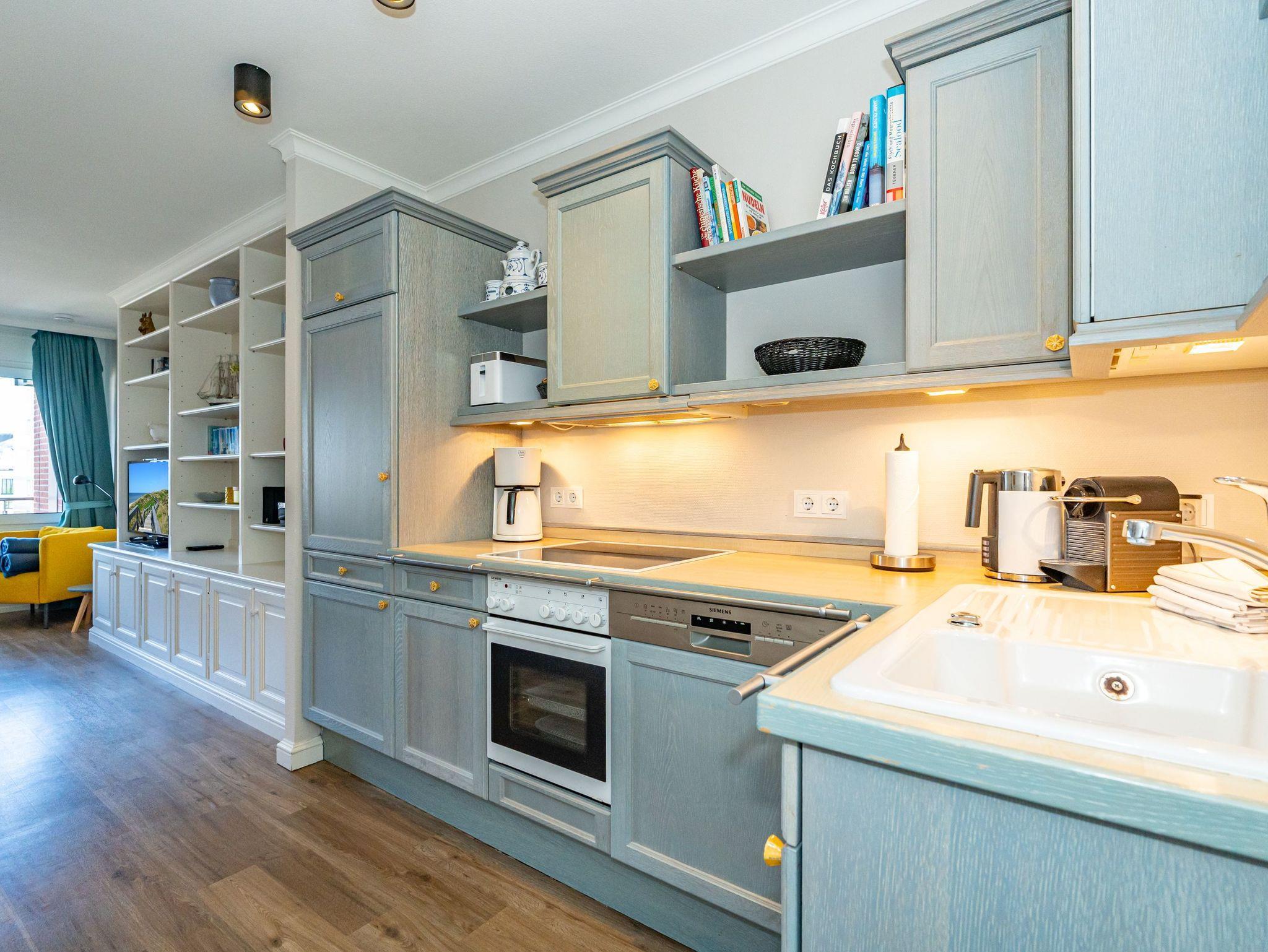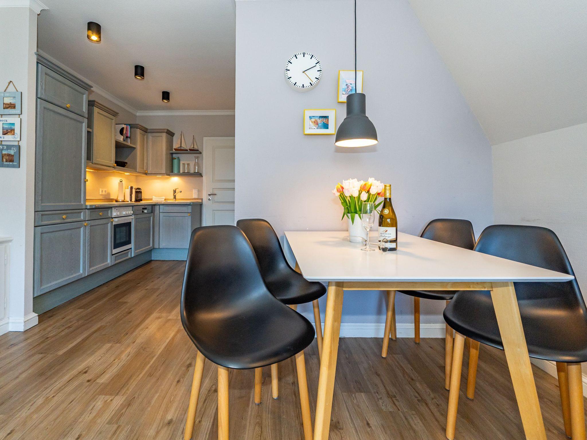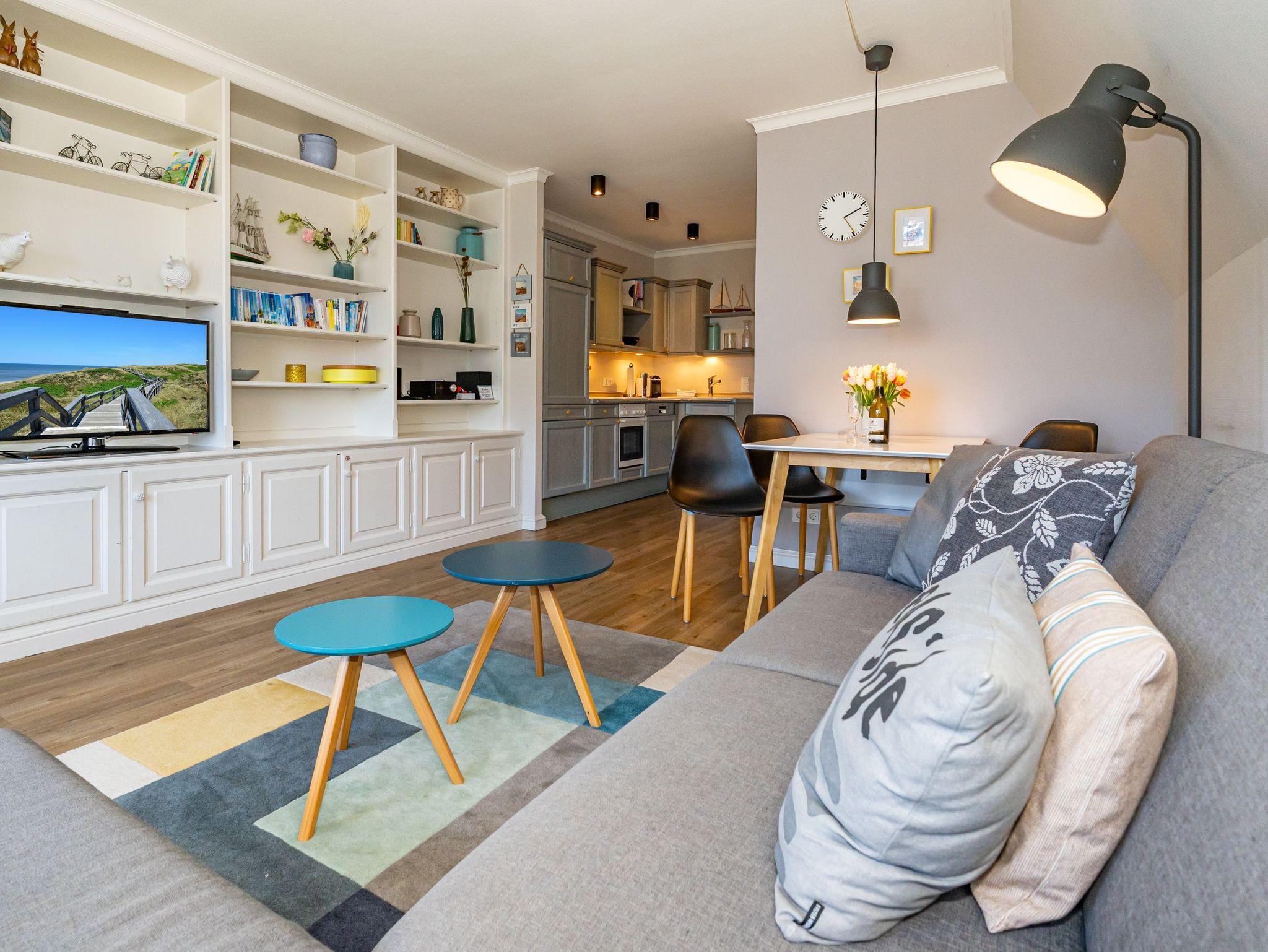 Hochwertige Ferienwohnung Sylter Glück in Westerland mit Balkon, moderner Küche und zentraler Lage nur wenige Schritte vom Strand entfernt.