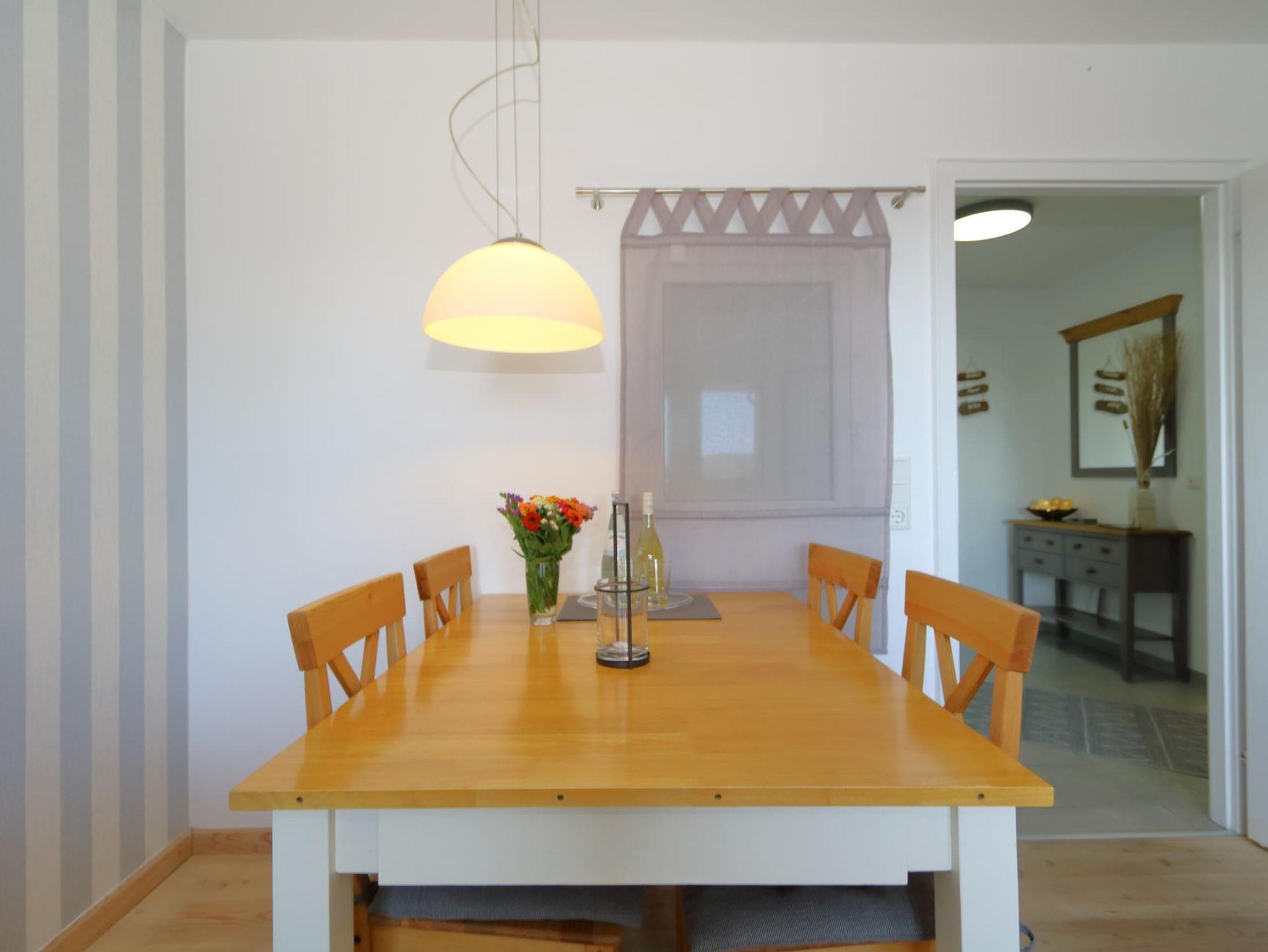 Die Küche ist sehr umfangreich ausgestattet. Das Geschirr ist für 4 Personen ausgelegt. Ein Backofen, Spülmaschine, Kühl- Gefrierschrank, Mikrowelle, Toaster, Filterkaffeemaschine, Padmaschine (Krupps Dolce-Gusto), viele weitere Utensilien zum Kochen/ Backen und vieles mehr gehören hier zum Standard .Ein kleiner Tisch mit Stühlen erweitert den Arbeitsbereich oder lädt zum Essen.