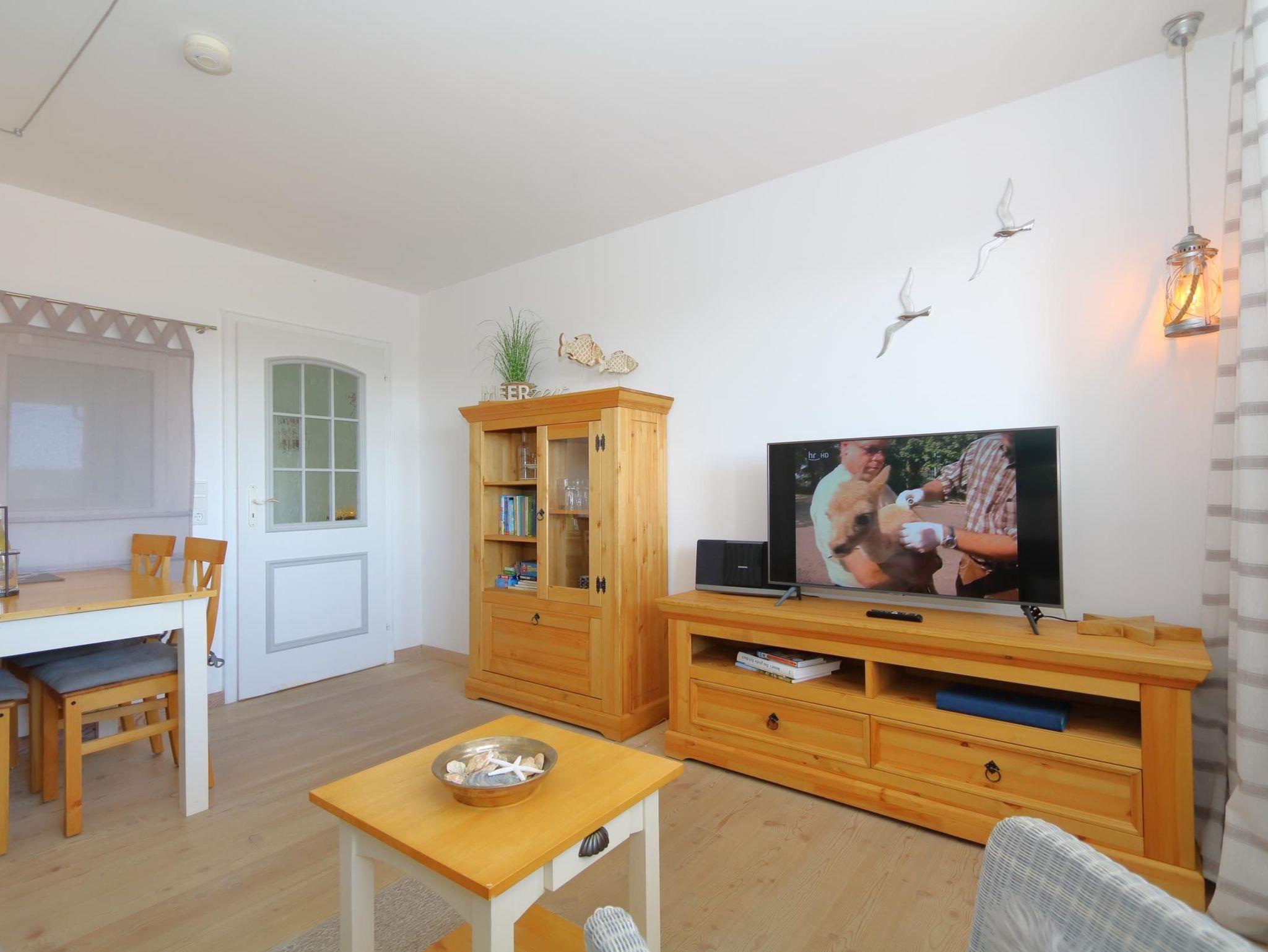 Das Schlafzimmer, ebenfalls mit einem Echtholzfußboden ausgestattet, komfortablen Boxspringbett (2,0x 2,0m) und LED- Fernseher sorgen für erholsame Nächte nach ausgedehnten Strandspaziergängen oder einer durchgefeierten Nacht. Ein Bettchen für die kleinsten ist natürlich auch da und kann bei Bedarf aufgestellt werden.