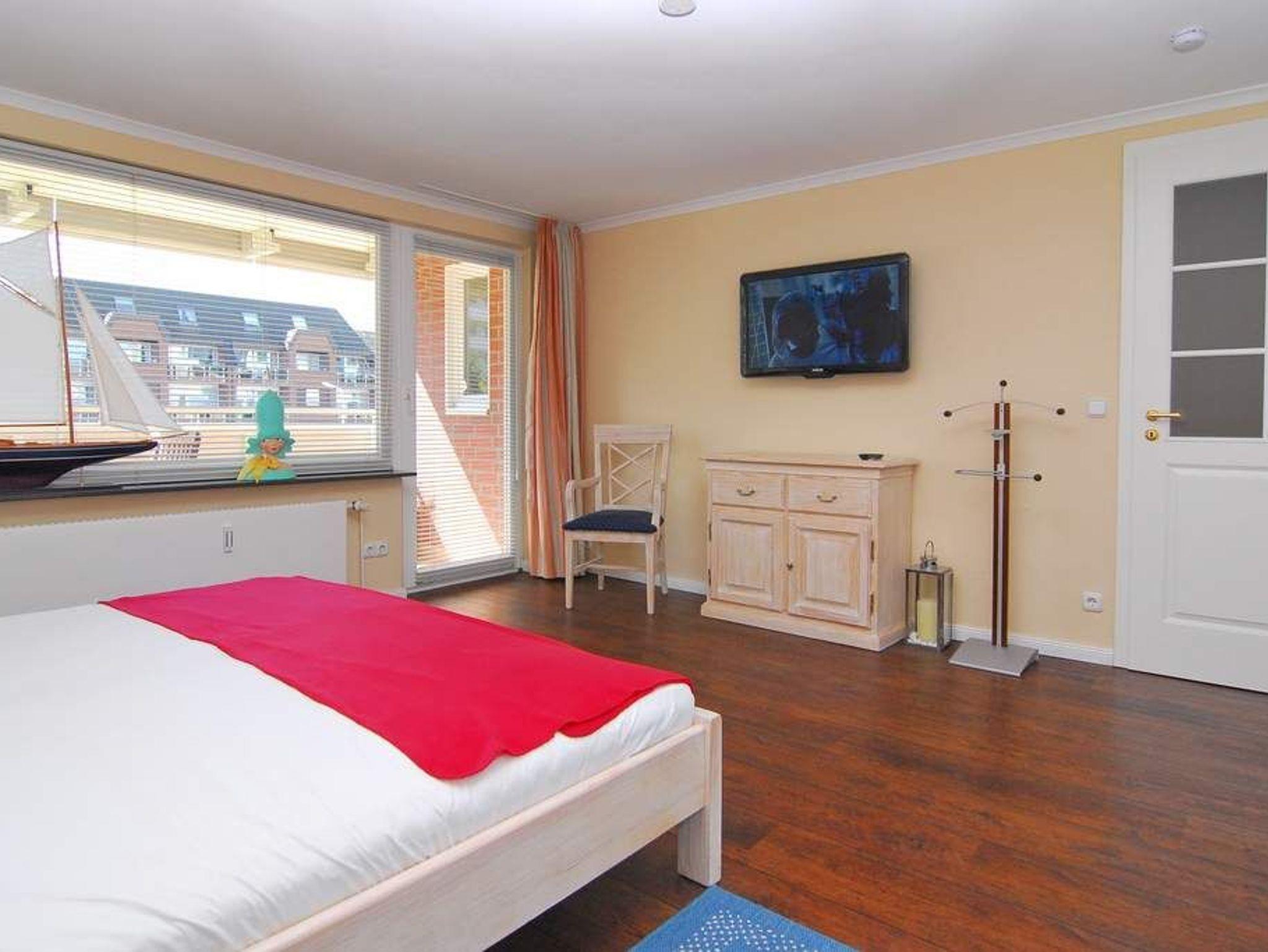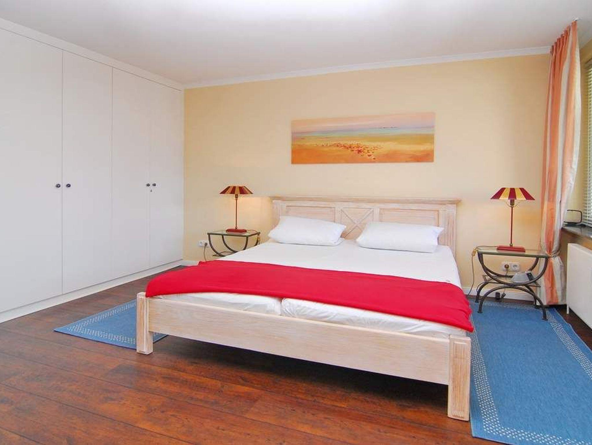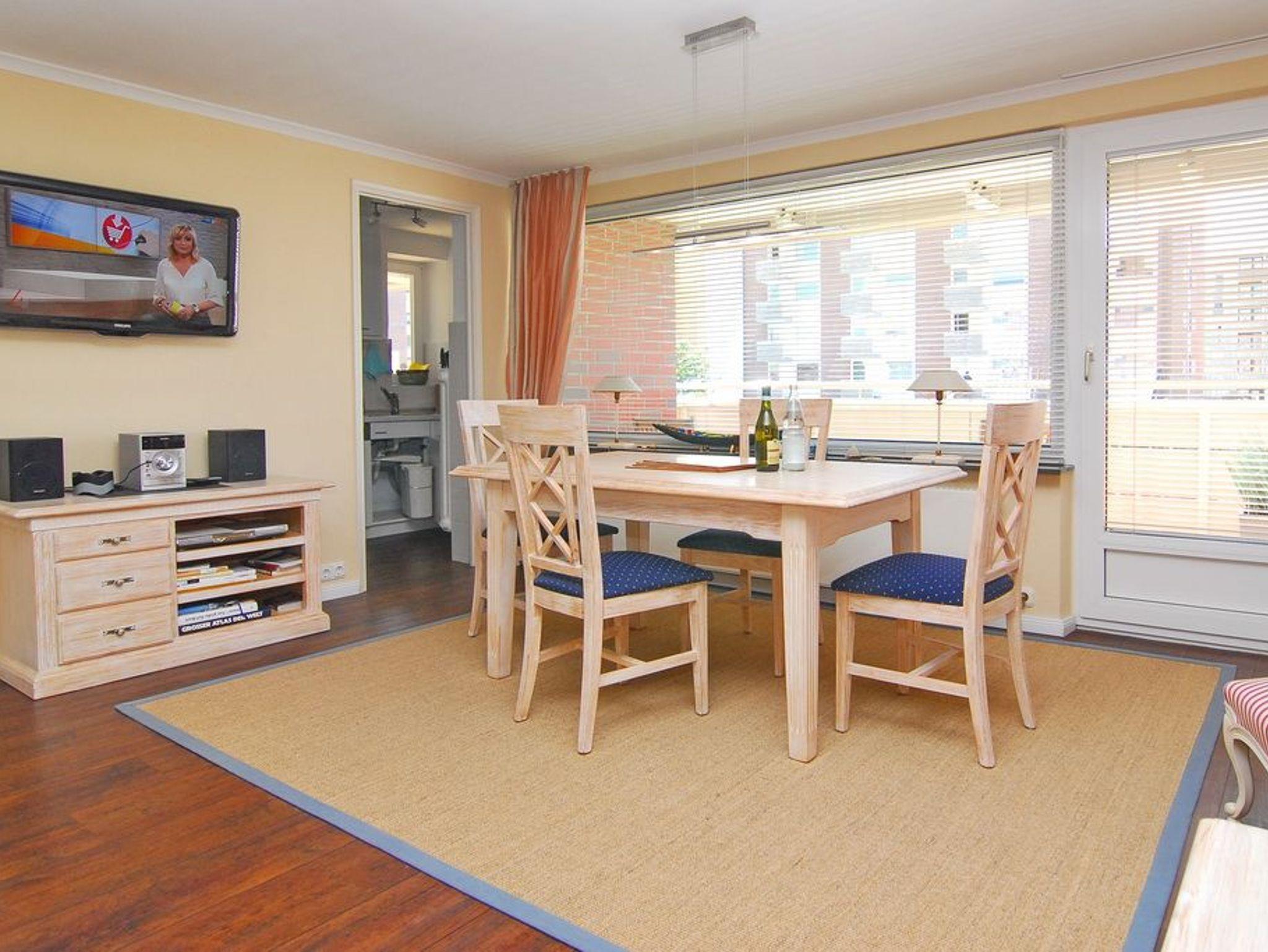 Exklusive 2-Zimmer-Ferienwohnung im Haus Nordseeresidenz, 1. OG, ca. 65 m², Nichtraucher, großes Wohnzimmer mit Schlafcouch (180x200) , Zweisitzer-Couch und Sessel, großer Esstisch, Flat-TV, Stereoanlage, DVD, Ipodstation u. W-Lan (ohne Gewähr), separate Küche mit Geschirrspüler, Mikrowelle und Backofen, Schlafzimmer mit Doppelbett, Einbauschrank und Flat-TV, 2 Westbalkone mit Liegen und Bestuhlung, kleines Duschbad / WC, Flur mit Garderobe. Inkl. PKW-Stellplatz Nr. 9 hinter dem Haus. Tierhaltung ist nicht gestattet. Bettwäsche und Handtücher sind zur Anreise aufgezogen.