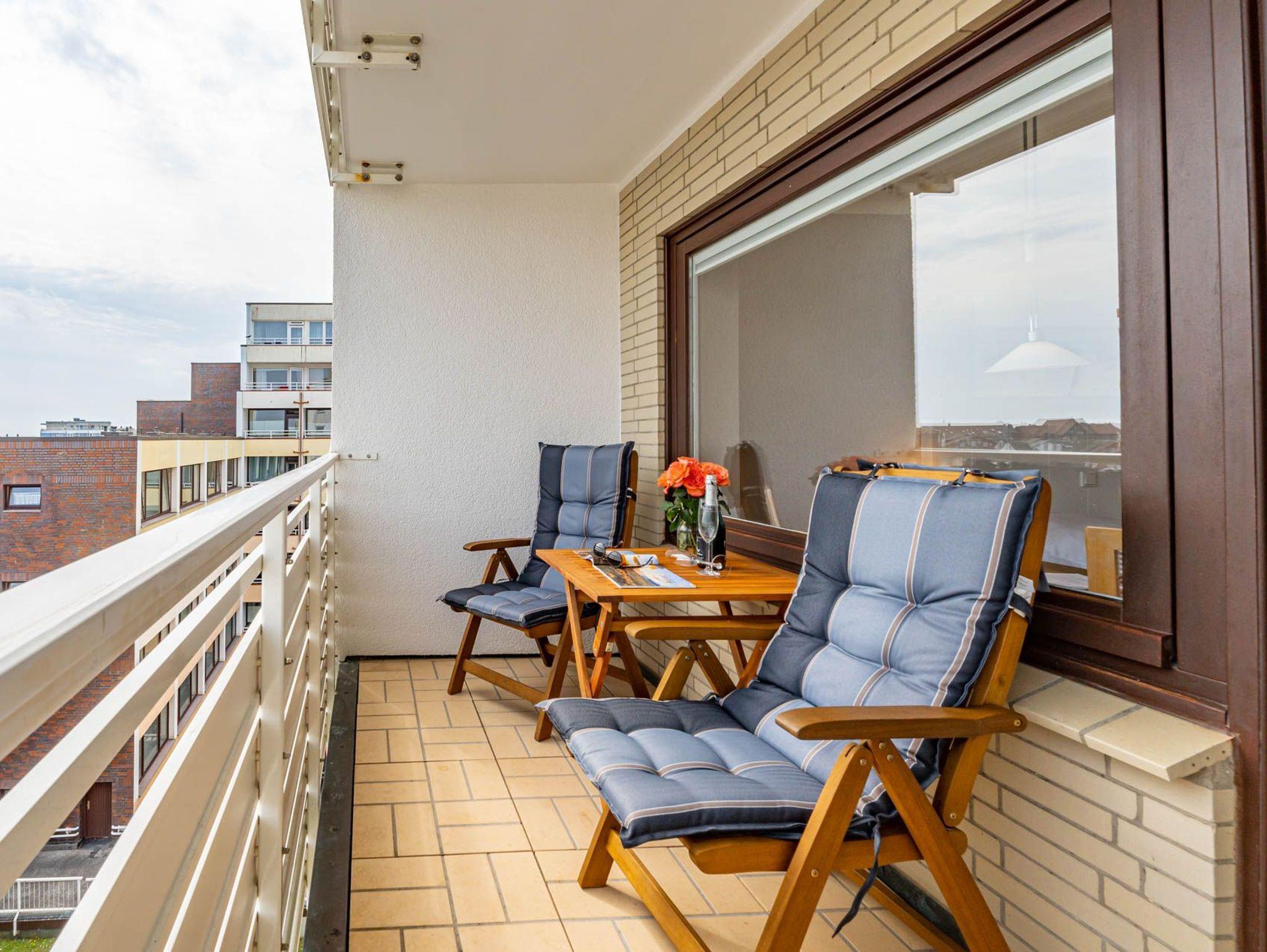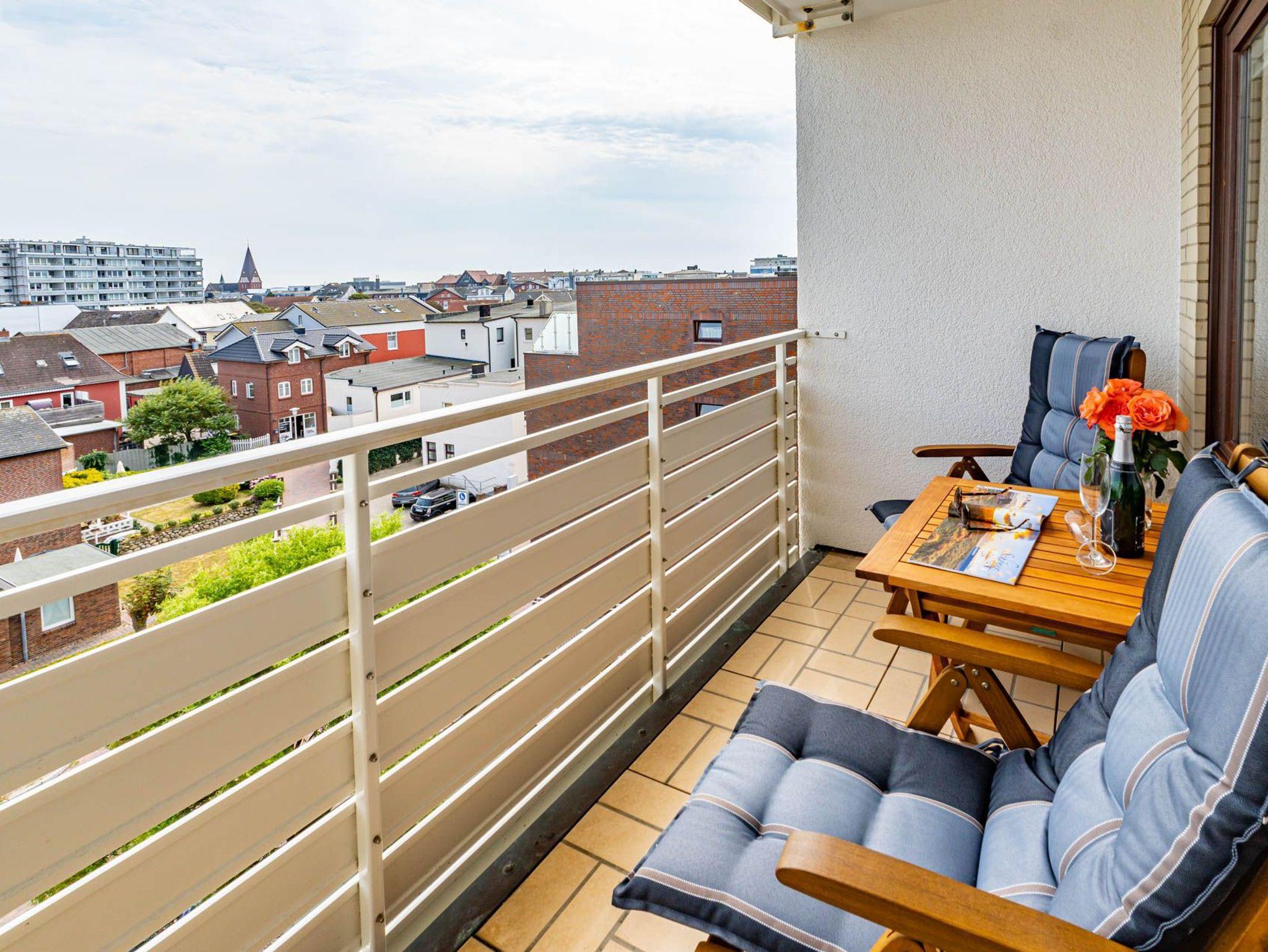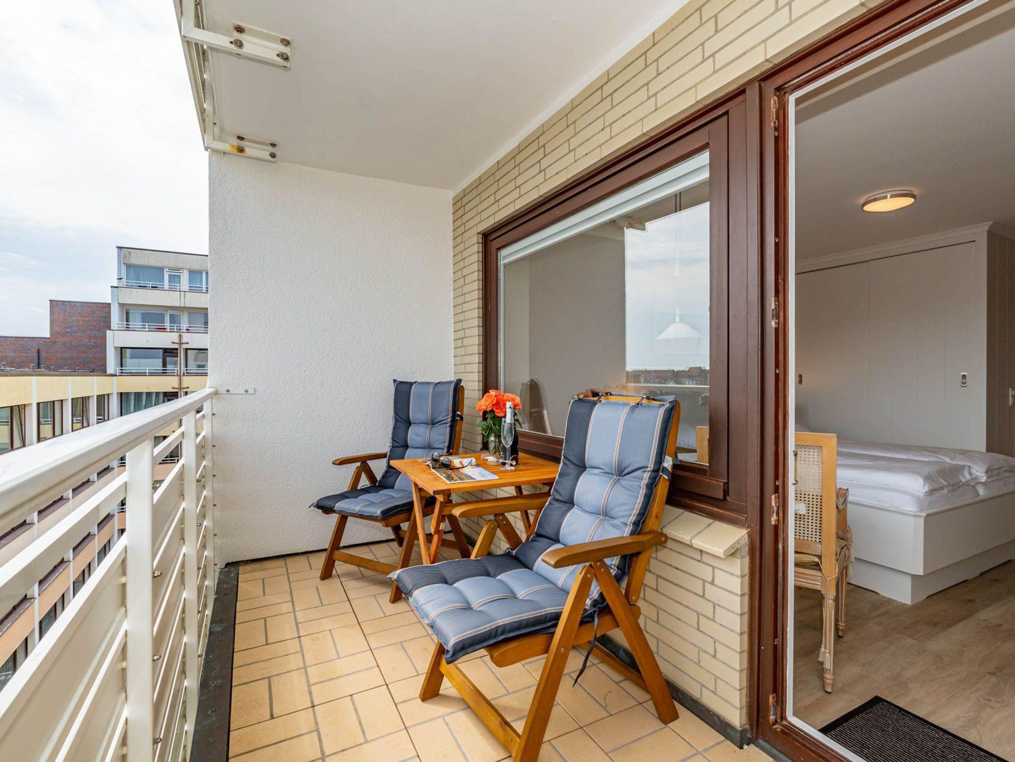 Moderne 1-Zimmer-Ferienwohnung mit Balkon und weitem Blick über Westerland auf Sylt.