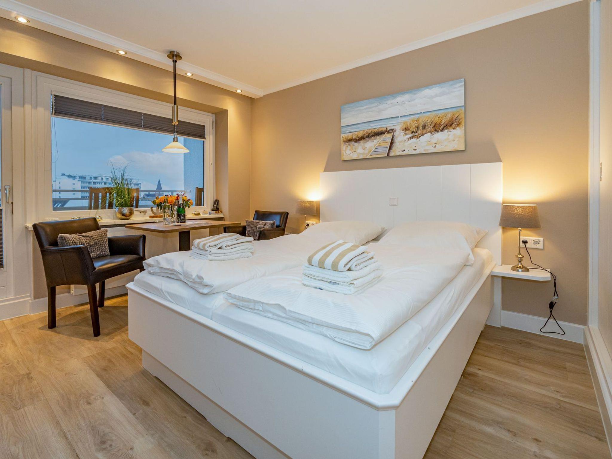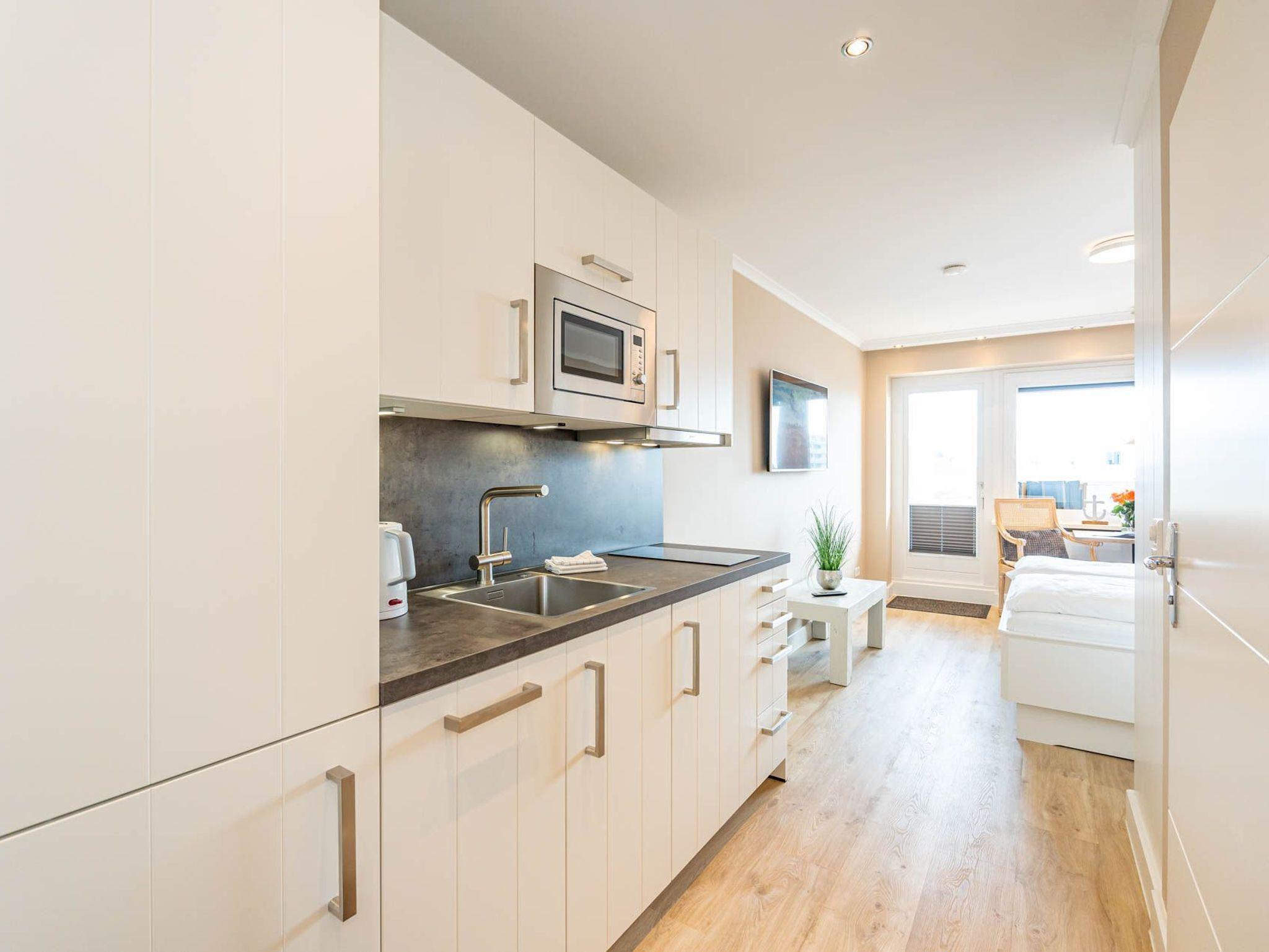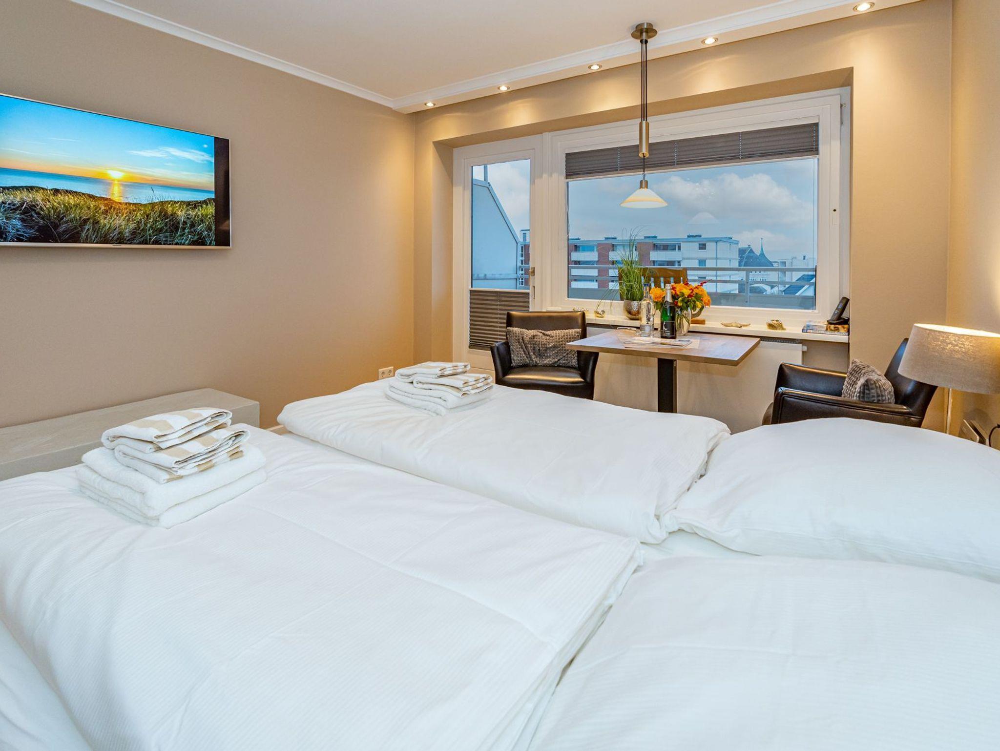 Moderne 1-Zimmer-Ferienwohnung mit Balkon und weitem Blick über Westerland auf Sylt.