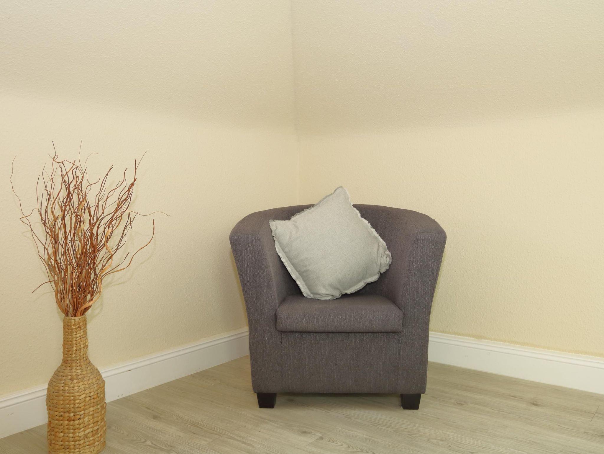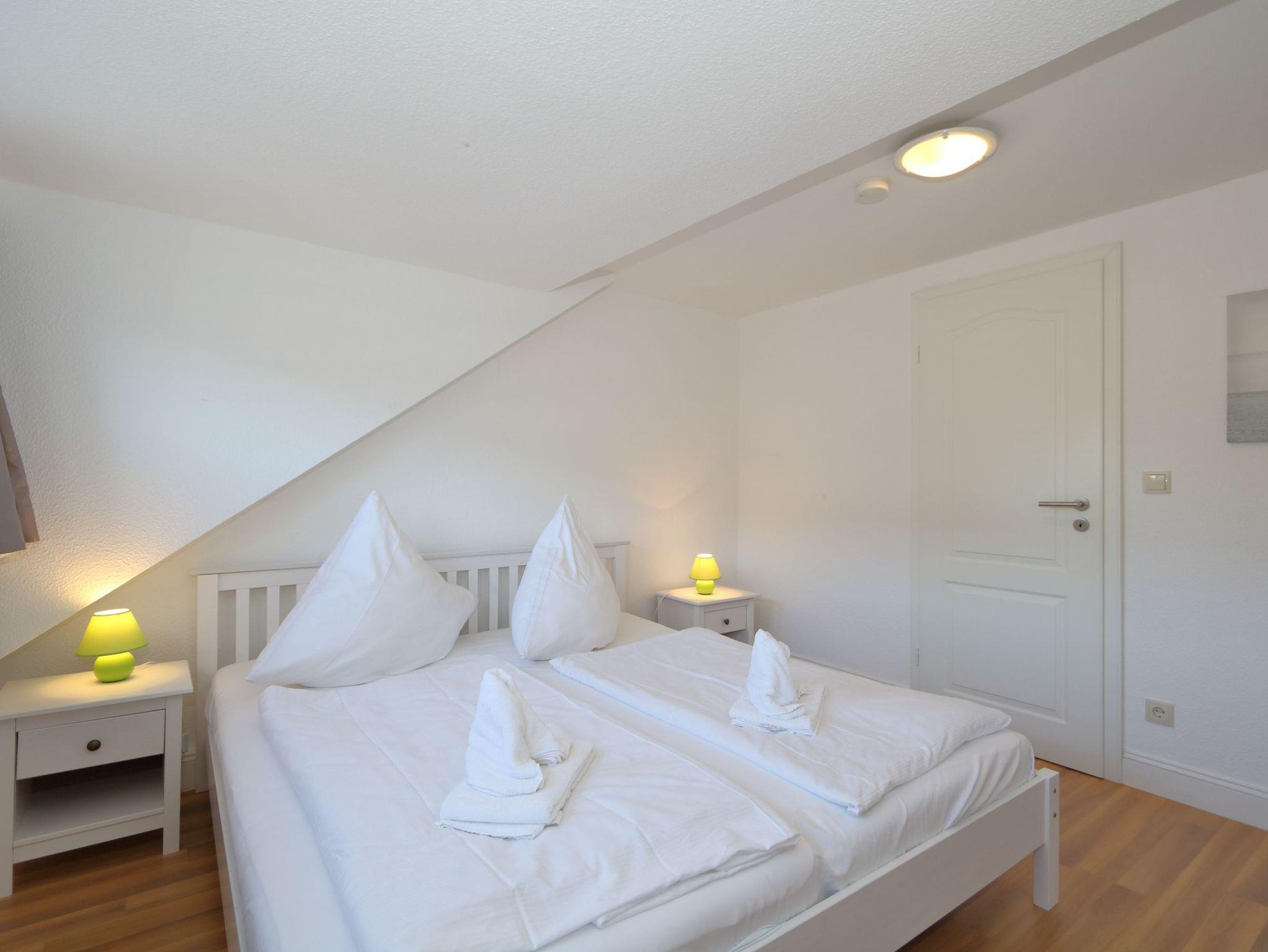 Im Flur befindet sich eine Garderobe. Von hier aus kommen Sie in das moderne Duschbad oder in das neue Schlafzimmer mit Doppelbett und großem Kleiderschrank.