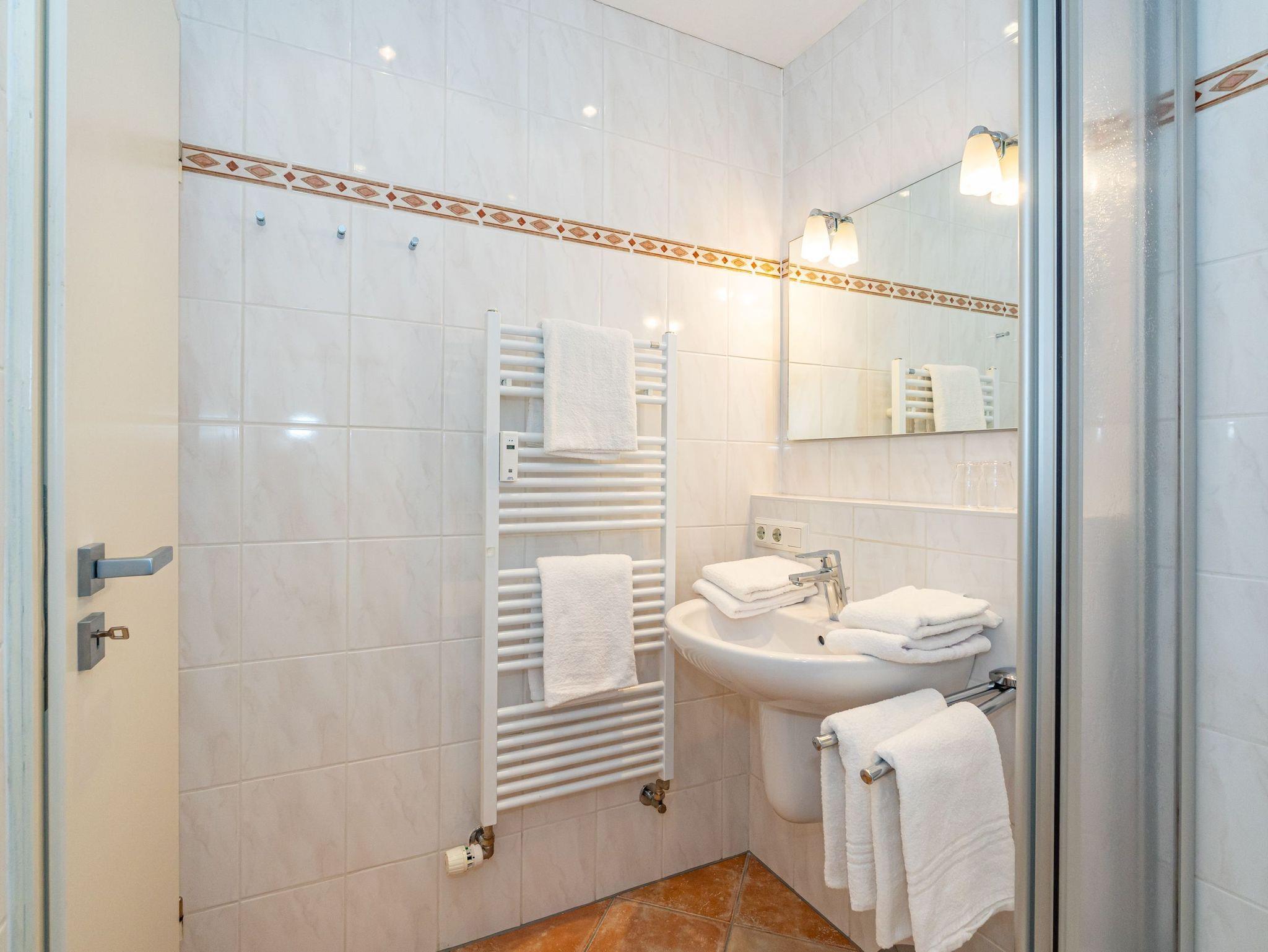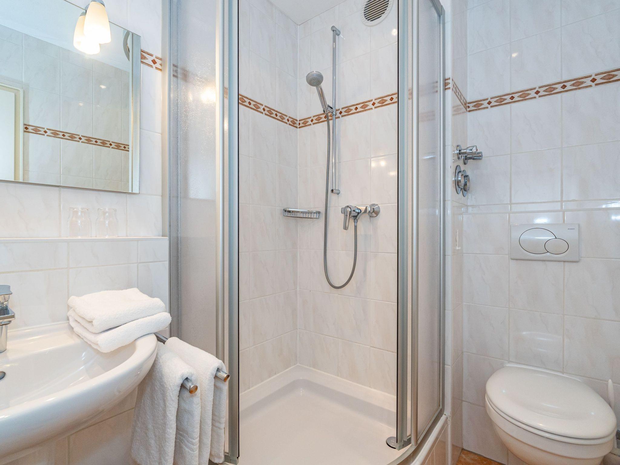 Gepflegte 1-Zimmer-Nichtraucher-Ferienwohnung (ca. 40 qm) mit optimalem Grundriss in der 1.Etage für 2 Personen mit großzügigem, sonnigen Westbalkon (mit Balkonmöbeln und Auflagen) und eigenem PKW-Stellplatz in der Tiefgarage. Vom Vorflur mit Garderobe gelangt man in den kombinierten Wohn-/Schlafraum mit Austritt zum Balkon und in das moderne, neuwertige Duschbad/WC. Der Wohn-/Schlafraum besteht aus einer gemütlichen Ledersitzgarnitur (ein Zweisitzer und ein Sessel), einer separaten Essecke und gutem Doppelbett (Boxspringbett (1,80 x 2 m) mit Einzelmatratzen + Topper, Komfortliegehöhe), Kabel-Flachbild-TV, Radio, Wlan und offener Küchenzeile. Kaffeemaschine, Wasserkocher und Toaster gehören zur Grundausstattung.