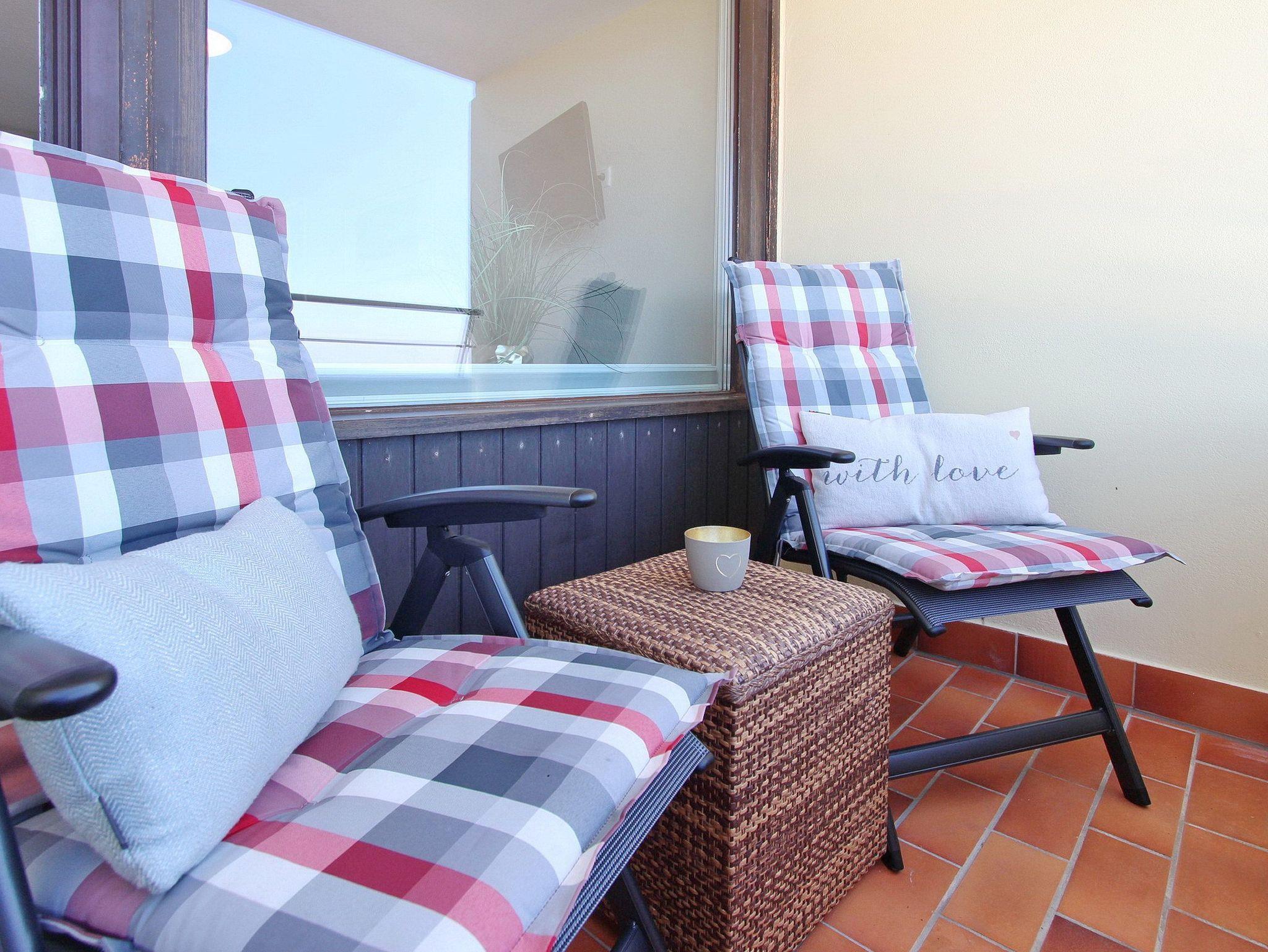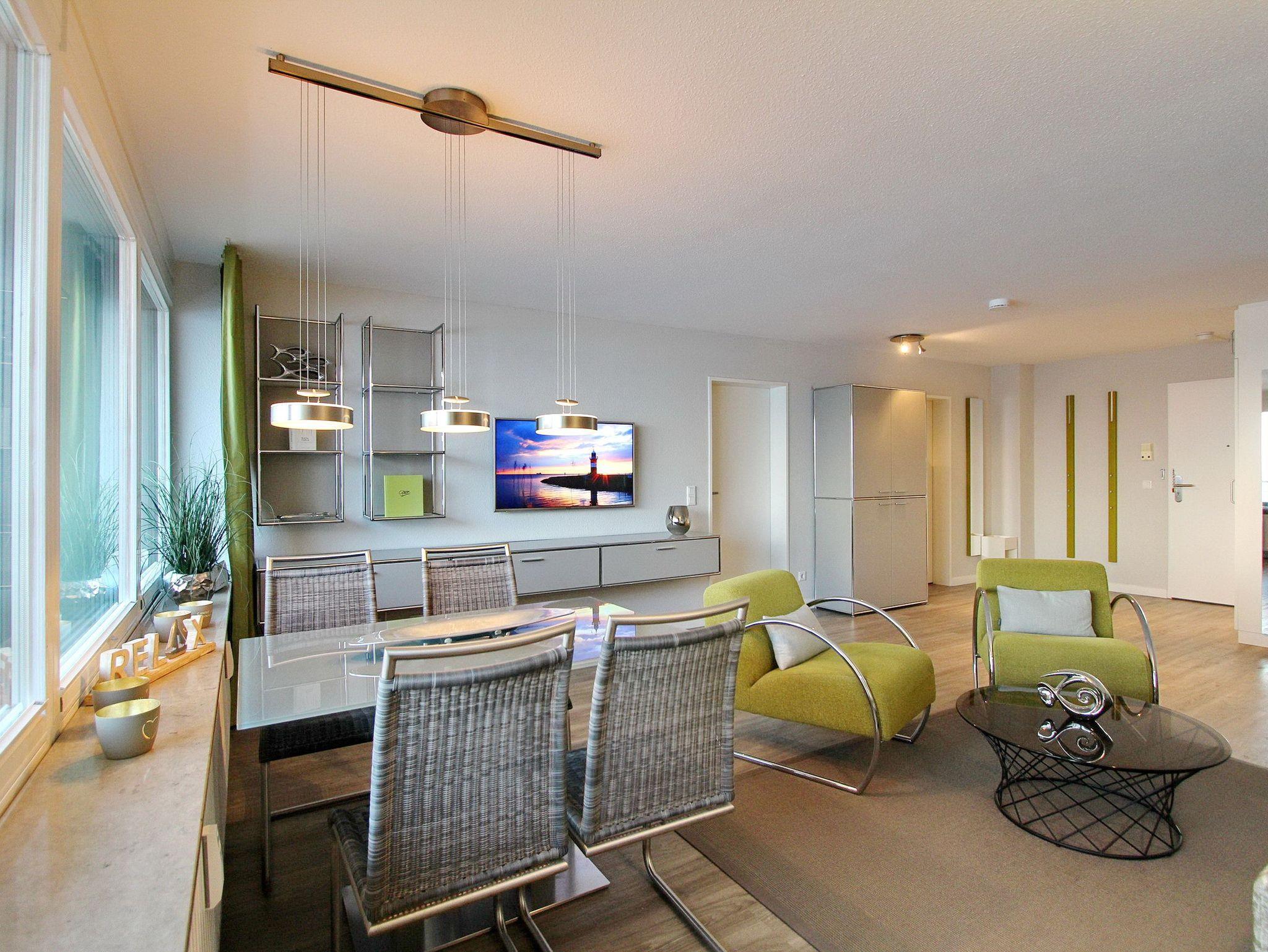 Diese stilvolle Zweizimmerwohnung in Westerland bietet Meerblick und modernen Komfort für einen entspannten Urlaub auf Sylt.