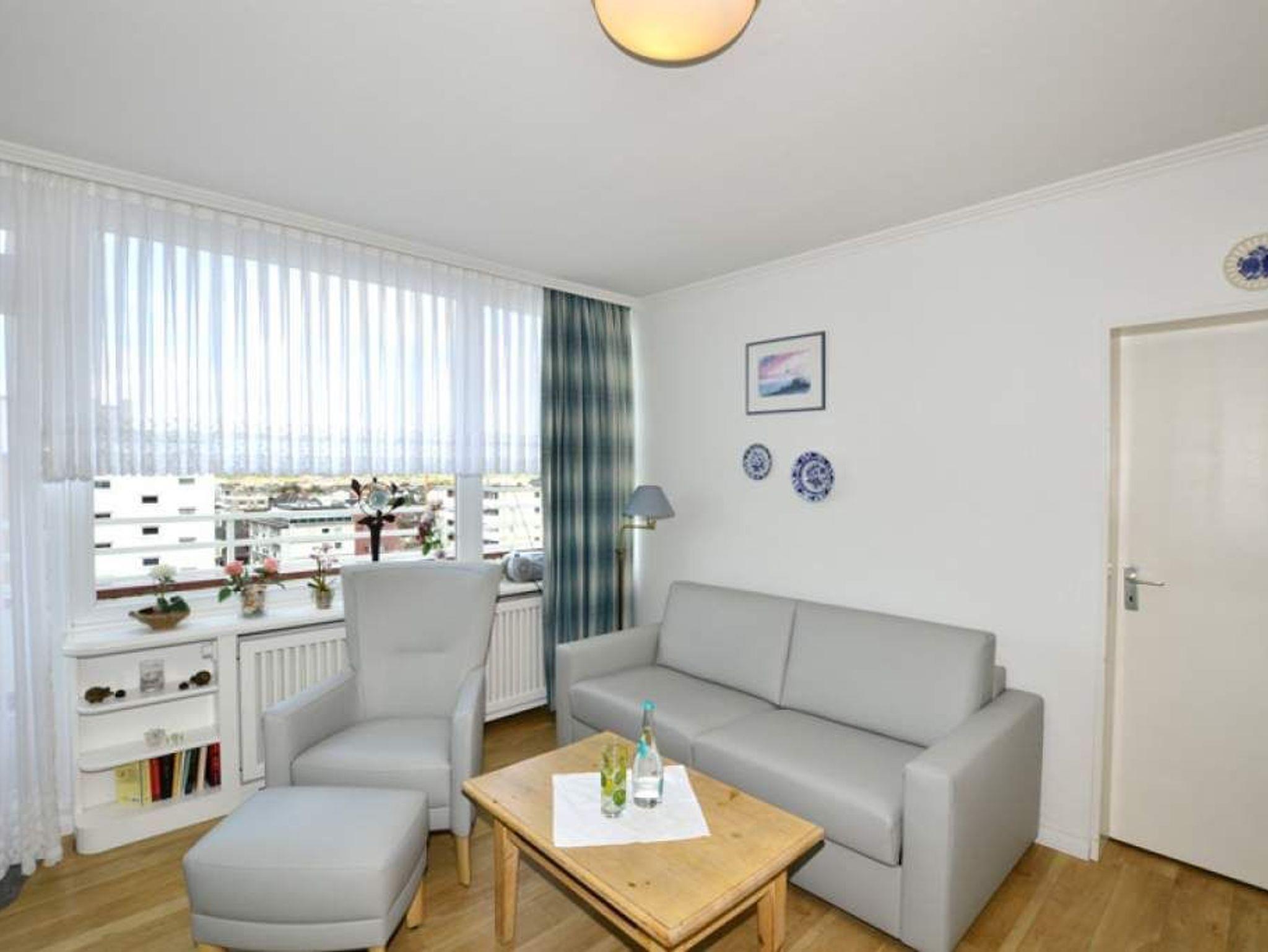 Geräumige 2-Zimmer-Ferienwohnung mit Meerblick, großem Balkon und Tiefgaragenstellplatz in Westerland auf Sylt.