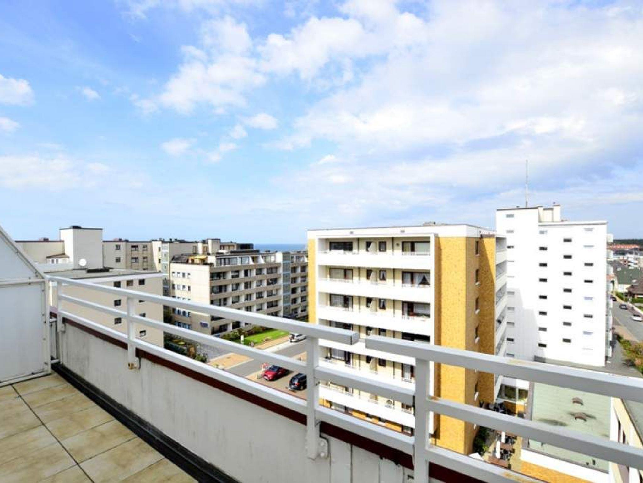 Gut ausgestattete 2-Zimmer-Nichtraucher-Ferienwohnung (ca. 60 qm) in der 6. Etage mit großem Nord-Balkon (mit Balkonmöbeln und Auflagen) mit weiter Sicht von Ost nach West bis zum Meer inklusive eigenem Tiefgaragenstellplatz.