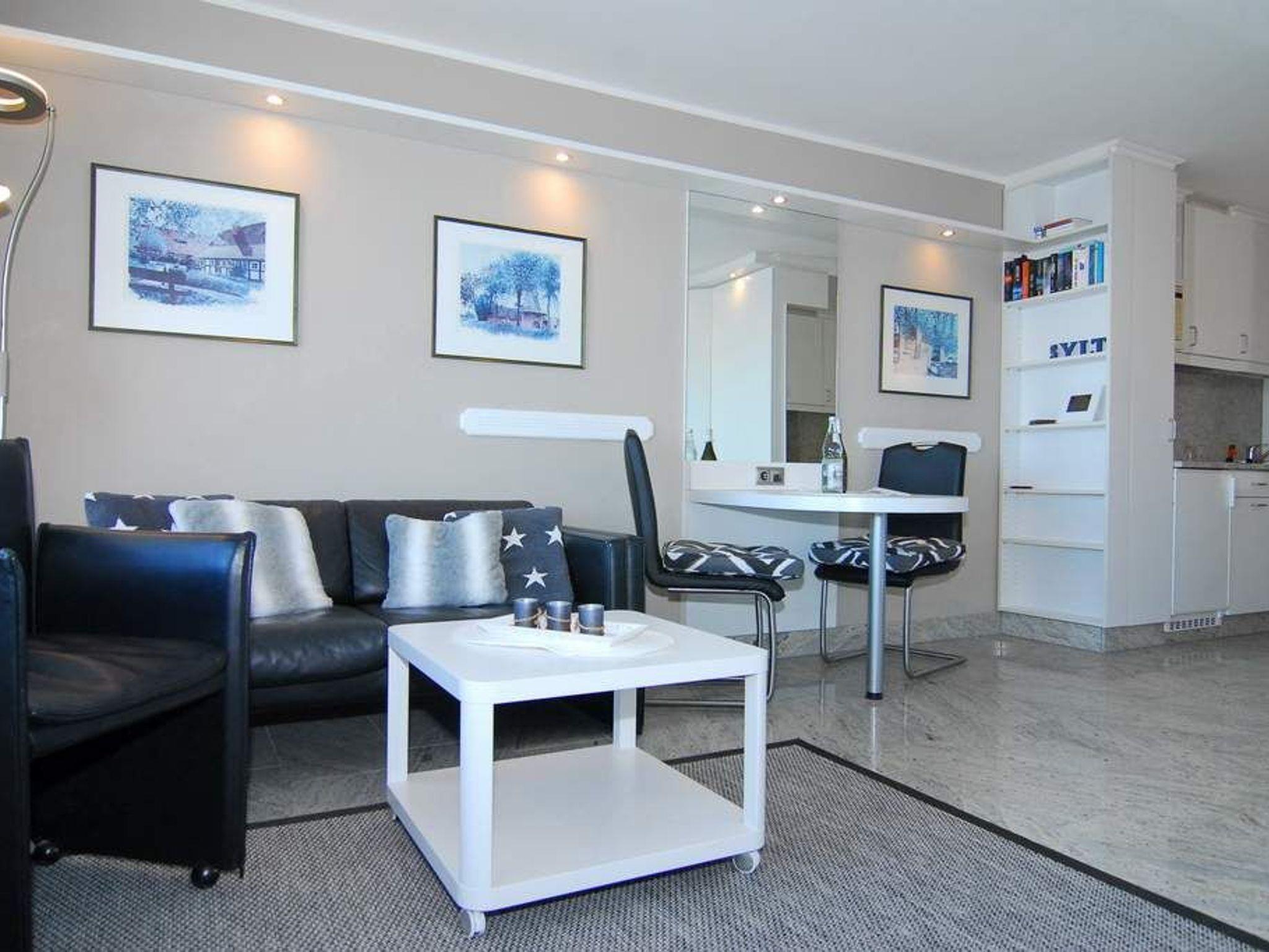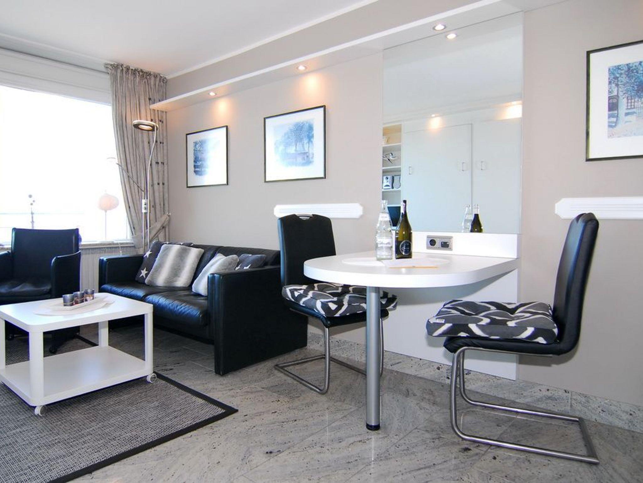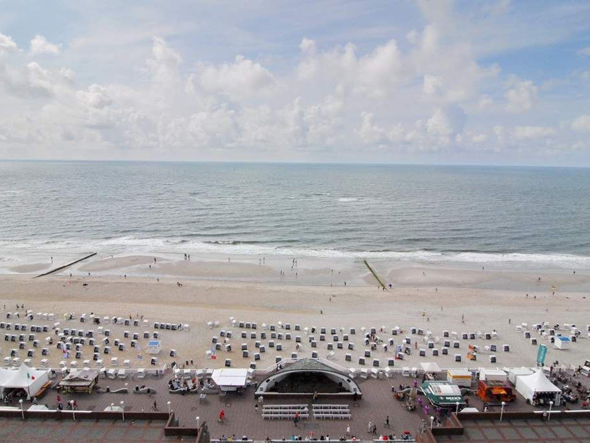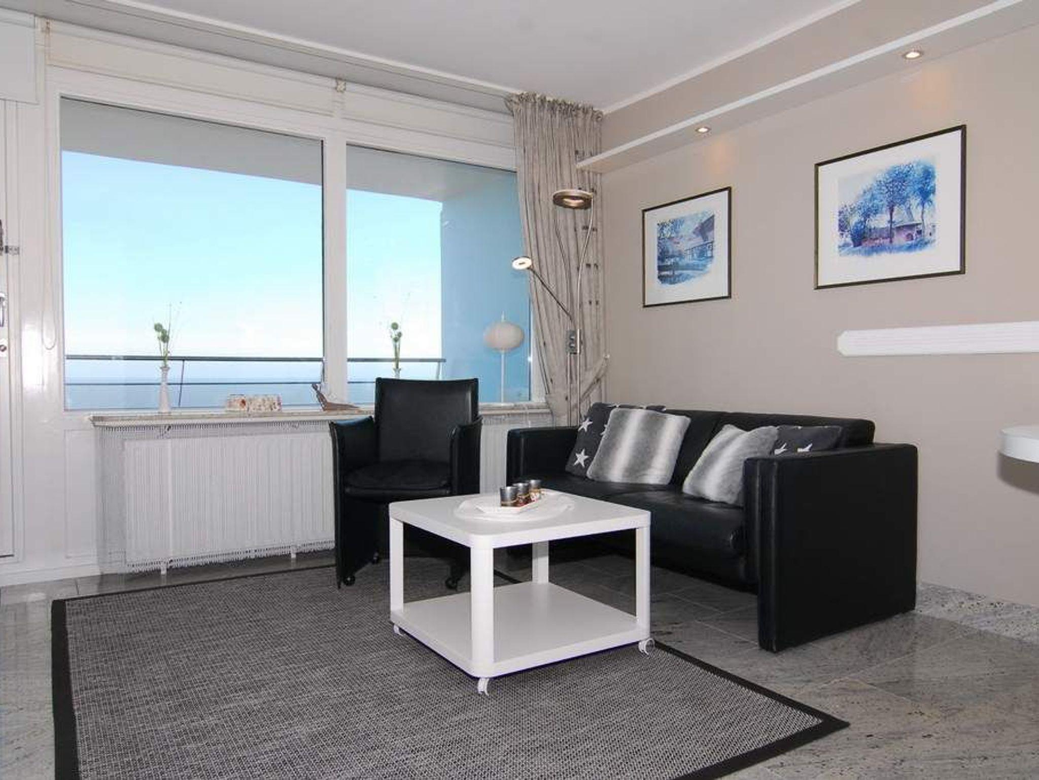 Moderne 1-Zimmer-Ferienwohnung im 12. OG mit Meerblick, Balkon und kompletter Ausstattung in Westerland auf Sylt.