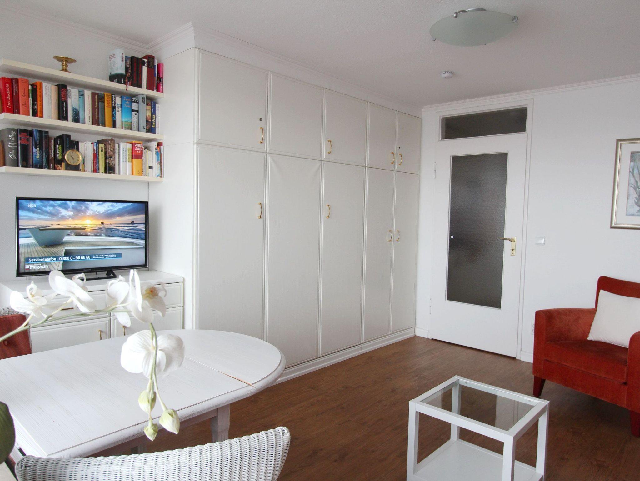 Diese Ferienwohnung liegt im Haus Sylter Welle in der 7. Etage zur Landseite ... nur wenige Schritte trennen Sie vom Strand und dem Meer. Der hell und freundlich eingerichtete Wohn-/Schlafraum hat einen vorgelagerten Ostbalkon mit Teakholzbalkonmöbeln und Auflagen. Zur Ausstattung gehört ein Doppelschrankbett, ein Essplatz mit 2 Stühlen am Fenster, Laminatboden sowie eine Couch und ein Sessel. Das Badezimmer hat eine Dusche und einen beheizten Handtuchtrockner. In der Einbauküche im Flur mit Geschirrspüler, Ceranfeld und Mikrowelle können Sie sich selbst verpflegen. Zur technischen Ausstattung dieser Wohnung gehört: ein Flachbildfernseher und ein Radio. Das freie WLAN Netzwerk (WEG Haus Sylter Welle - Passwortfrei - ohne Gewähr) steht ihnen kostenfrei zur Verfügung. Haustiere nicht gestattet. Wohnungsgröße: ca. 30 m².
