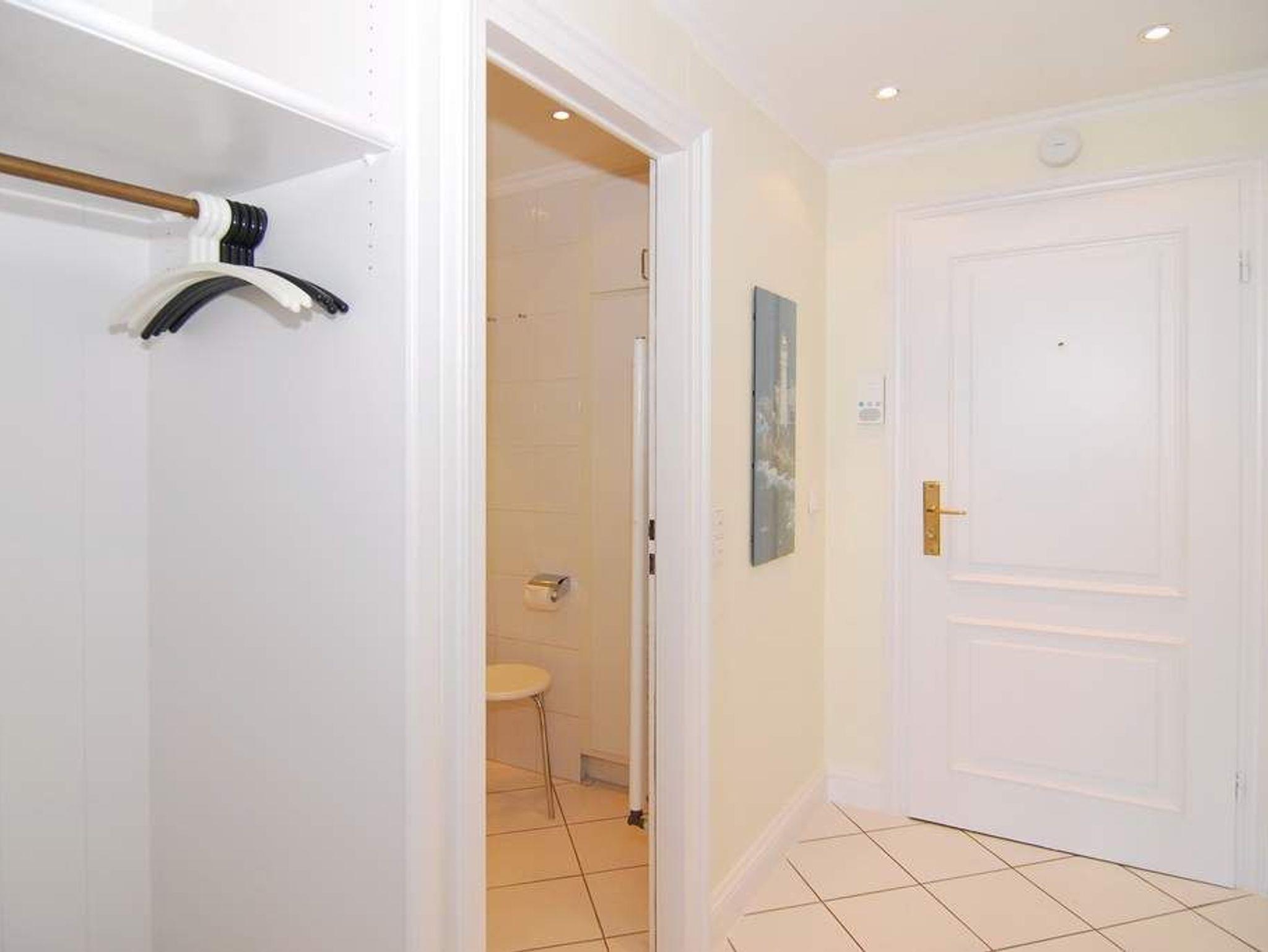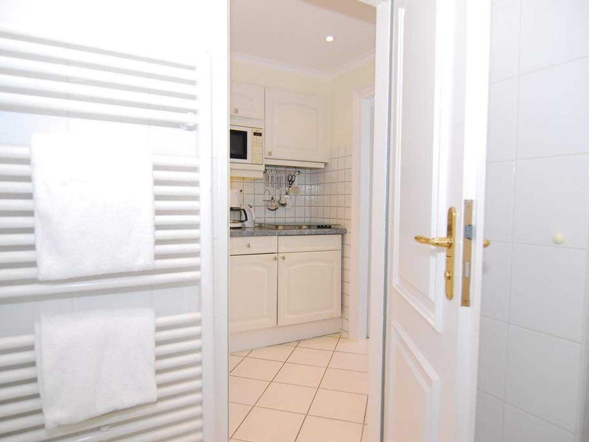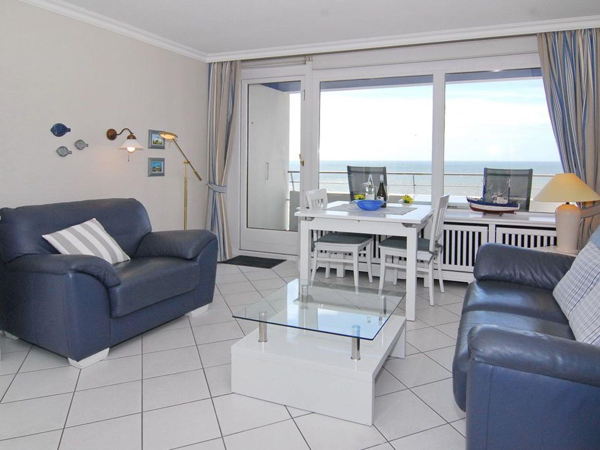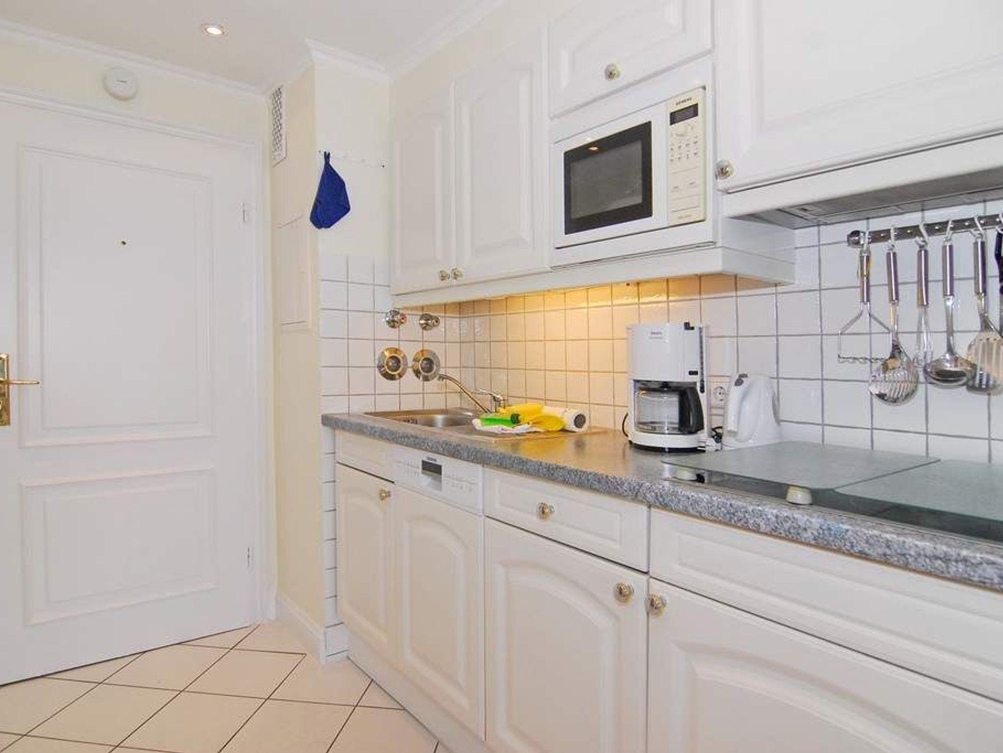 Exklusive1-Zimmer-Ferienwohnung ca. 34m², 5 OG. im Haus am Meer , Wohn-/Schlafraum mit Doppelschrankbett (2 x 0,80 x 2m), Essplatz mit Blick auf`s Meer, Zweisitzercouch, Radio, Flach-TV, Telefon (Festnetzflatrate) und W-LAN (ohne Gewähr). Westbalkon mit Balkonmöbeln, Küchenzeile im Flurbereich mit Geschirrspüler und Mikrowelle, Garderobe, Duschbad/WC. Das Apartment ist komplett gefliest, Tierhaltung ist nicht gestattet! PBettwäsche und Handtücher sind zur Anreise aufgezogen. Ein PKW-Stellplatz kann kostenpflichtig zugebucht werden. Nichtraucher-Wohnung! Beginnend vom 15.10.2025 bis 5.4.2026 (Ostern) findet die Fassandensanierung der Landseite (Osten) sowie des Südgiebels statt. Mit Baulärm ist in dieser Zeit zu rechnen.