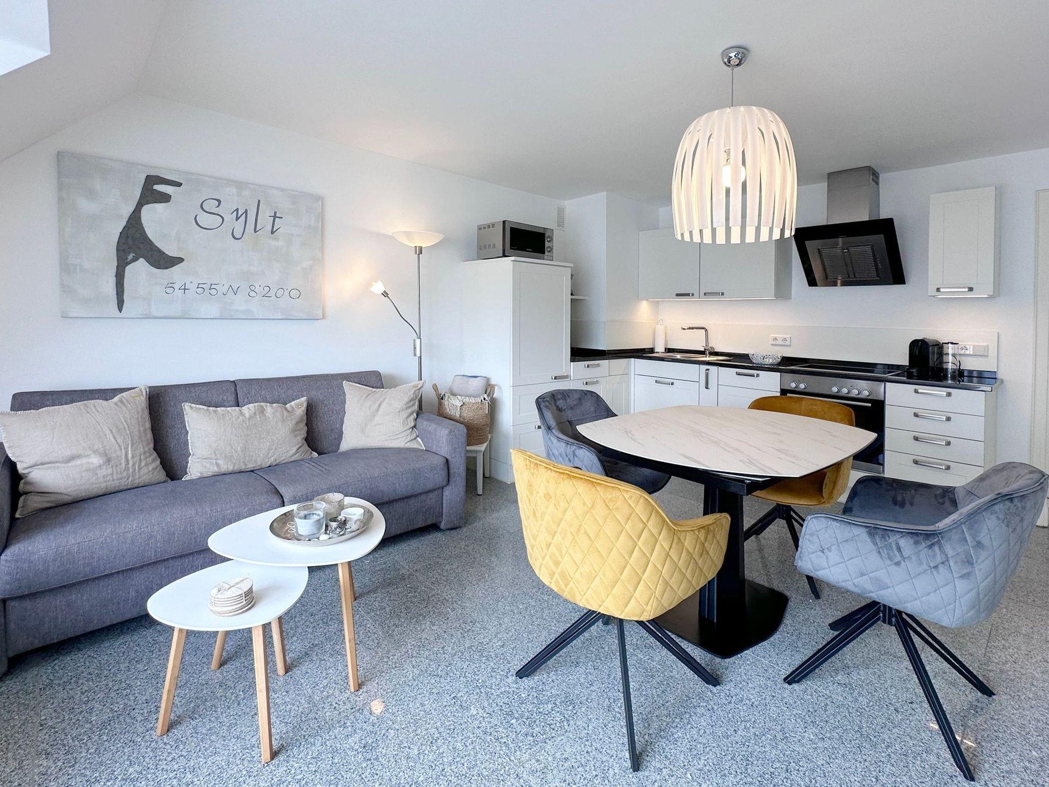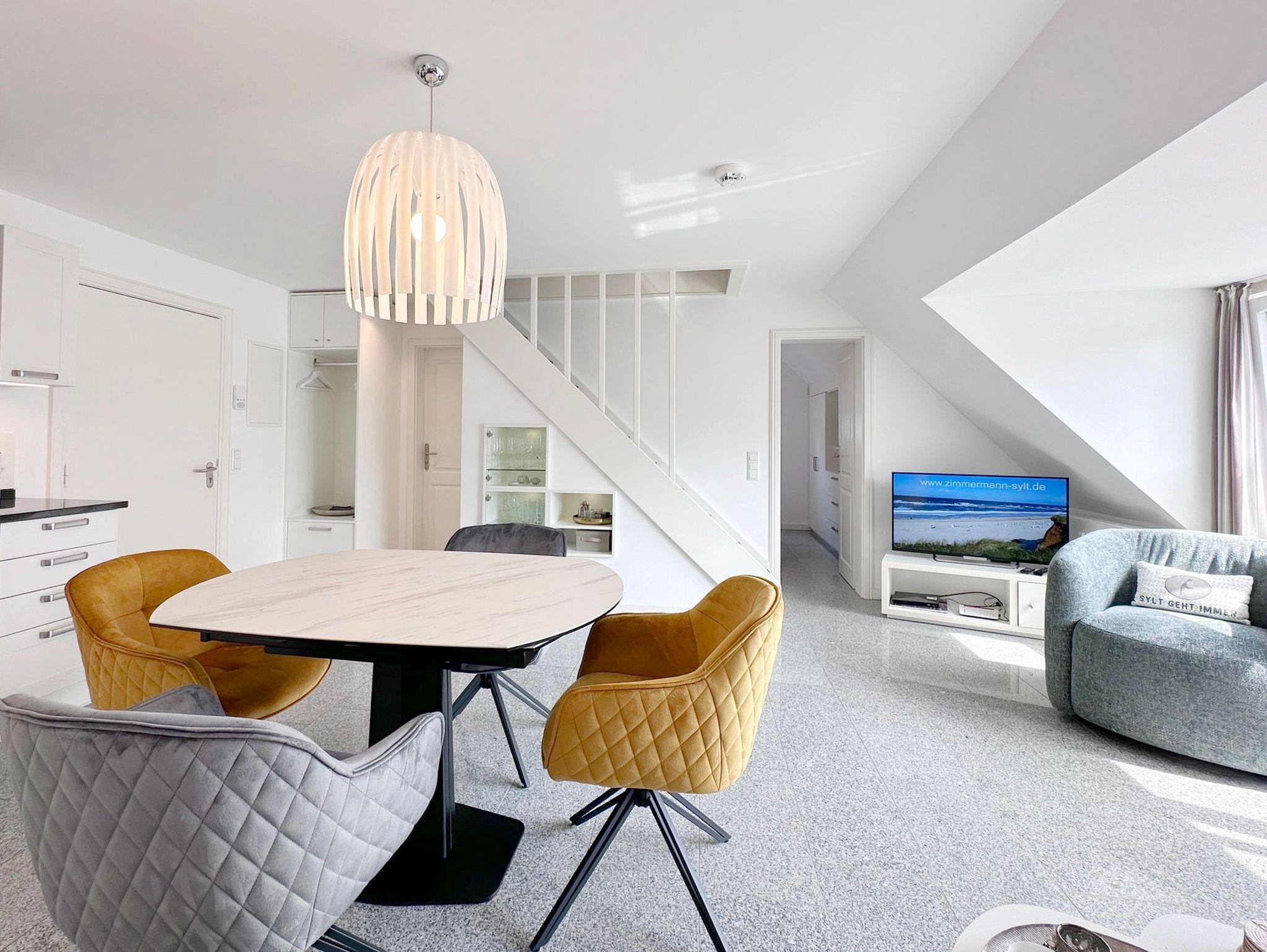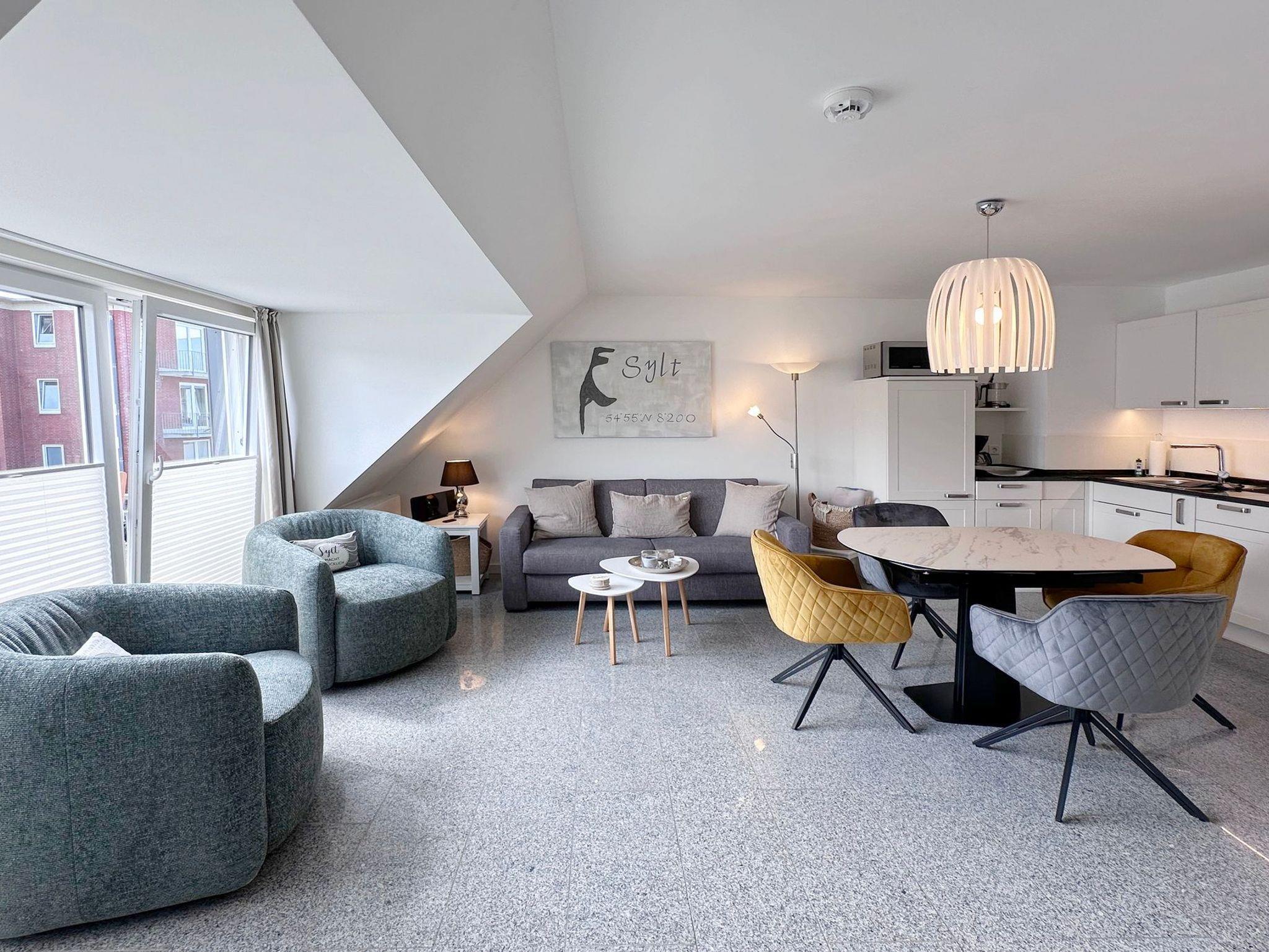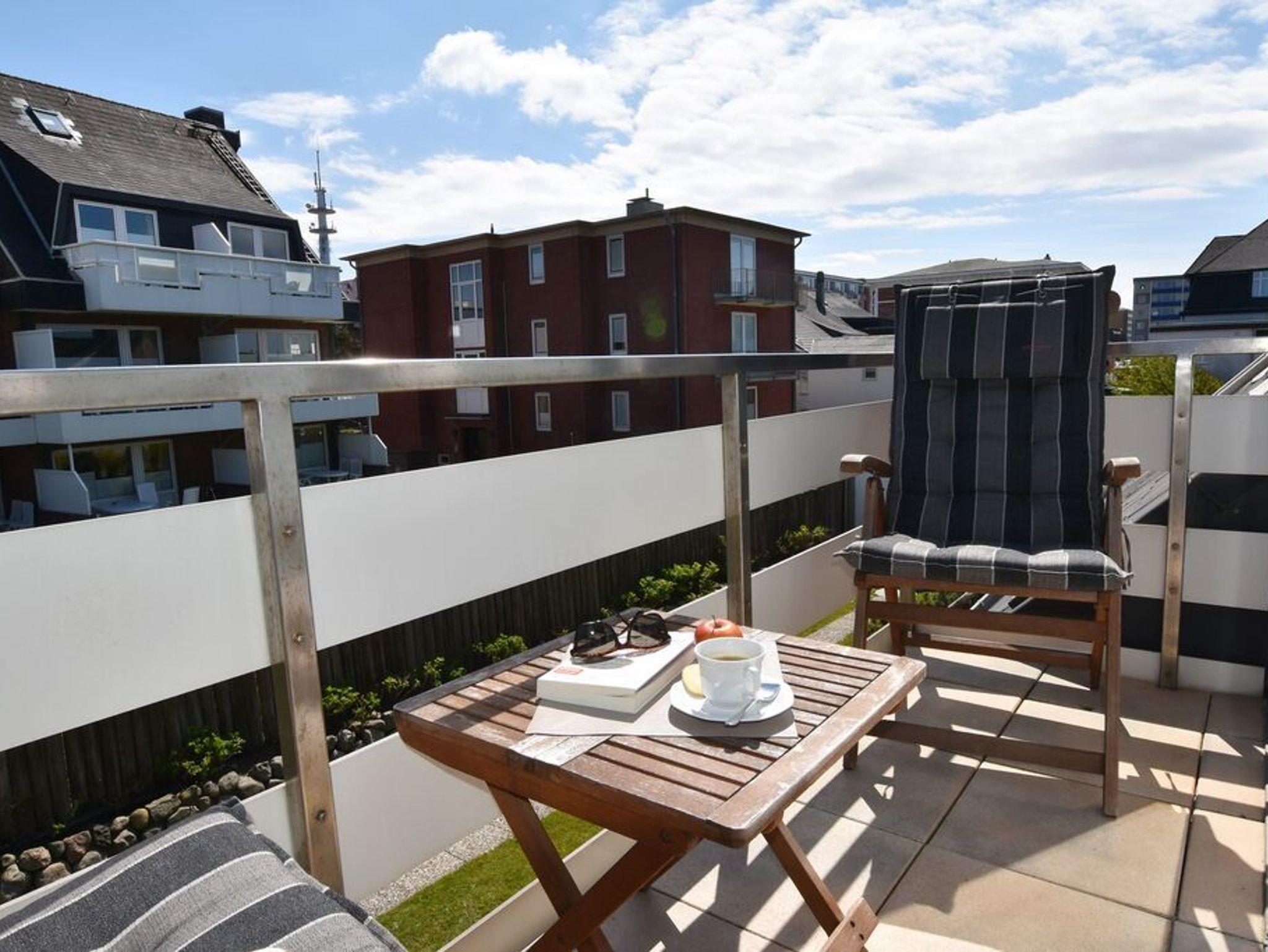 Diese strandnahe 3-Zimmer-Ferienwohnung in Westerland bietet modernen Komfort und einen Balkon mit Meerblick.