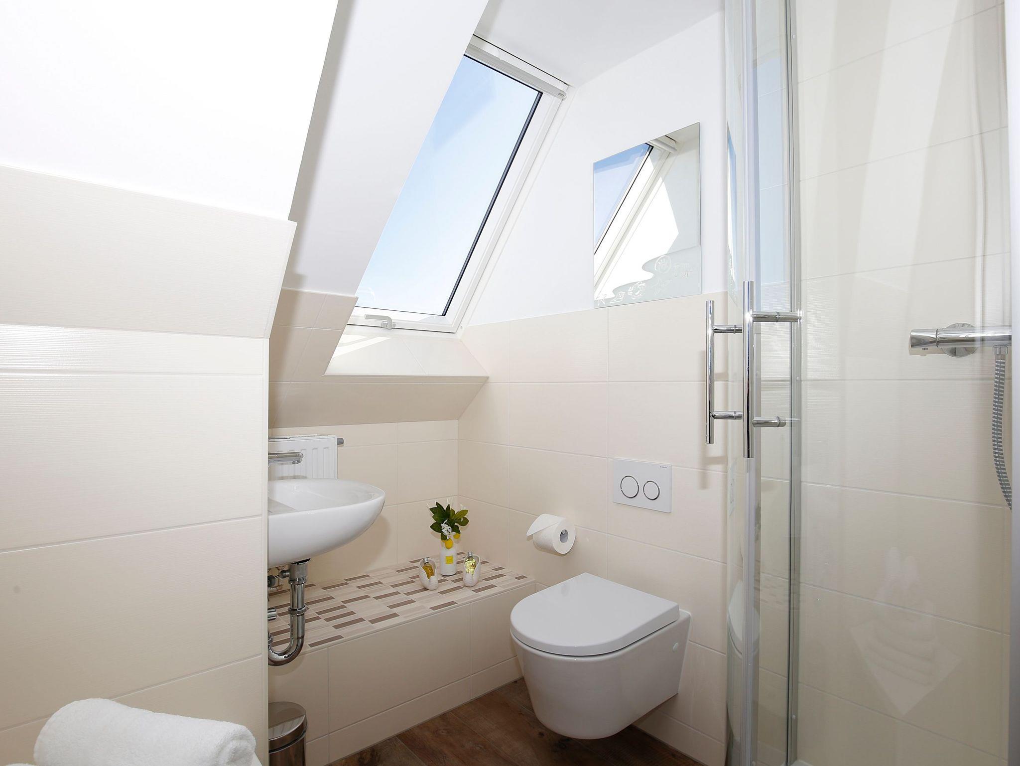 • Beide Bäder mit extraflachen Duschen, Waschtisch, Fön, Handtuchtrockner und WC