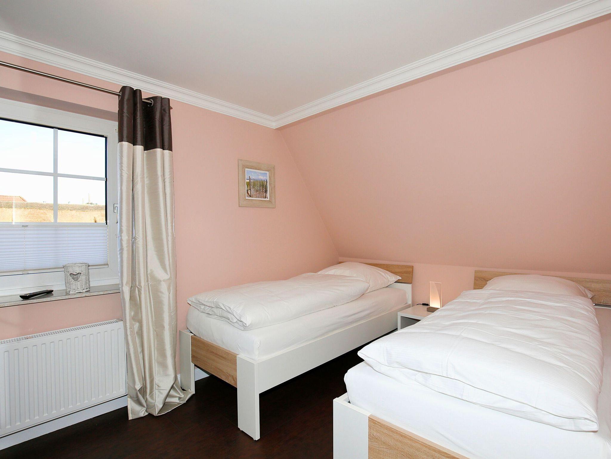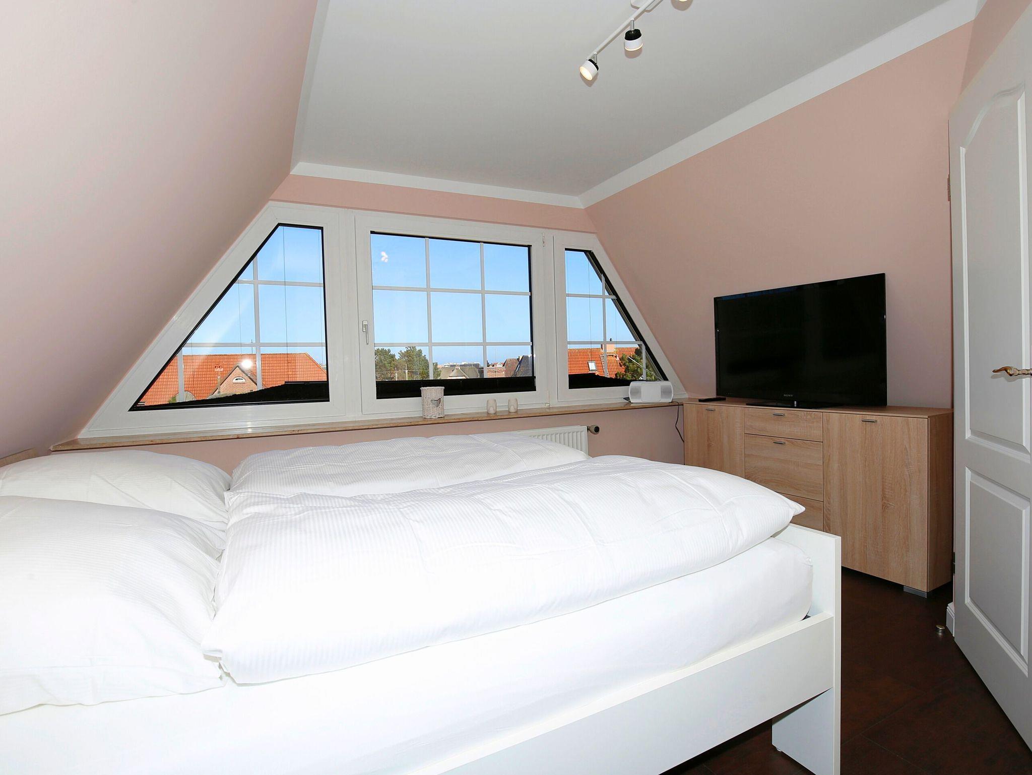 Im Masterbedroom erwartet Sie ein hochwertiges Doppelbett (0,90 x 2,00 m) in Komfortliegehöhe mit eigenem TV. Ein zweites Schlafzimmer bietet zwei Einzelbetten (0,90 x 1,95 m) in Komfortliegehöhe und ebenfalls einen TV. Das moderne Duschbad ist mit einer extraflachen Dusche, einem Waschtisch, einem Fön, einem Handtuchtrockner und einem WC ausgestattet. Ein Panorama-Schlafzimmer, das einen beeindruckenden Blick über die Westerländer Dünenlandschaft bietet, rundet das Raumangebot ab ? hier finden Sie ein Doppelbett (0,90 x 1,95 m) in Komfortliegehöhe, einen TV sowie ein eigenes En-suite-Badezimmer.
