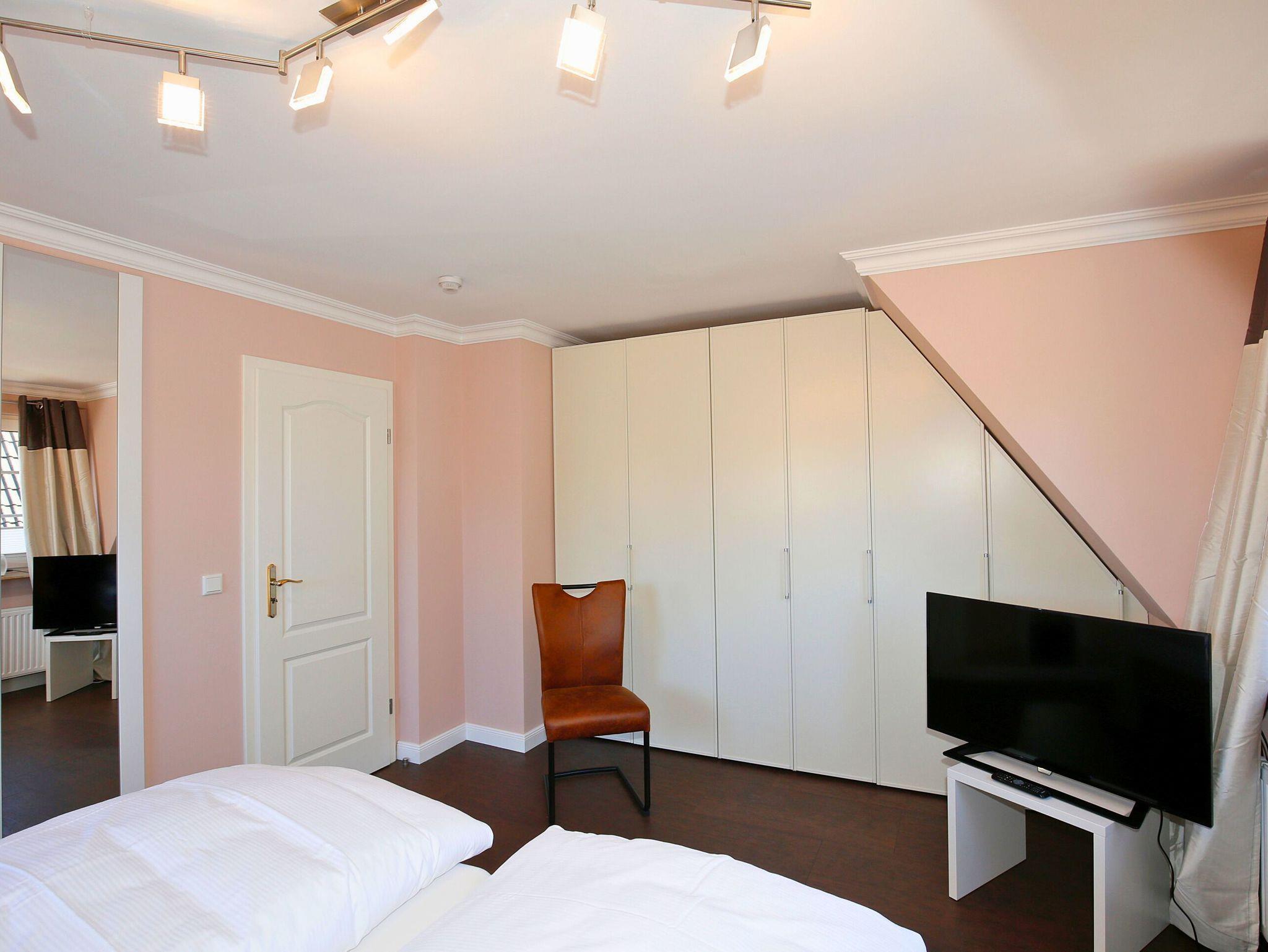 Im Masterbedroom erwartet Sie ein hochwertiges Doppelbett (0,90 x 2,00 m) in Komfortliegehöhe mit eigenem TV. Ein zweites Schlafzimmer bietet zwei Einzelbetten (0,90 x 1,95 m) in Komfortliegehöhe und ebenfalls einen TV. Das moderne Duschbad ist mit einer extraflachen Dusche, einem Waschtisch, einem Fön, einem Handtuchtrockner und einem WC ausgestattet. Ein Panorama-Schlafzimmer, das einen beeindruckenden Blick über die Westerländer Dünenlandschaft bietet, rundet das Raumangebot ab hier finden Sie ein Doppelbett (0,90 x 1,95 m) in Komfortliegehöhe, einen TV sowie ein eigenes En-suite-Badezimmer.