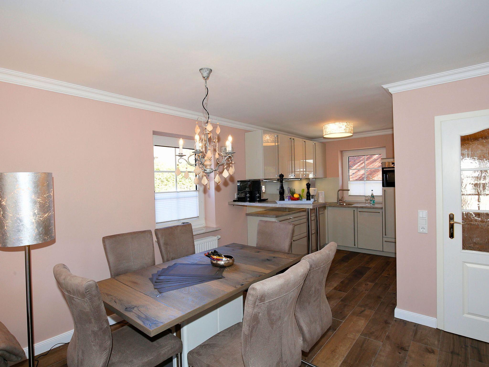 Erleben Sie luxuriösen Wohnkomfort in dieser exklusiv ausgestatteten Haushälfte mit ca. 90 qm Wohnfläche. Genießen Sie entspannte Stunden auf der Westterrasse, die mit einem Strandkorb und eleganten Gartenmöbeln zum Verweilen einlädt. Das Haus bietet Platz für bis zu 6 Personen und überzeugt mit einem gemütlichen Kamin für behagliche Abende.
