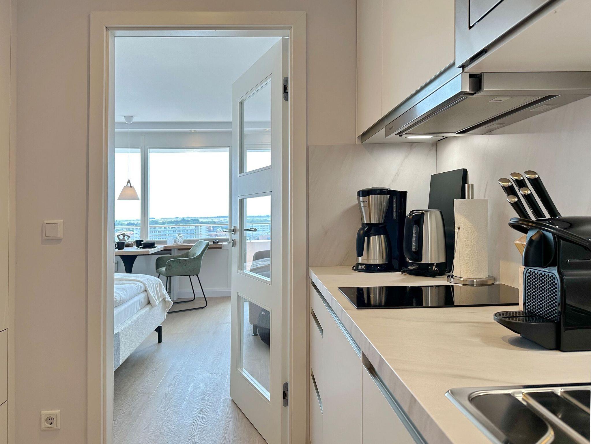 In erster Strandlage finden Sie im 9. Stockwerk dieses bezaubernde, 2025 aufwendig neu gestaltete, 30 m2 große 1- Zimmer Appartement für bis zu 2 Personen.