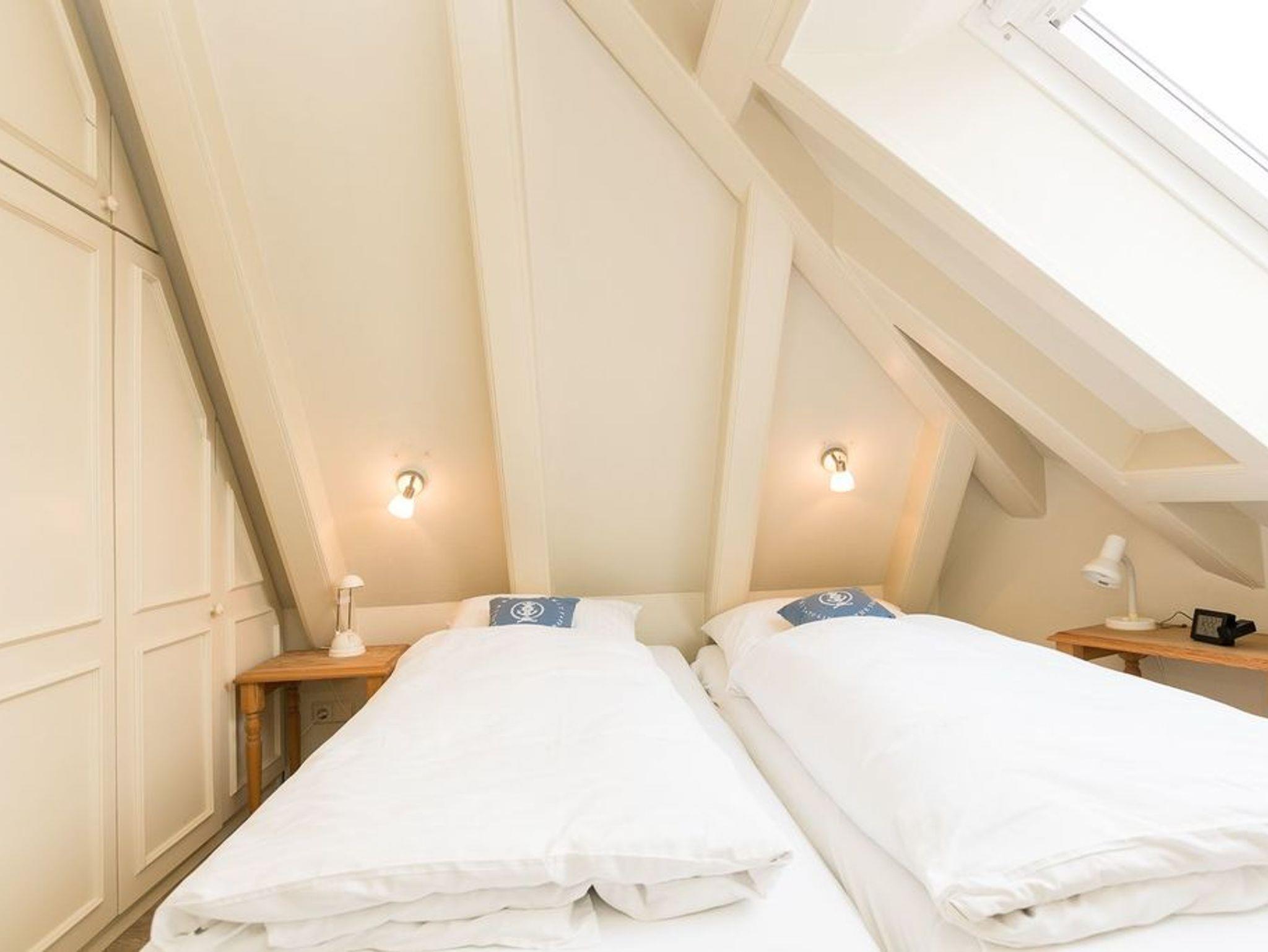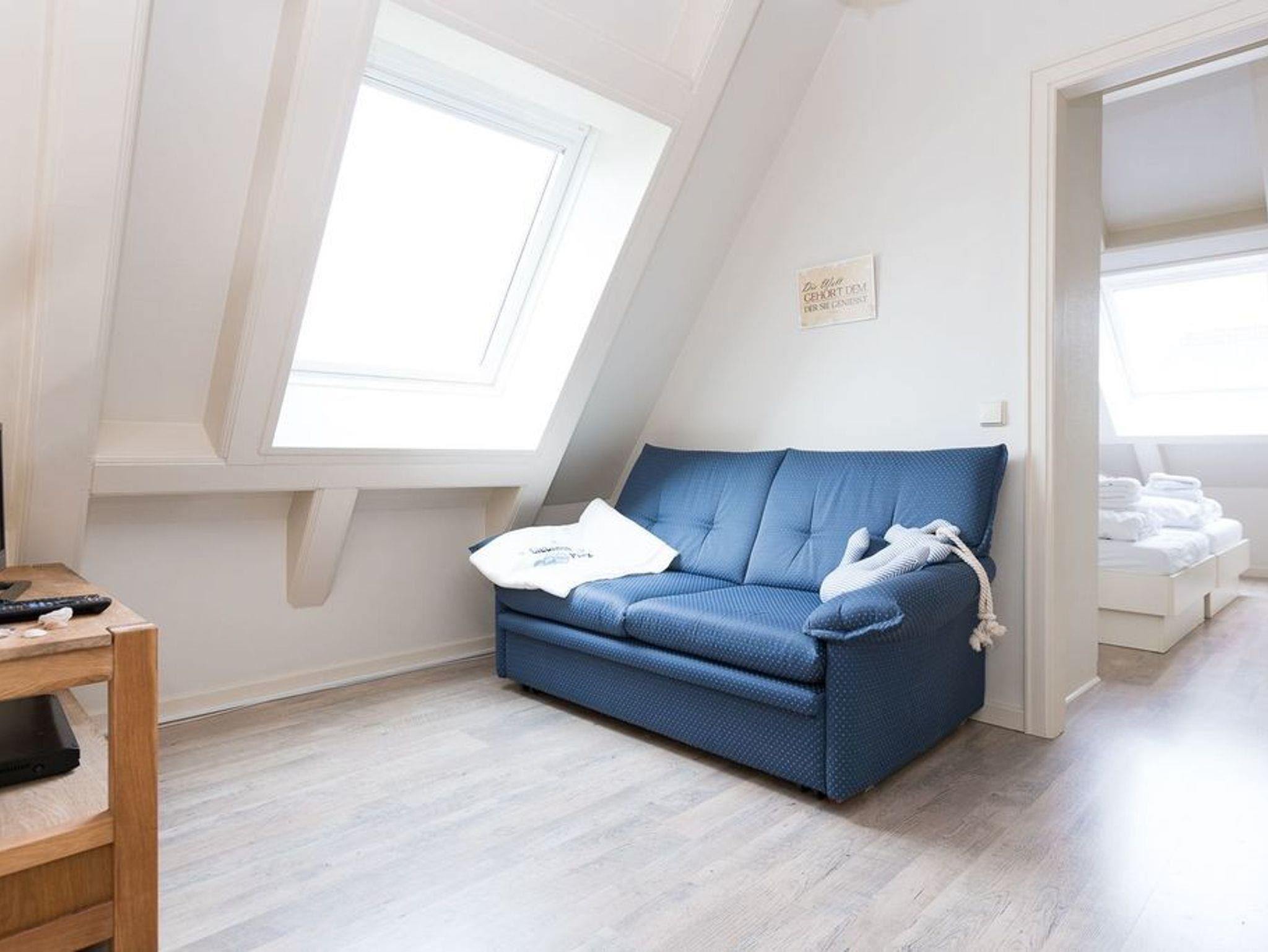 ? Eine weiße Friesentreppe führt nach oben auf die kuschelige Galerie, wo ein weiterer Fernseher zur Verfügung steht; hier oben finden Sie auch die beiden Schlafräume (der größere Raum beinhaltet ein Doppelbett, der andere zwei gegenüberstehende Betten).