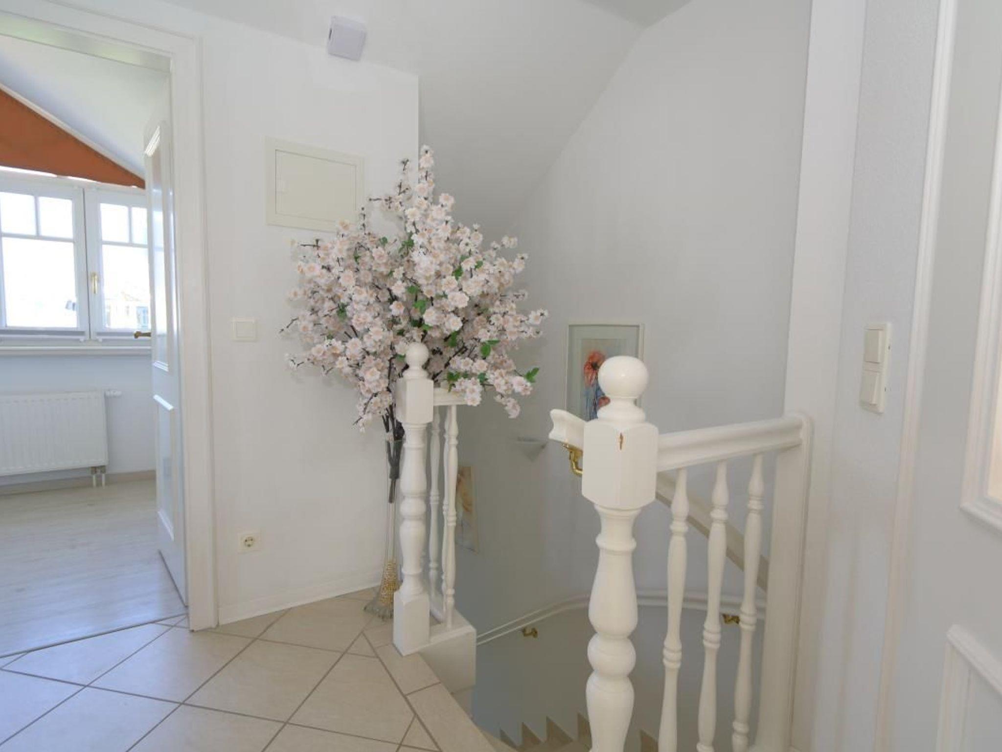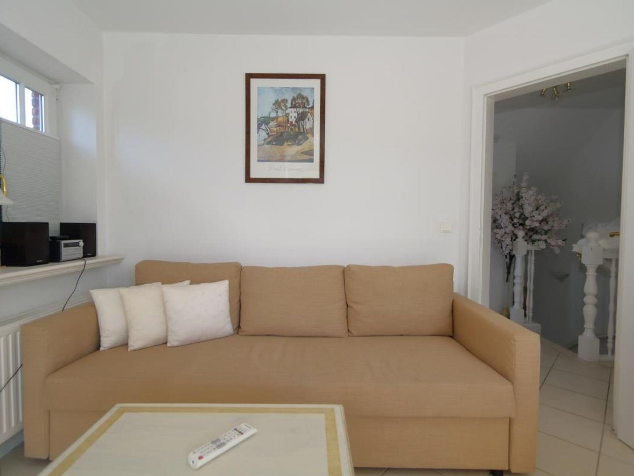Das Appartement befindet sich im Obergeschoss einer modernen Doppelhaushälfte. Zum Strand sind es ca. 600m und auch die Innenstadt kann man fußläufig erreichen.