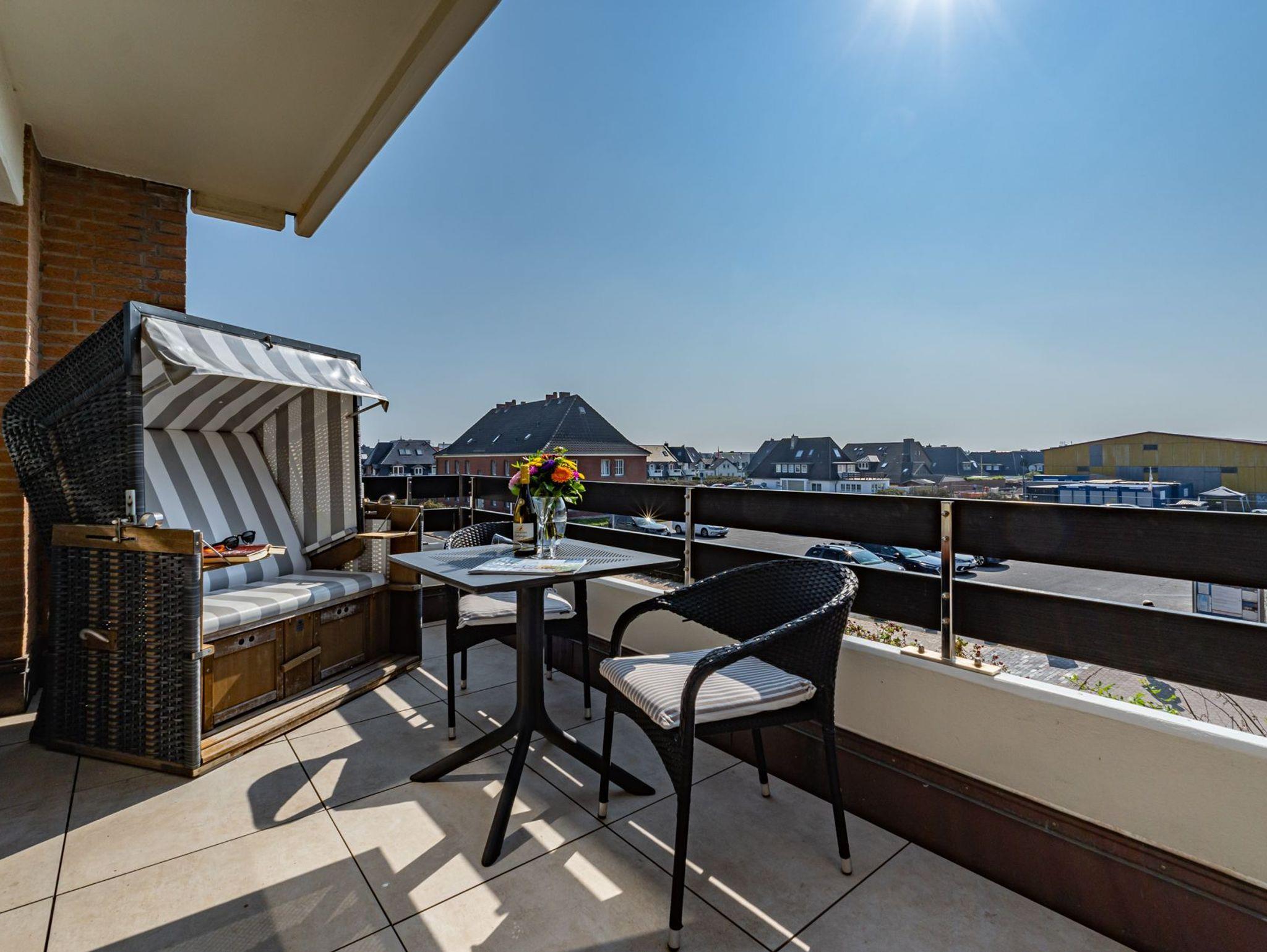 Charmante 2-Zimmer-Ferienwohnung mit großem Südbalkon und eigenem Stellplatz in Westerland auf Sylt.