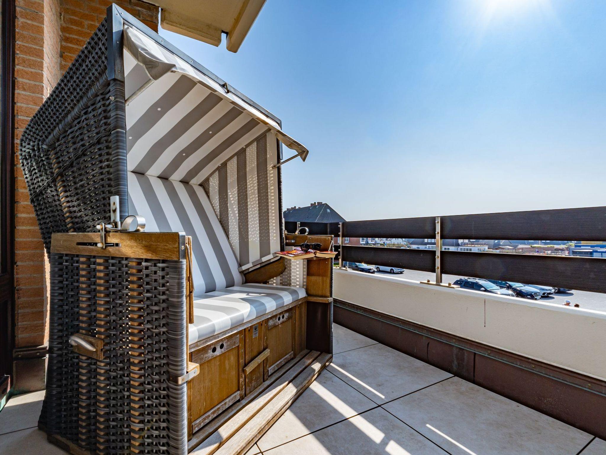 Diese charmante 2-Zimmer-Nichtraucher-Ferienwohnung erstreckt sich über ca. 45 m² und bietet Platz für 2 Personen. Sie befindet sich in der 1. Etage und besticht durch einen sonnigen Südbalkon, der mit einem Strandkorb, stilvollen Balkonmöbeln und Auflagen ausgestattet ist ? und durch den Sie den Blick ins Freie genießen können. Zur Wohnung gehört ein eigener PKW-Stellplatz direkt am Haus.