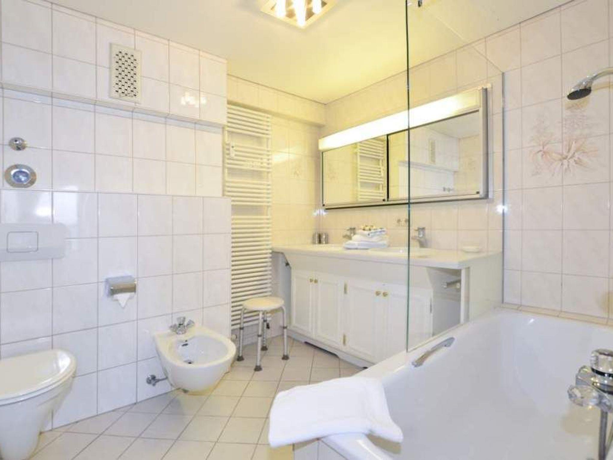 Das großzügige Bad bietet Wellness-Komfort auf hohem Niveau: Ein Doppelwaschtisch, eine Echtglas-Duschvorrichtung in der Badewanne, ein Bidet, ein Handtuchtrockner und ein Fön stehen Ihnen zur Verfügung geschmackvoll ausgestattet und durchdacht gestaltet.